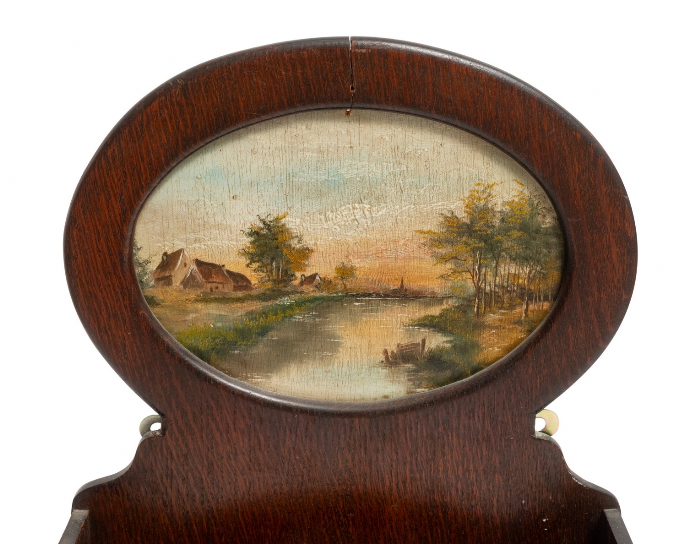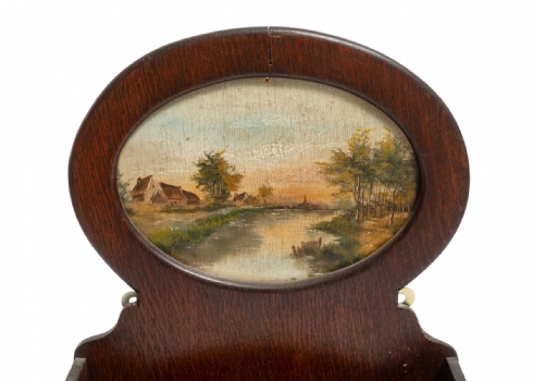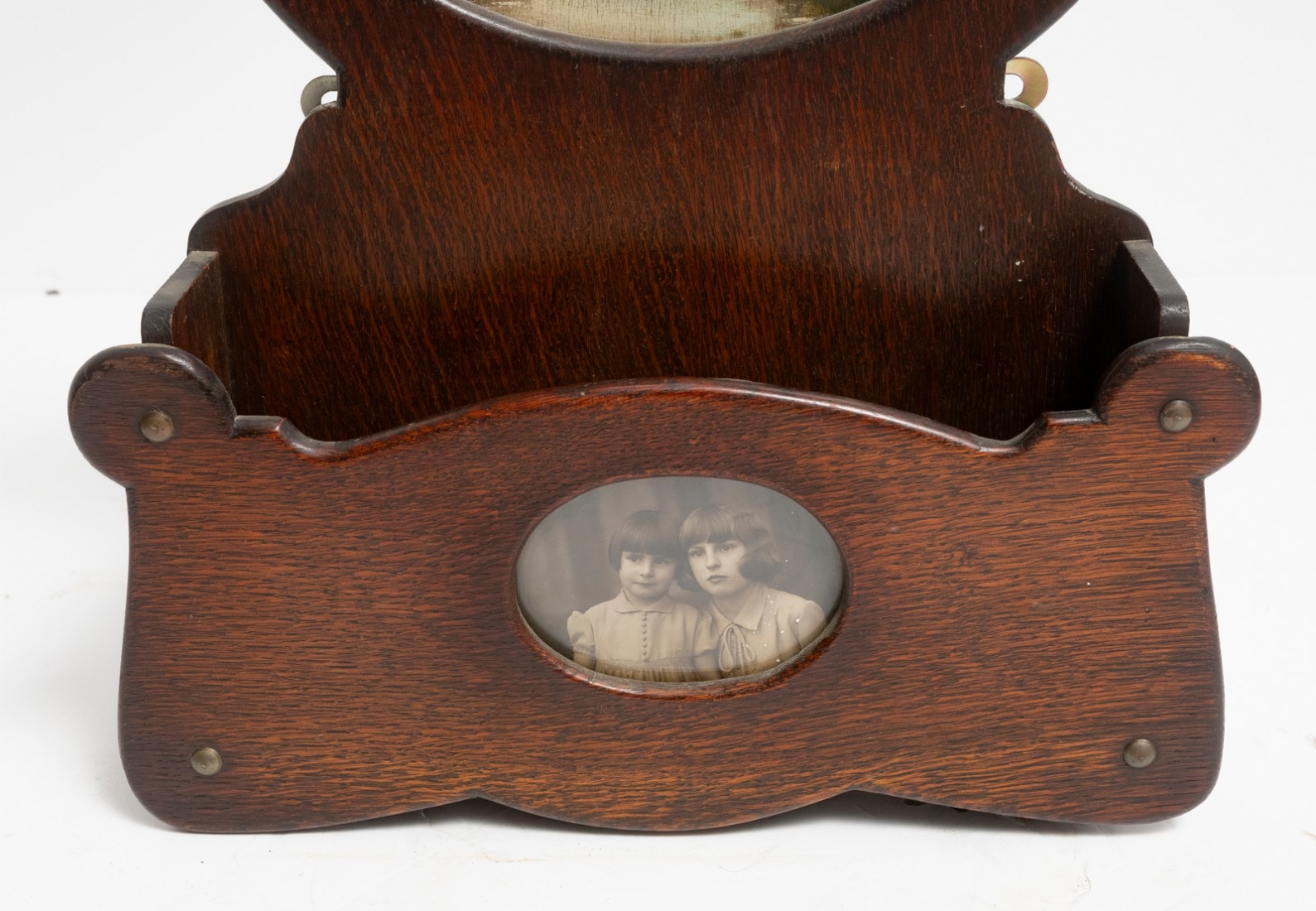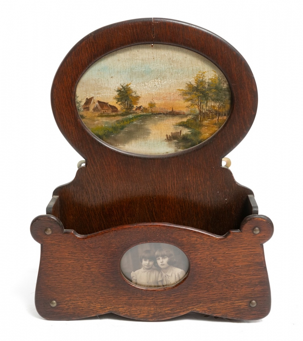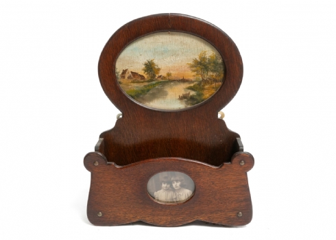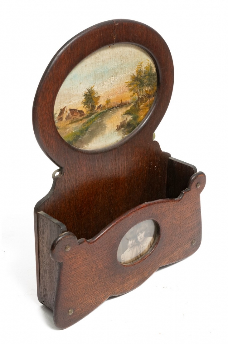 מתלה עץ לקיר למכתבים מעוטר ציור יד וצילום עתיק סדק בחלקו העליון (מצולם)