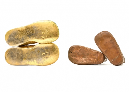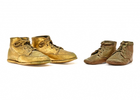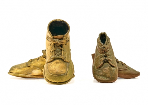 זוג נעלי תינוק שצופו בנחושת