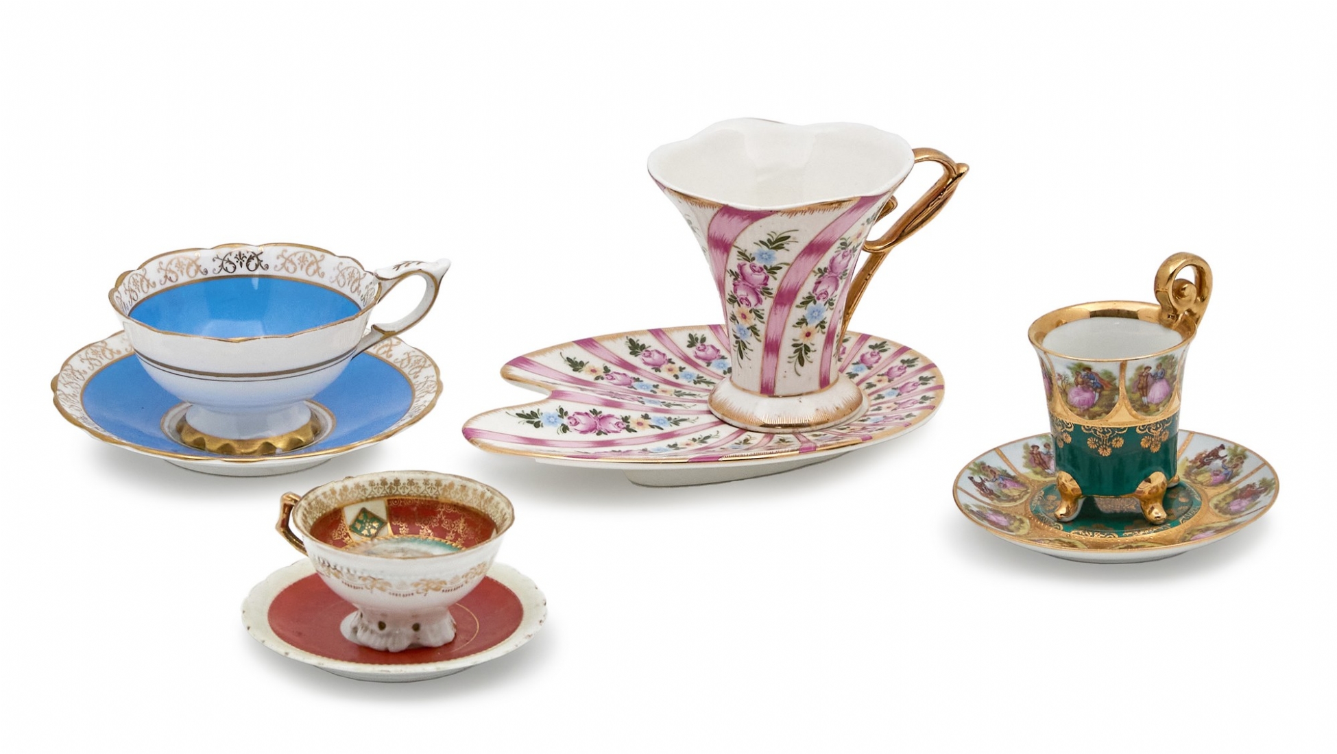 8 חפצי פורצלן עתיקים מעוטרים, חלקם חתומים