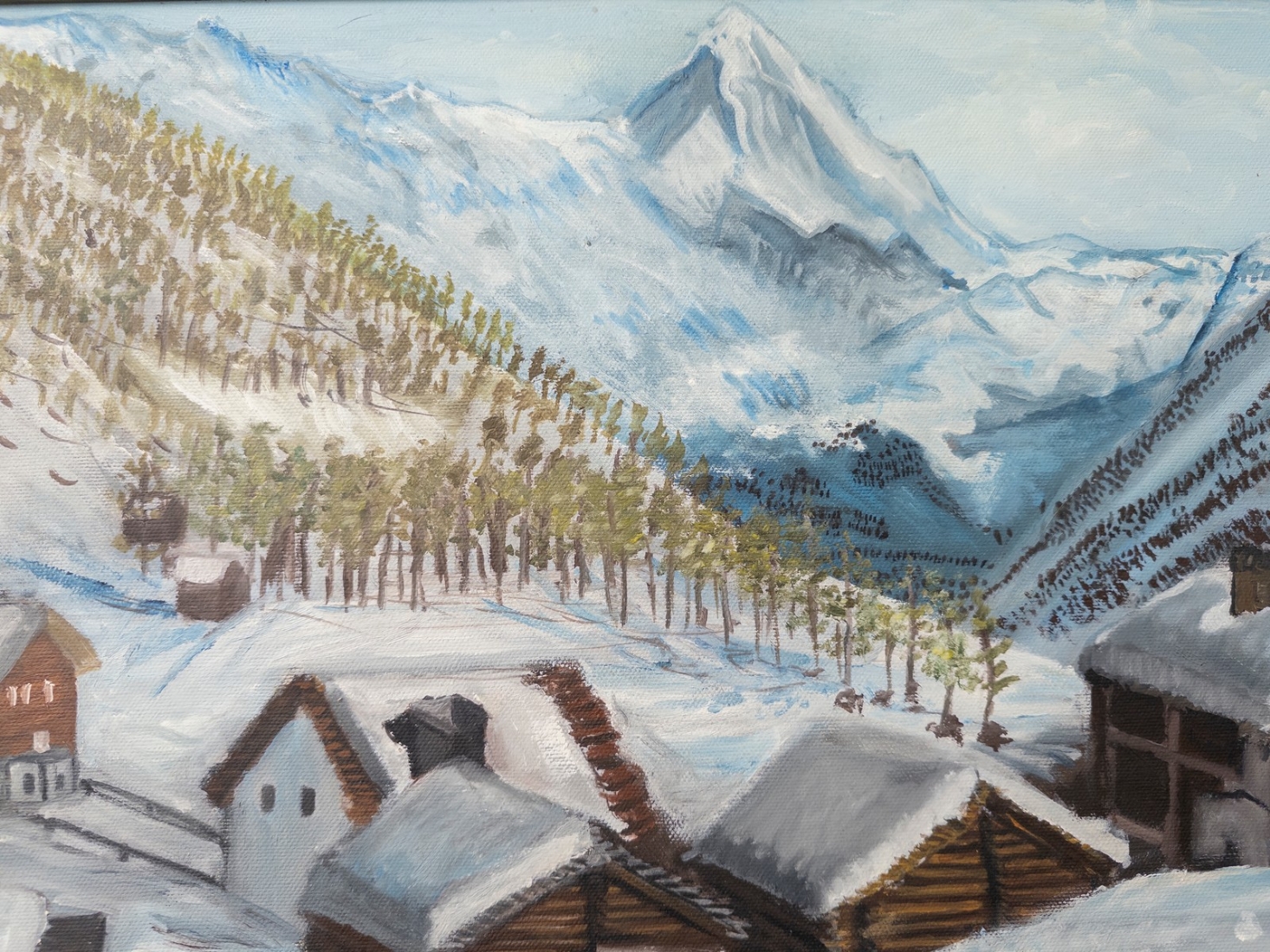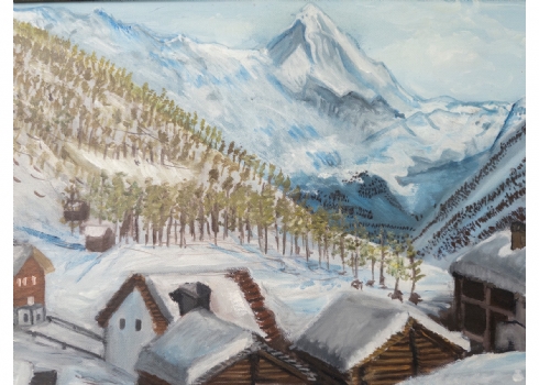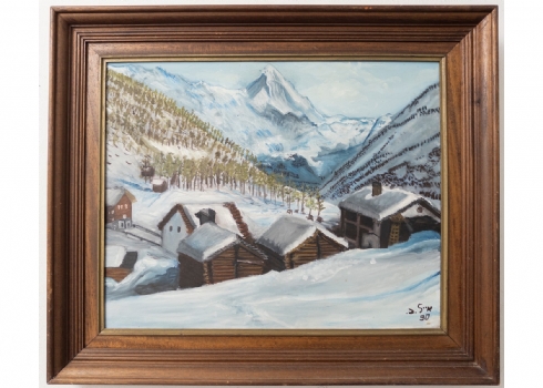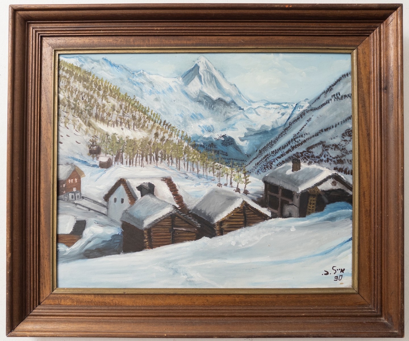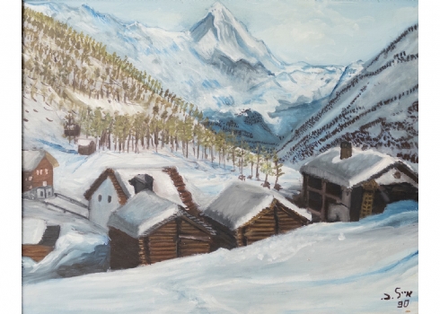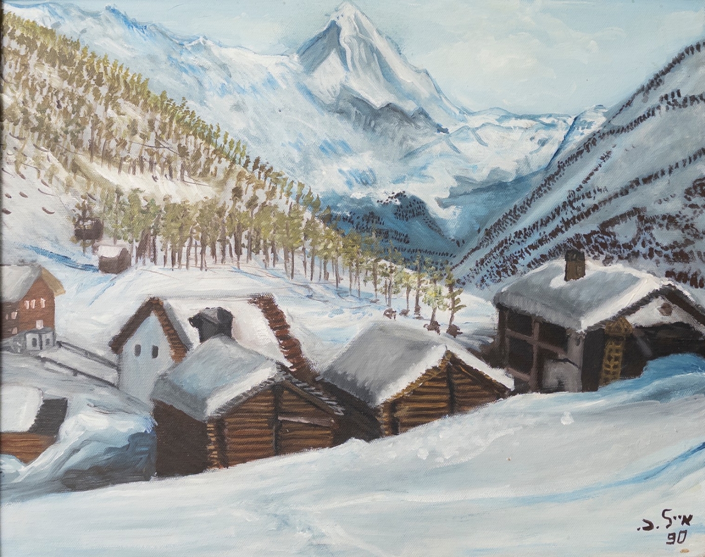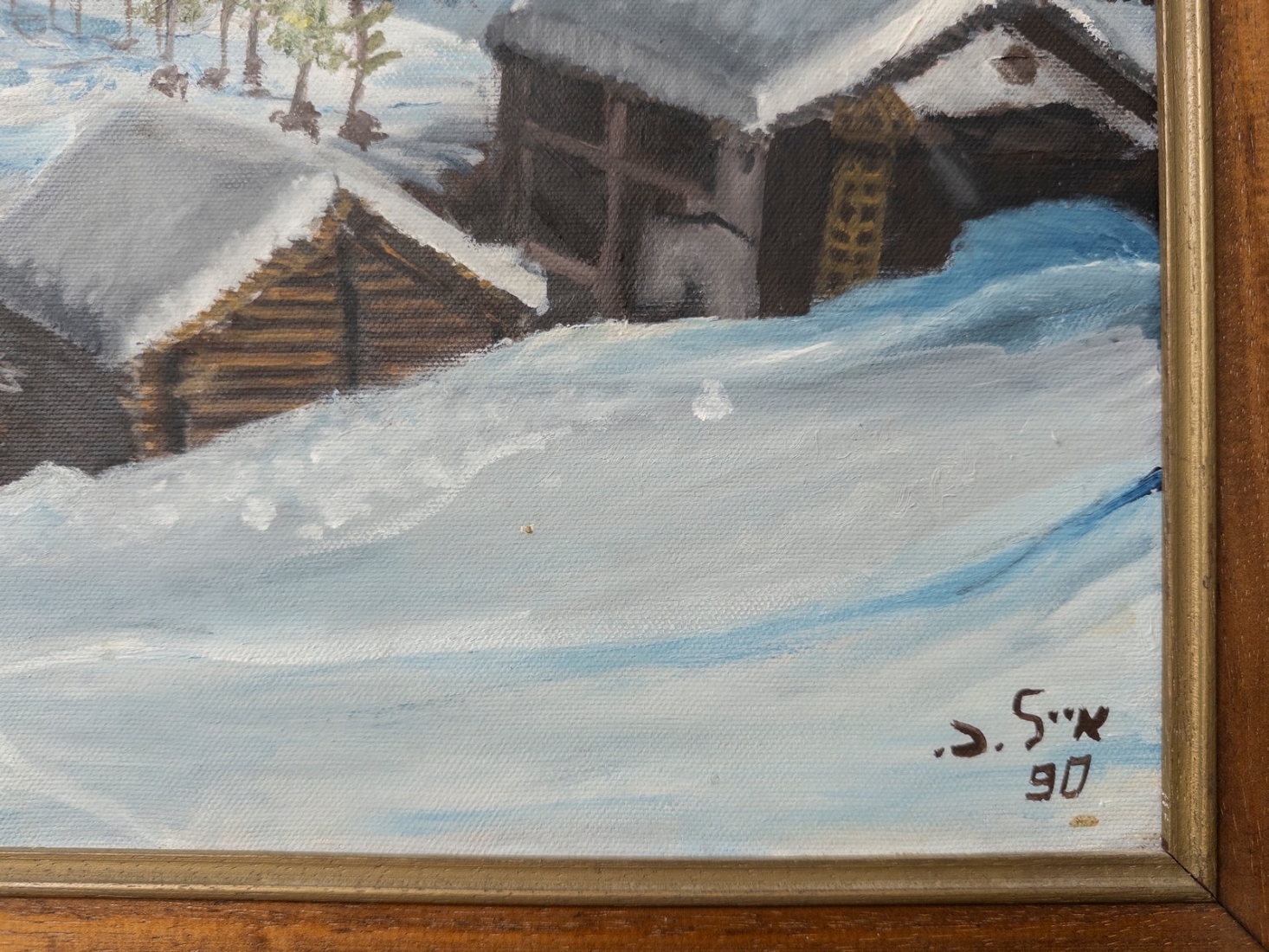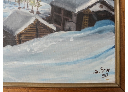 'נוף מושלג' - ציור שמן על בד, חתום: איל כ. מתוארך: 1990