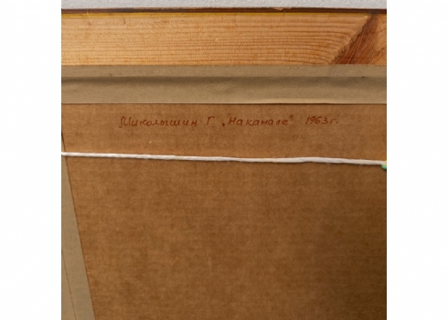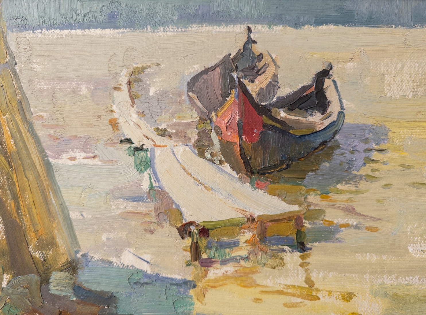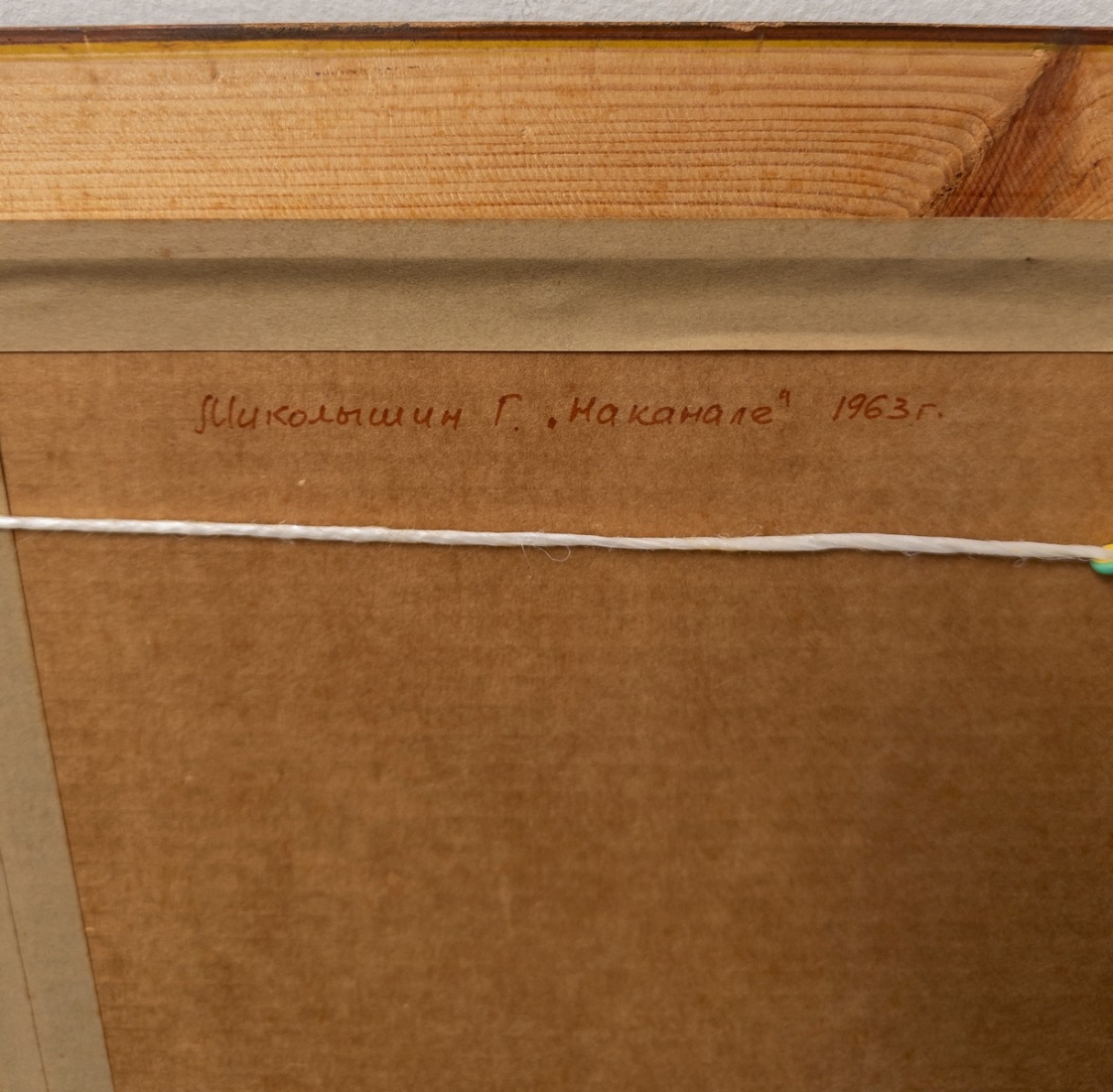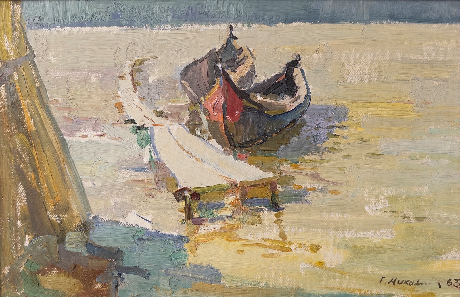 שמן על בד מוצמד ללוח, חתום ומתוארך: 1963 מידות התמונה: 26X40 ס"מ מידות המסגרת: 36X50 ס"מ