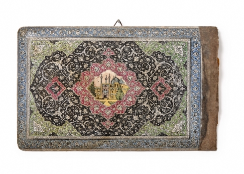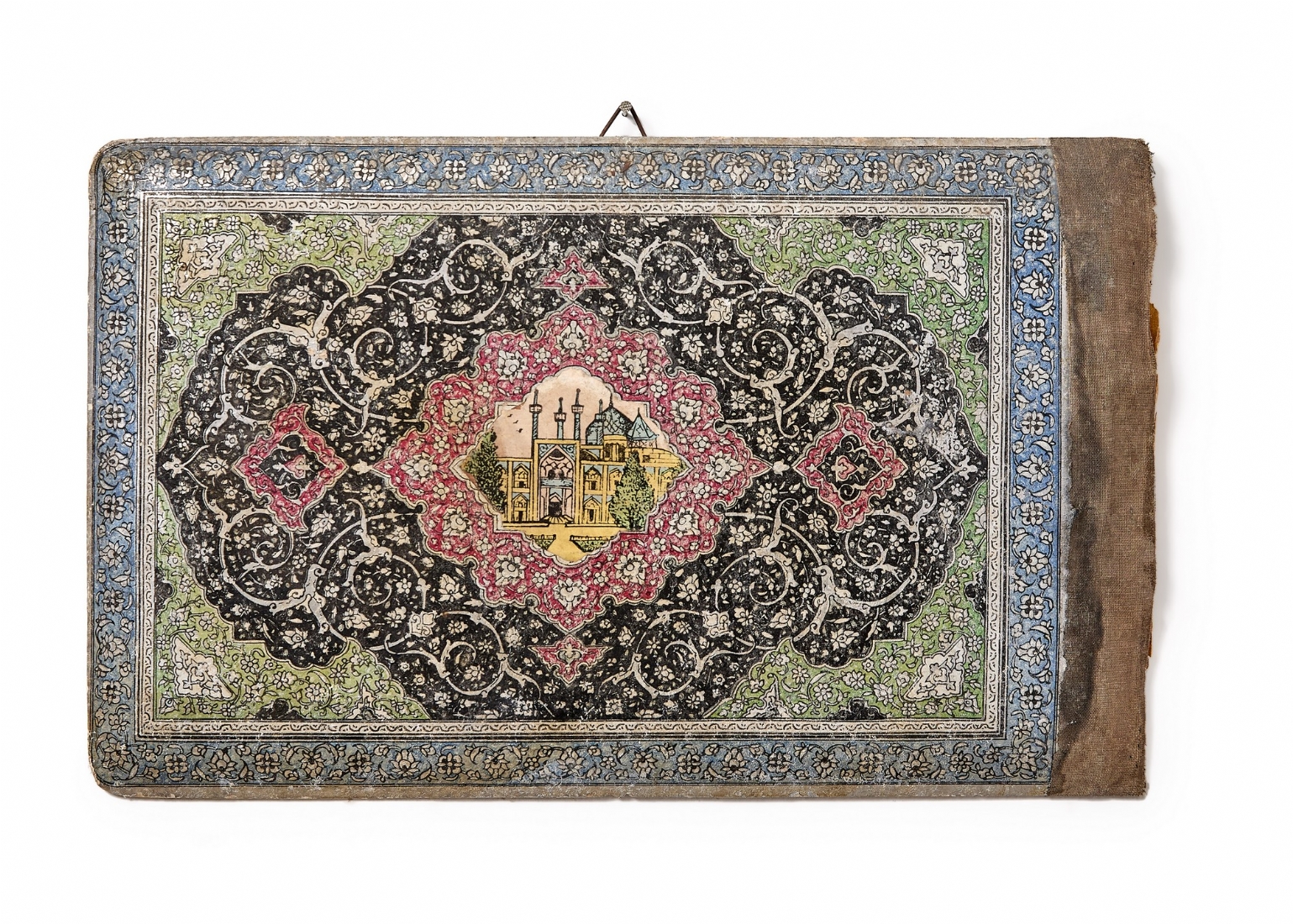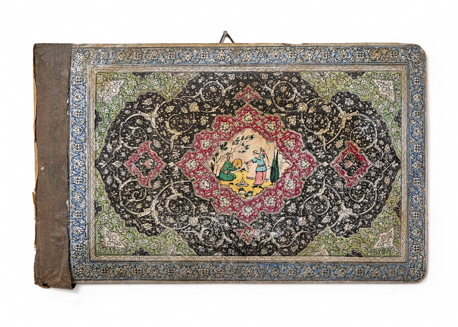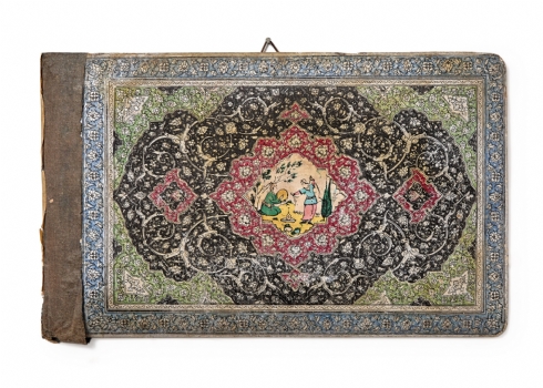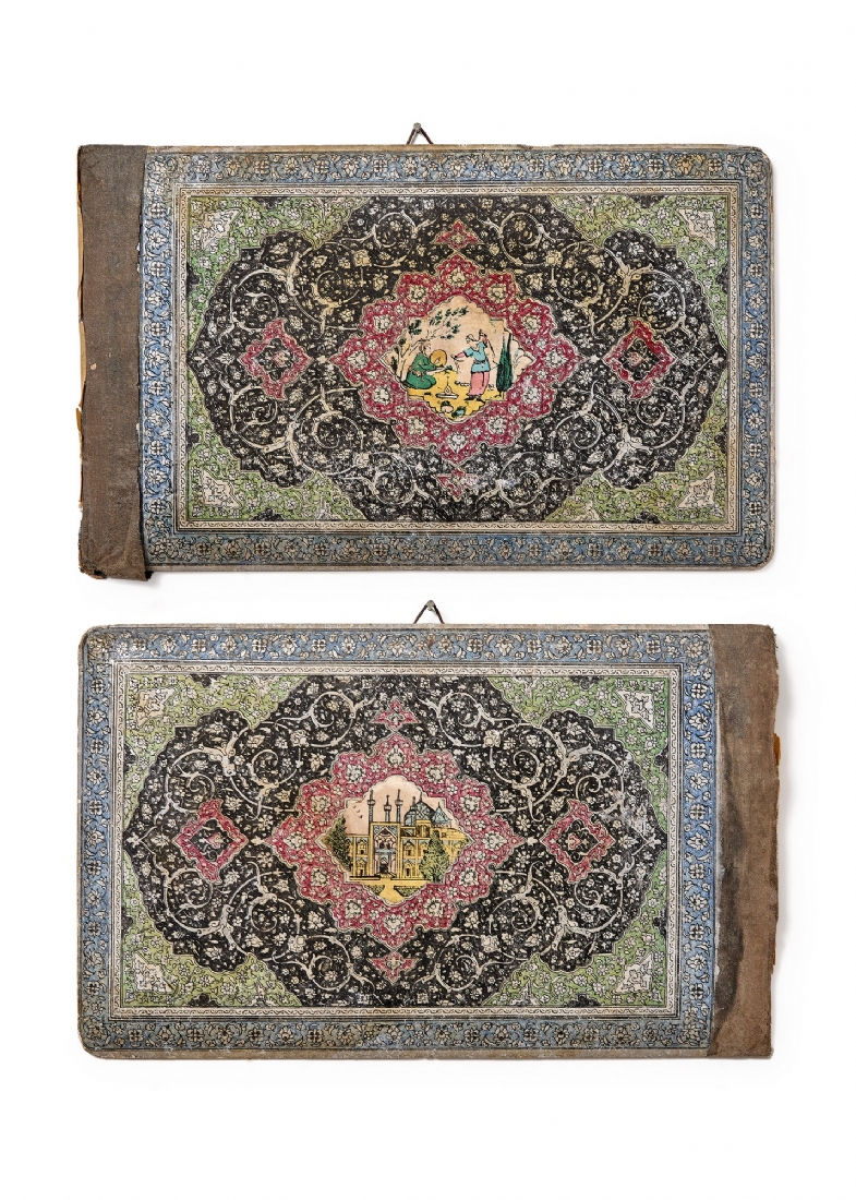 שני צידי כריכת אלבום פרסי עתיק שניתנים לתליה על הקיר