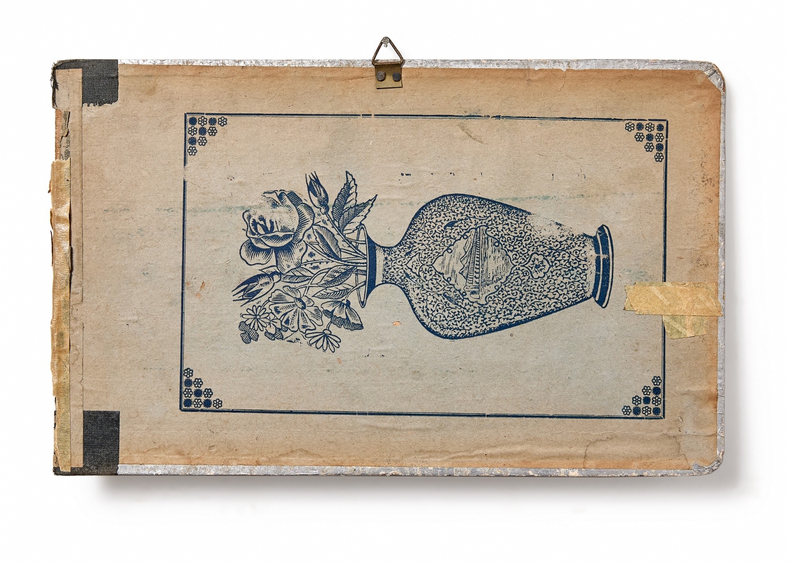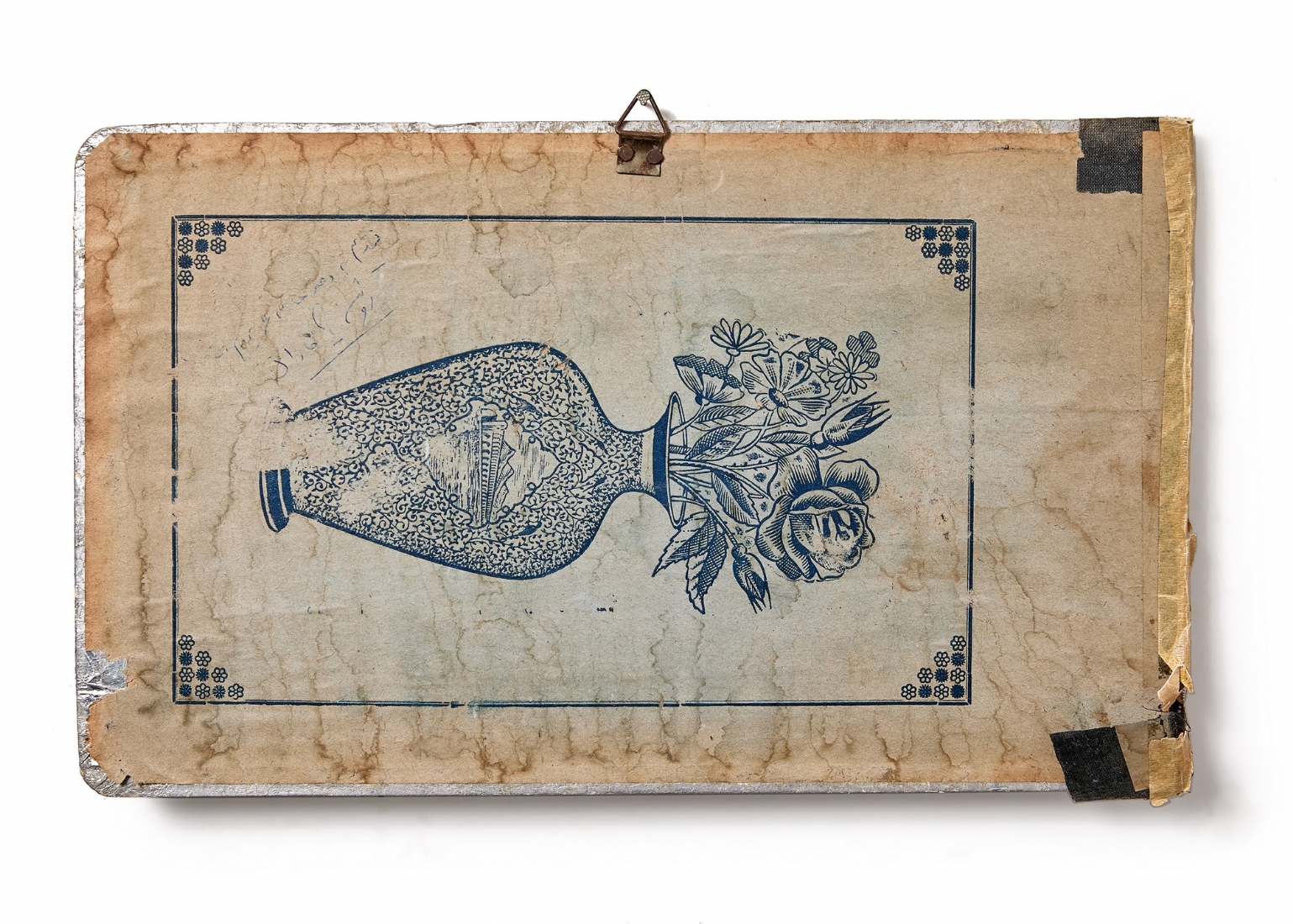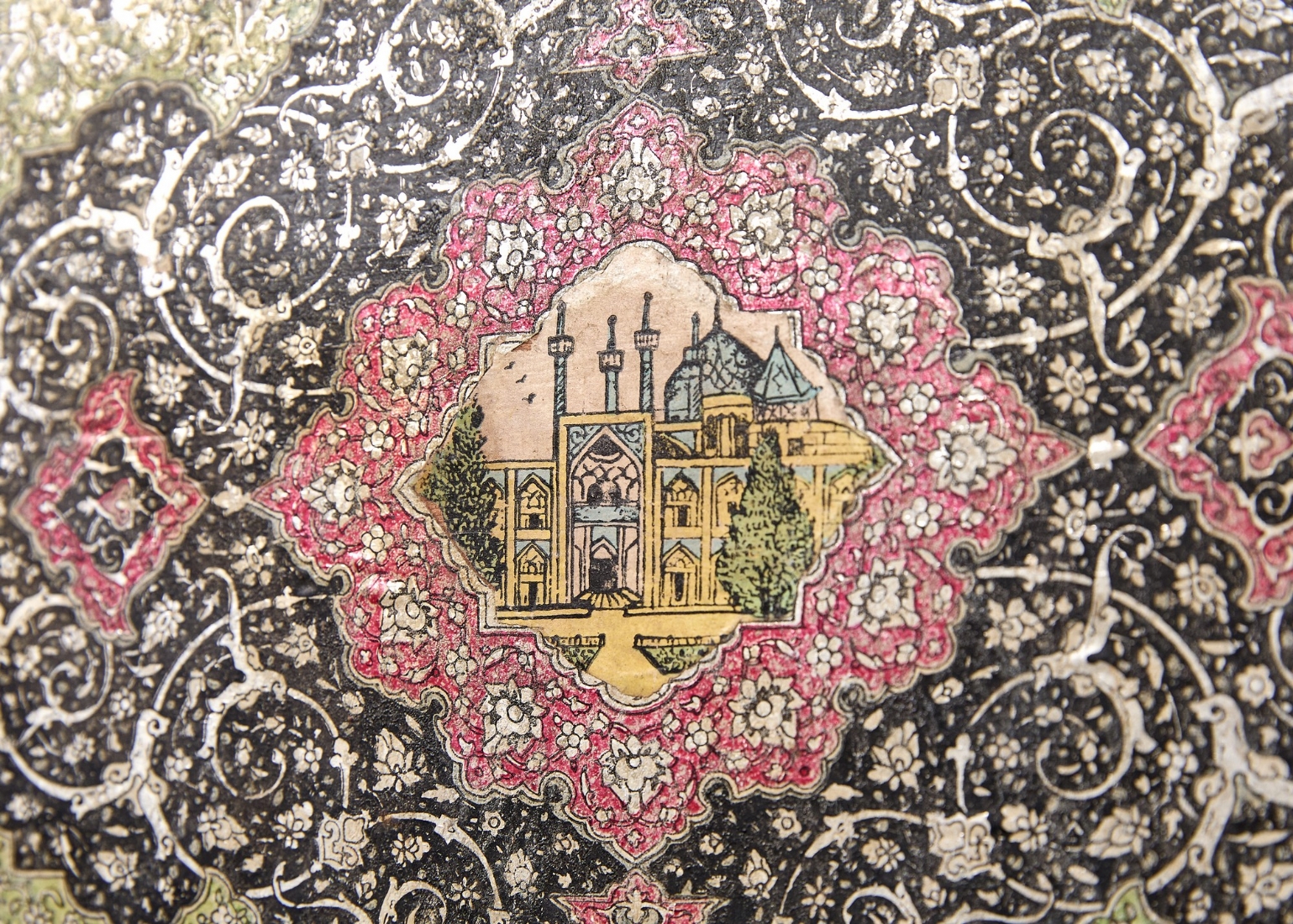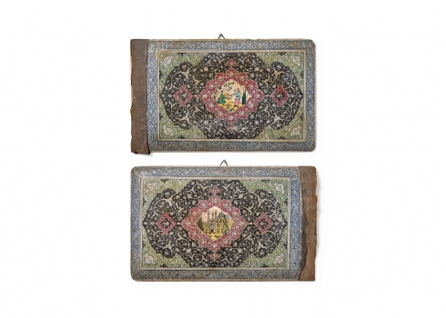 שני צידי כריכת אלבום פרסי עתיק שניתנים לתליה על הקיר