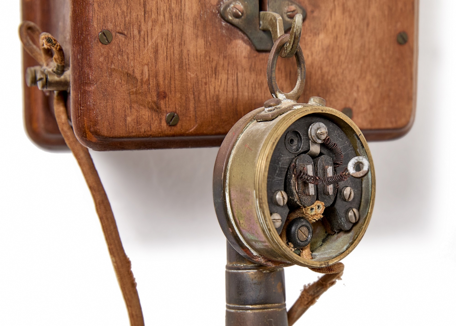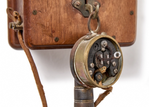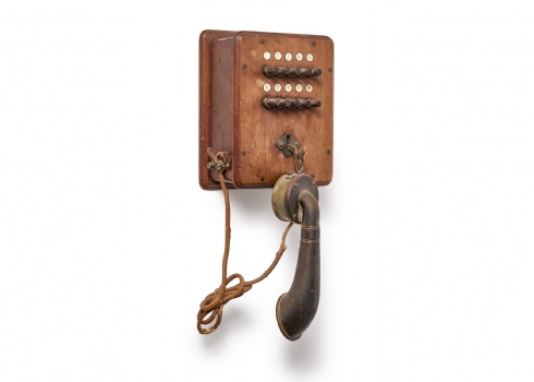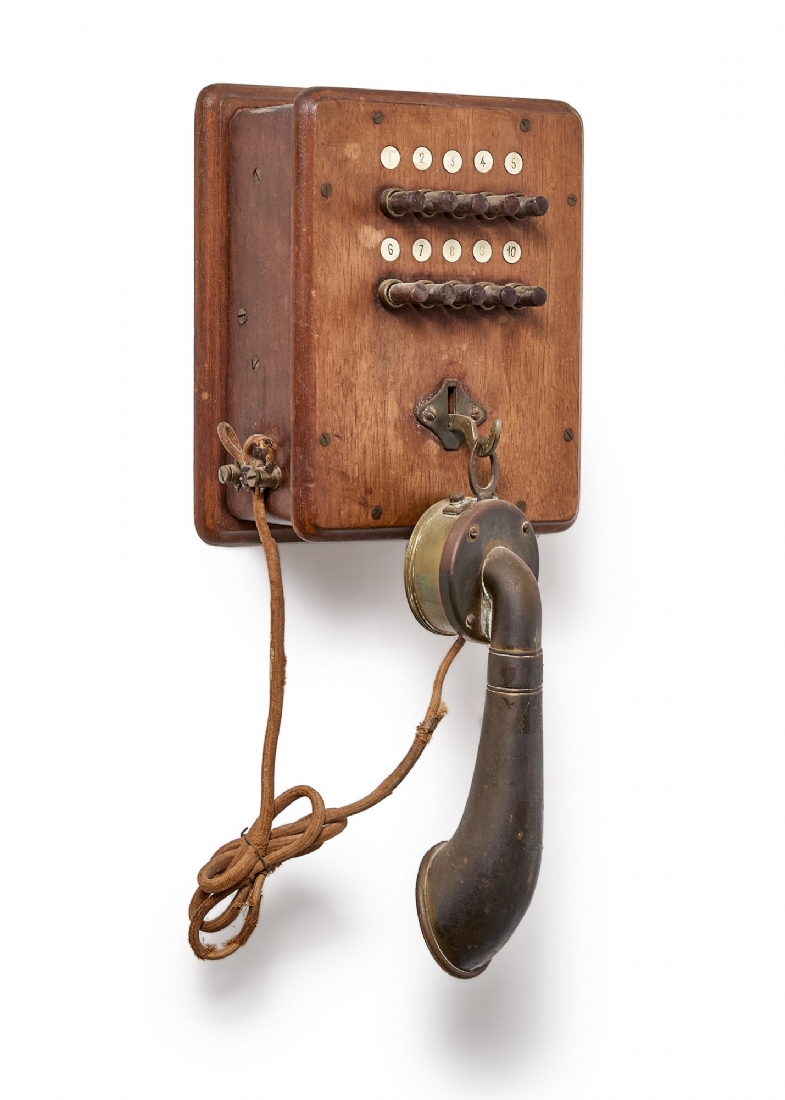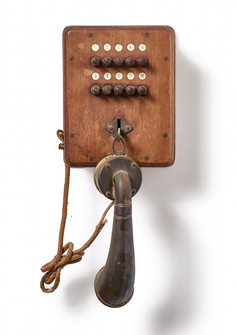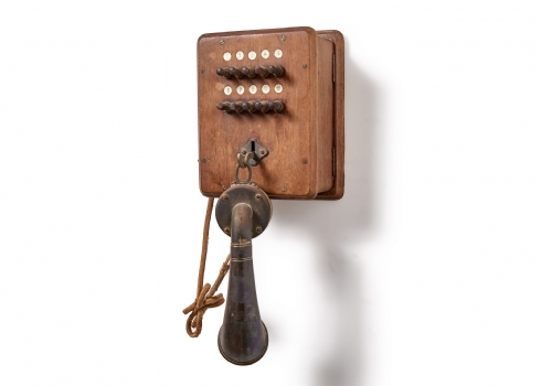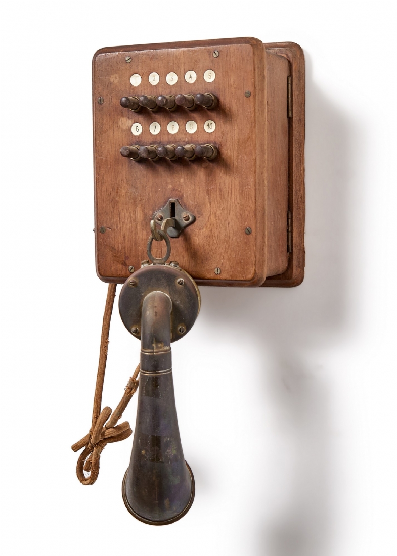 טלפון אינטרקום עתיק עשוי עץ