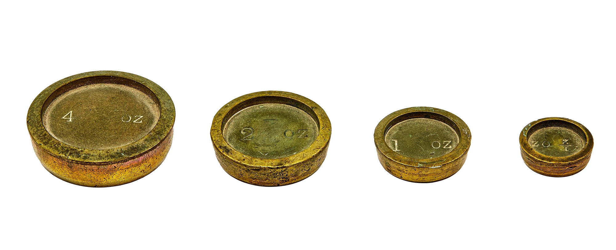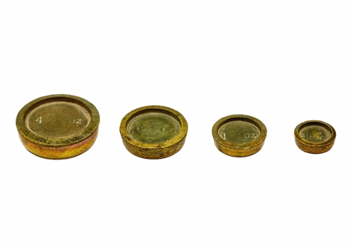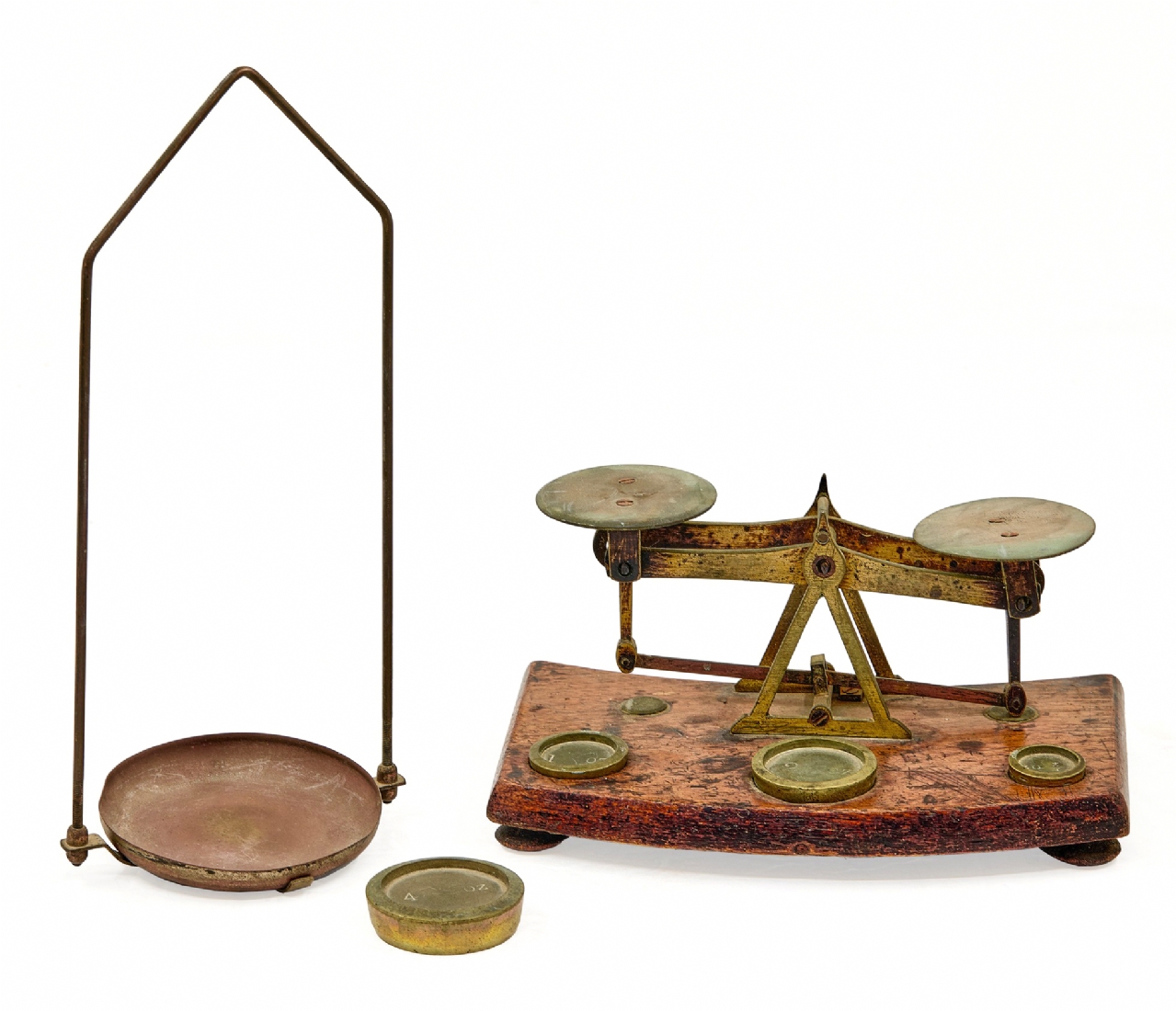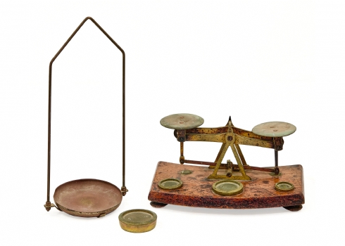 סט מאזניים וינטג' ברזל צבוע ונחושת עם משקולות קטנות