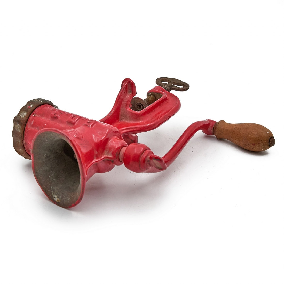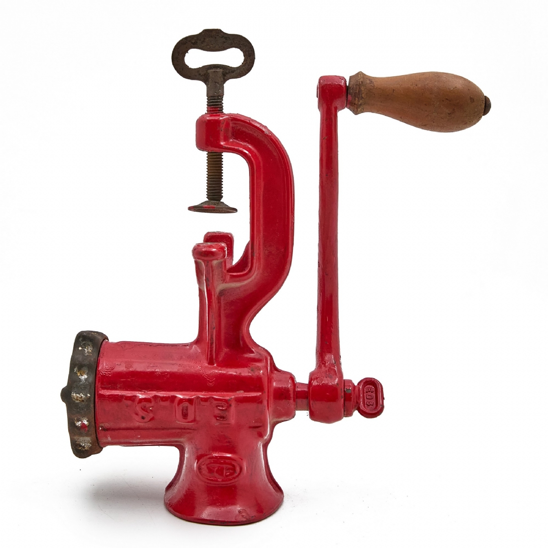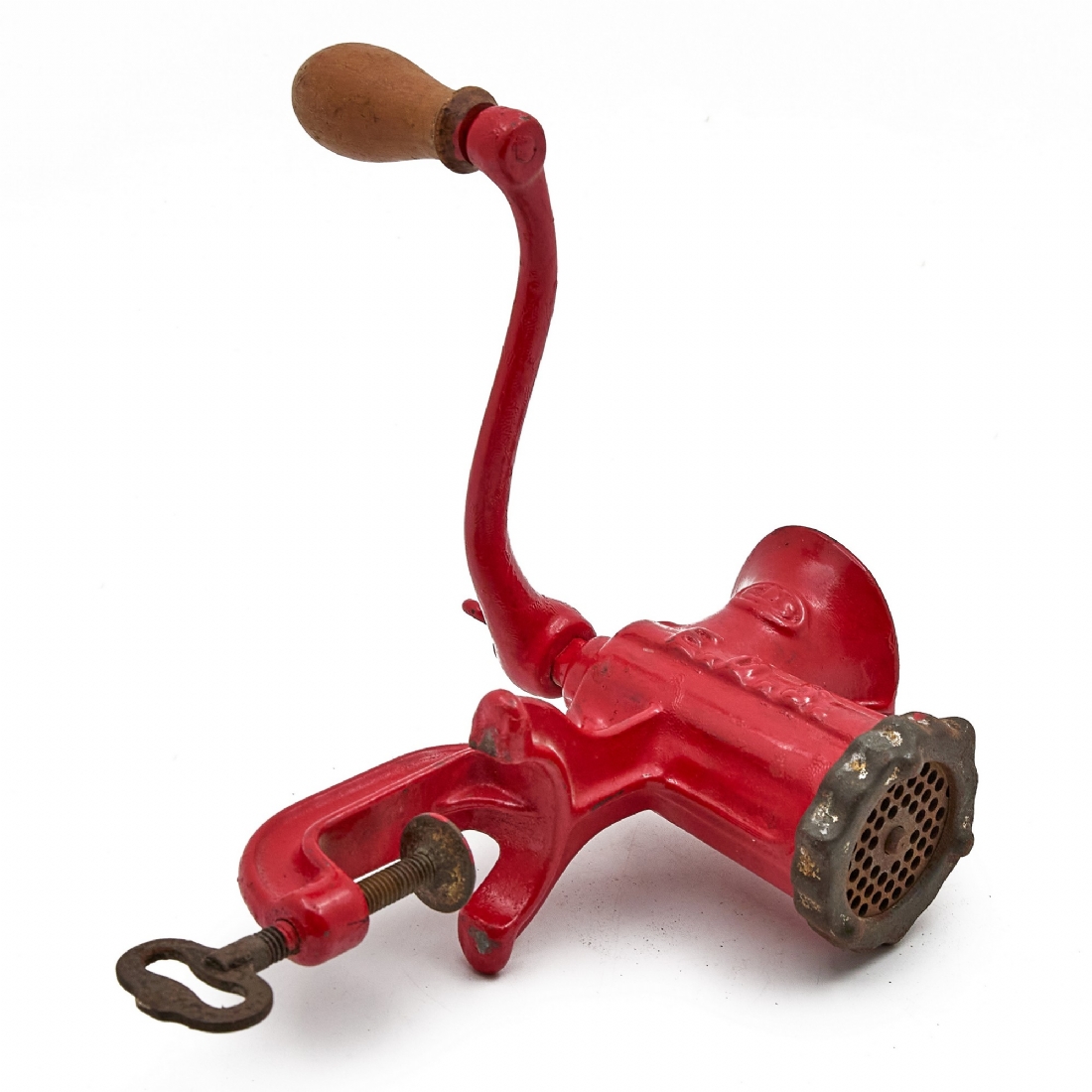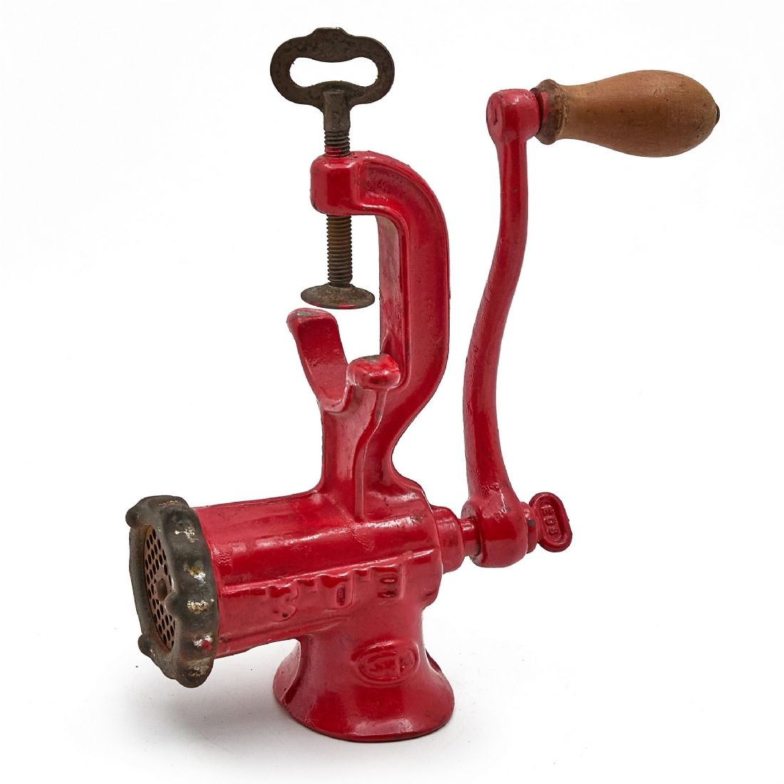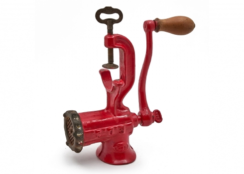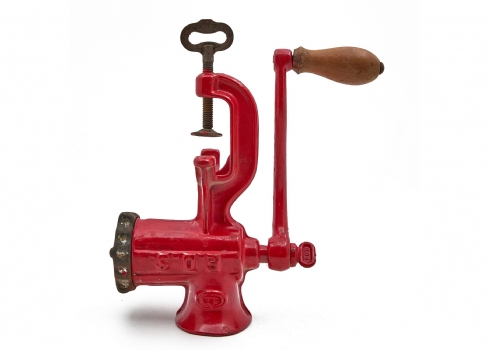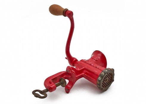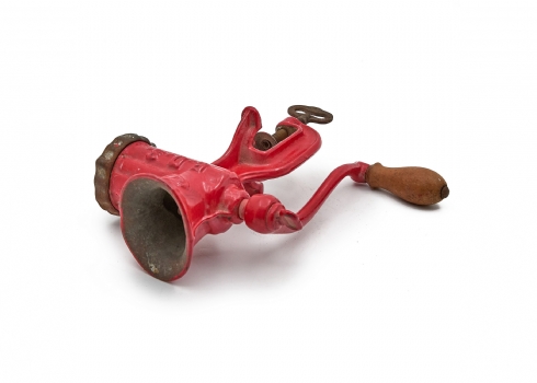 מטחנת בשר וינטג' עשויה ברזל יצוק עם ציפוי אמייל אדום
