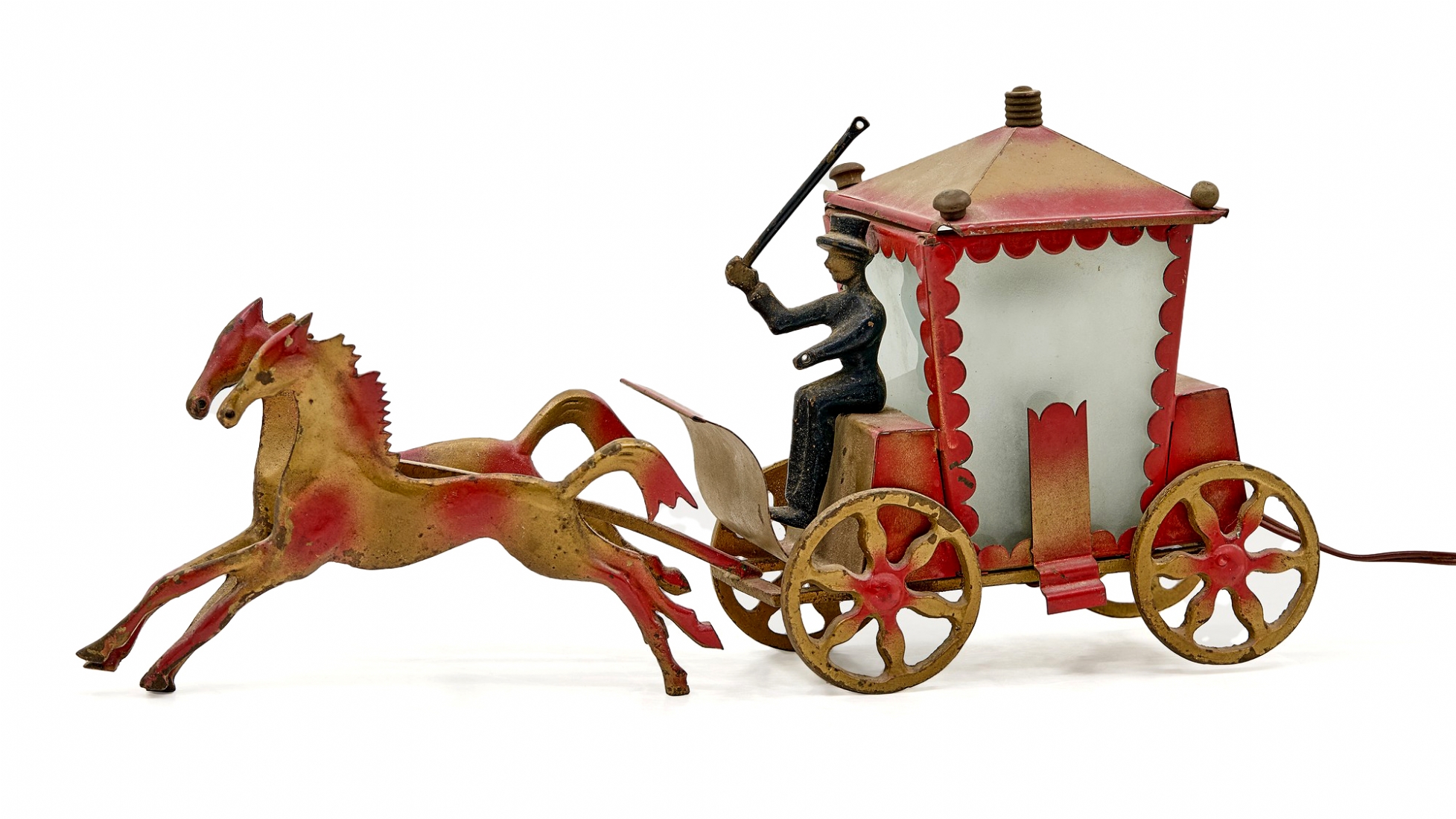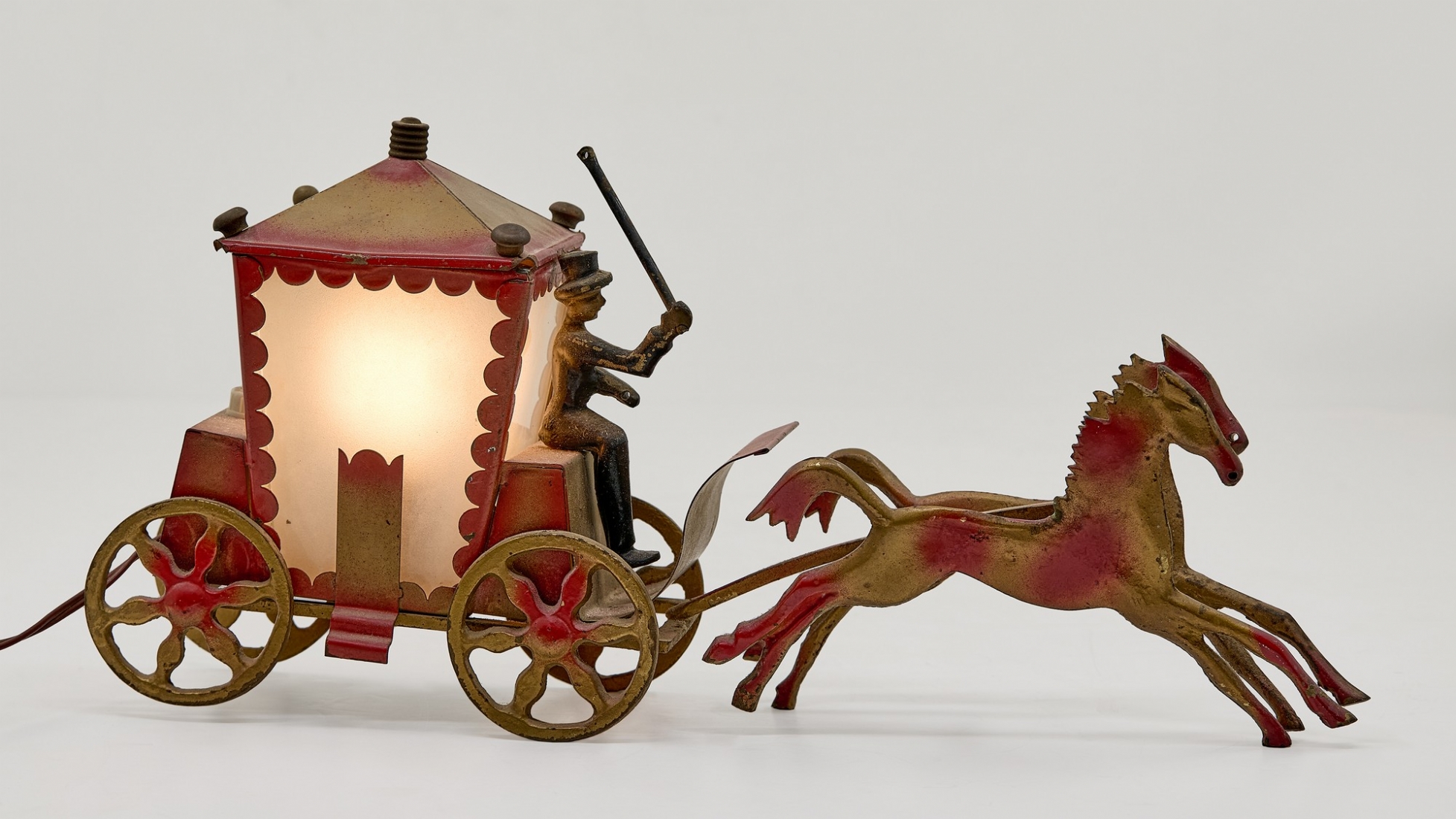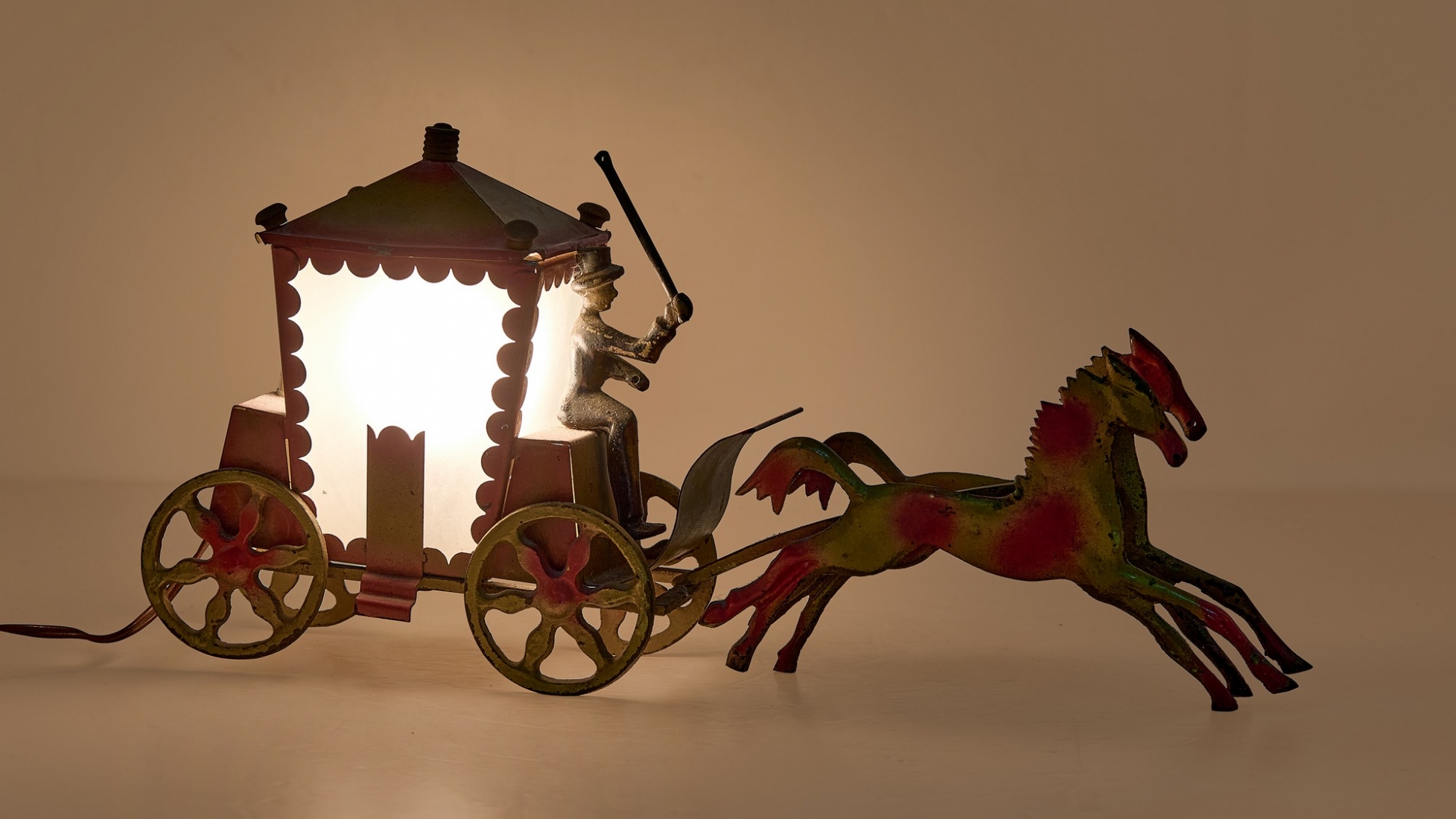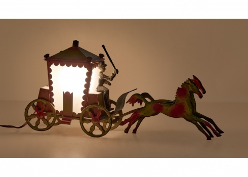 מנורה מצעצוע מתכת וינטג’ - כרכרת סוסים מתוצרת HAUMAN האומן, תוצרת ישראל