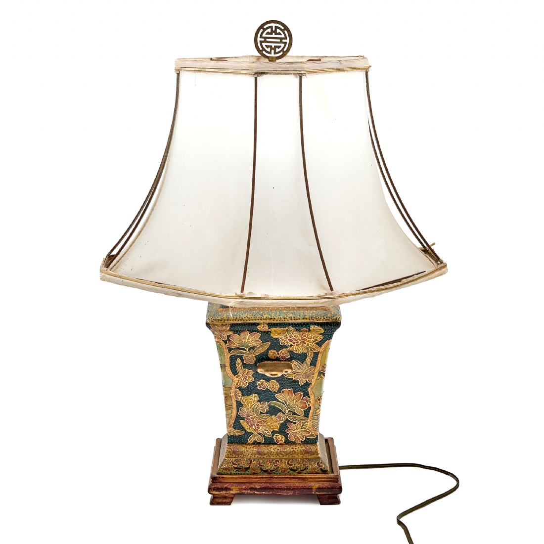 מנורה שולחנית (הרגל עשויה אגרטל סיני בסגנון סצומה יפנית)