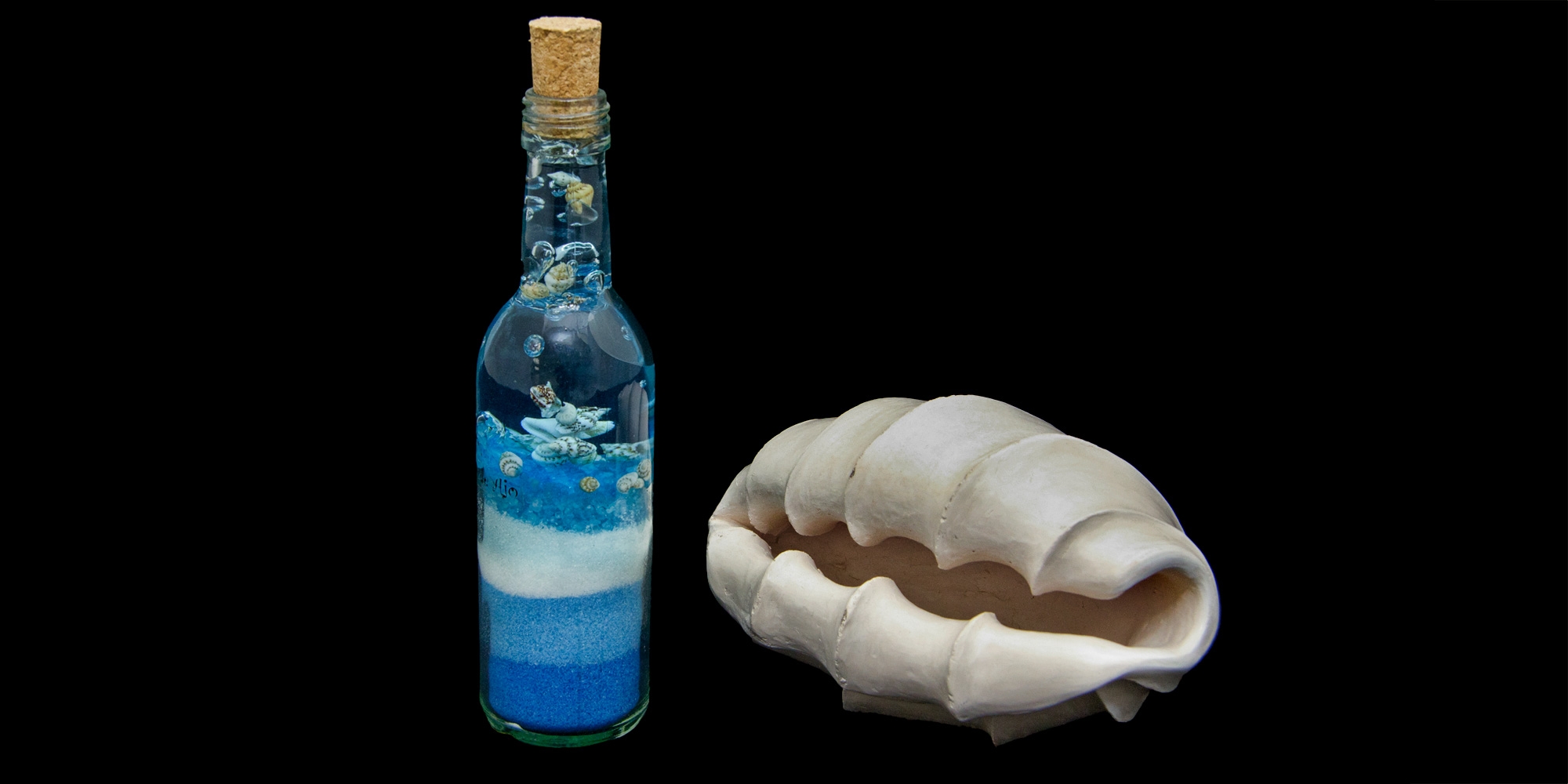 לוט של שני כלים דקורטיביים. גובה הבקבוק: 20 ס"מ.