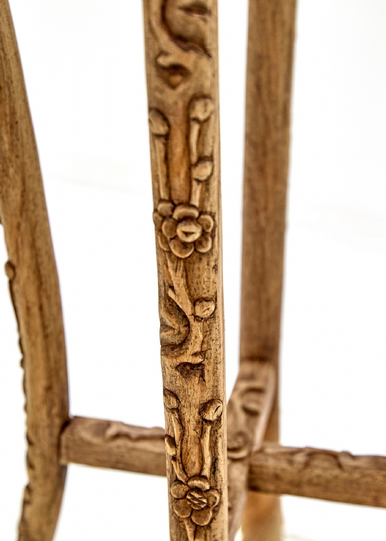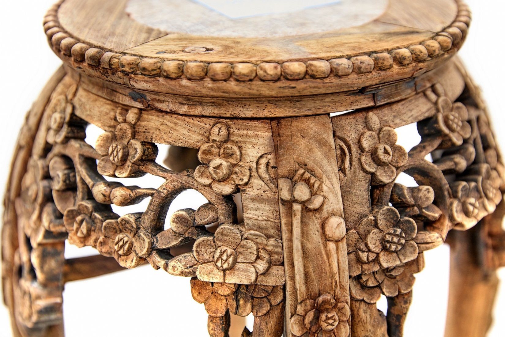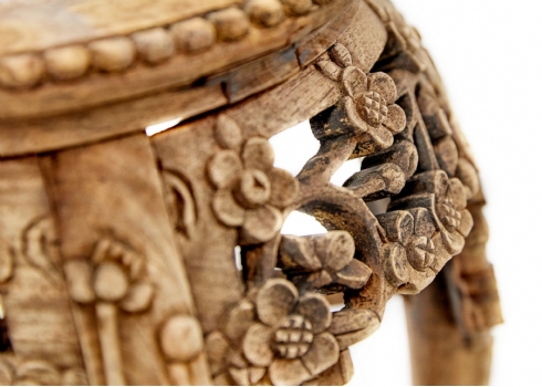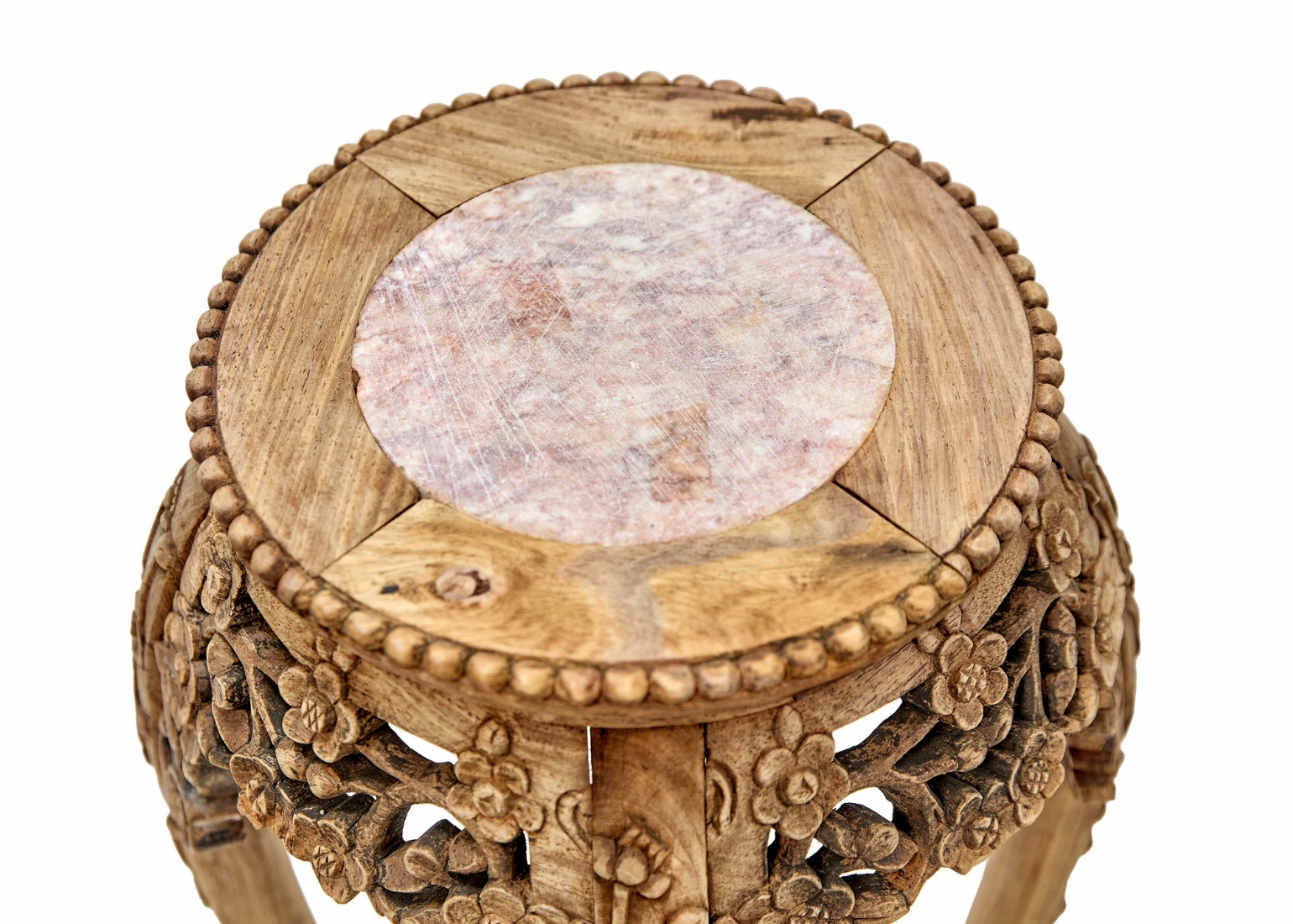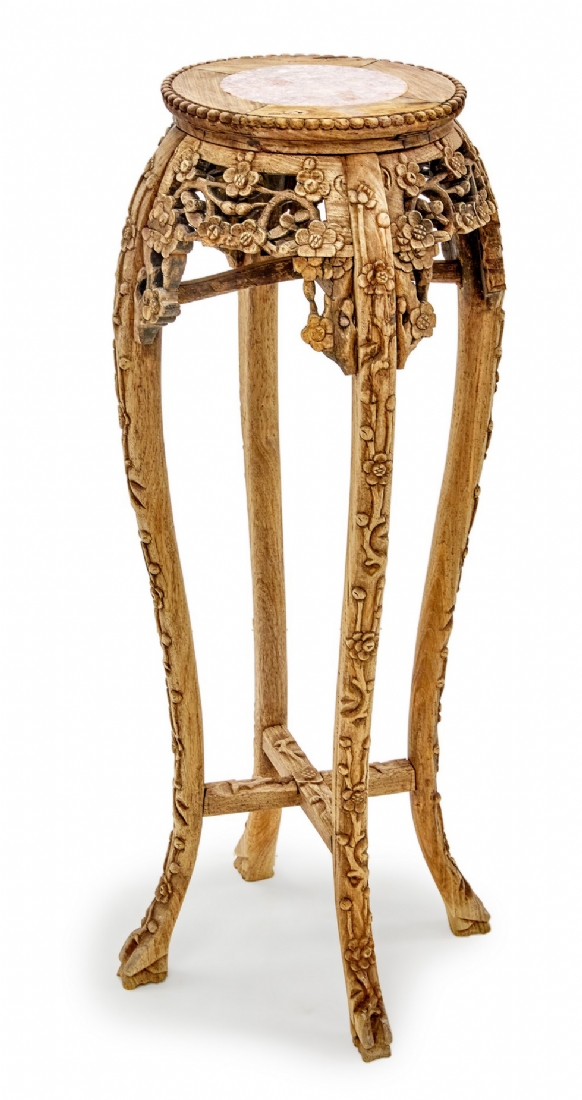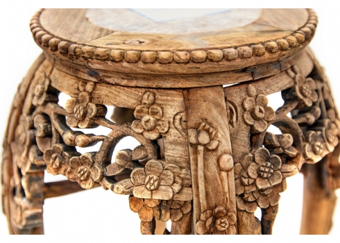 מעמד תצוגה סיני עשוי עץ מגולף בעבודת יד ומשטח עליון עשוי מדליון שיש בגוון סגול