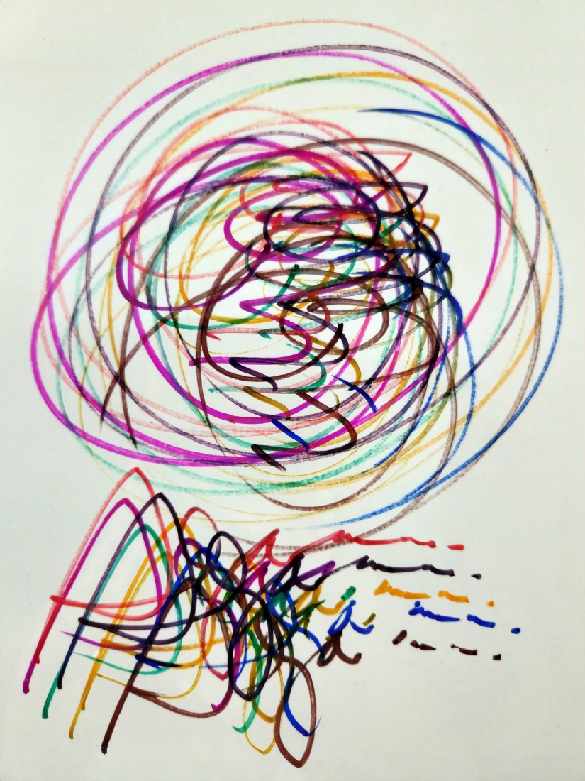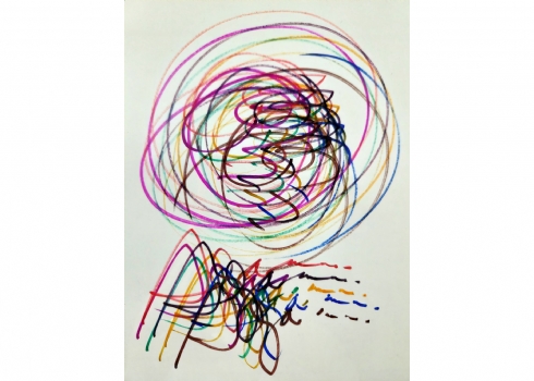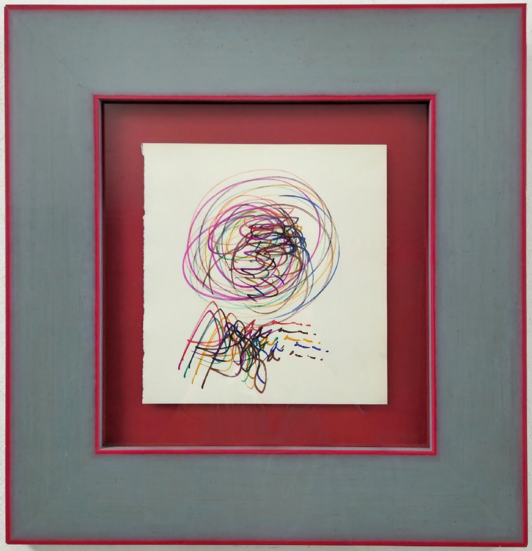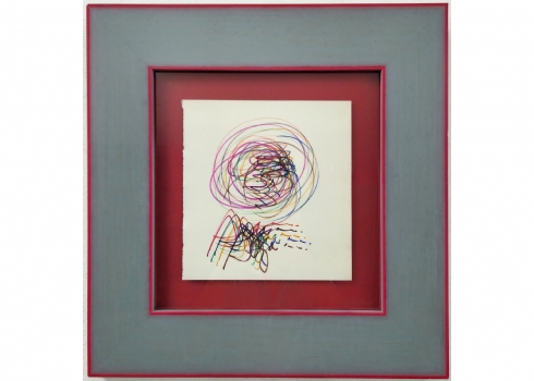 יעקוב אגם- רישום טושים צבעוניים על נייר, חתום