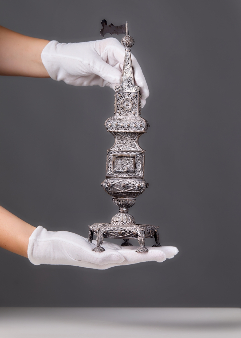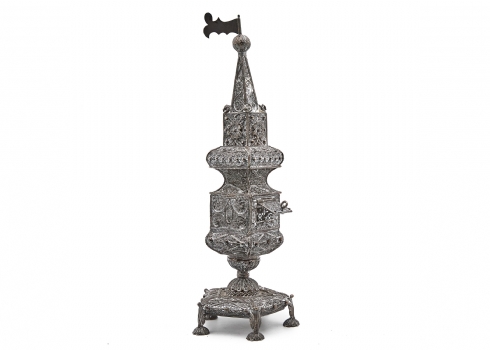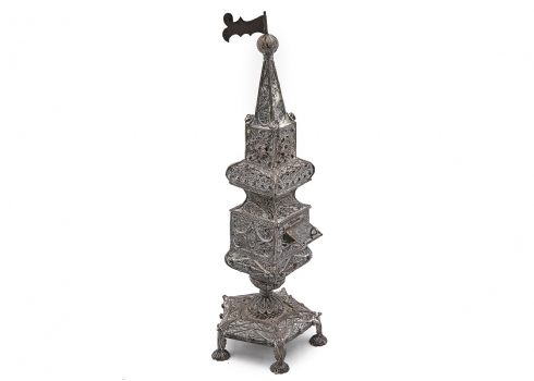 מגדל בשמים גדול ומפואר עשוי כסף 'סטרלינג', חתום
