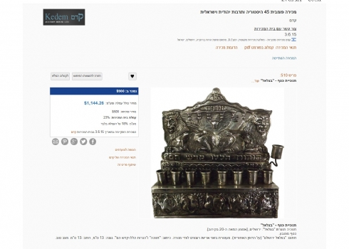 צלחת כסף פרסית עתיקה ויפה, חתומה לוט פרטי סכו"ם אנגלי ישן מתוצרת: 'Walker & Hall', עשויים מתכת מצופה כסף, חתומים כלי אנגלי ישן לרוטב (רוטביה), מתוצרת: 'Walker & Hall', עשוי מתכת מצופה כסף, חתום כלי הגשה ומכסה תואם, עשויים מתכת מצופים כסף, חתום כלי הגשה וכיבוד מרובע, עשוי מתכת מצופה כסף, חתום מיחם (סמובר) אמריקאי ישן ואיכותי מתוצרת 'Reed & Barton', חתום, עשוי מתכת מוכספת קופסא עתיקה מסוף המאה ה-19, עשויה מתכת  ומשובצת אבני חן טבעיות מגש ישן ויפה בסגנון עתיק, עשוי מתכת מצופה כסף, חתום, נתמך על ארבע רגליות כד רוסי עתיק, מתחילת המאה העשרים, עשוי גוף קריסטל מלוטש בעבודת יד מיחם אנגלי עתיק (ויקטוריאני) מסוף המאה ה-19, עשוי פיוטר מצופה כסף סט של שלושה כלי כסף הודים (קשמיריים) עתיקים מהמאה ה-19 סט אנגלי עתיק (ויקטוריאני) להגשת דגים Armand Grosz - 'טבע דומם עם ספר שבתוכו דמות רב' הרמן שטרוק - דיוקן הרצל Hermann Struck הרמן שטרוק - דיוקן הרצל Hermann Struck הרמן שטרוק - דיוקן הרצל Hermann Struck דיויד רוברטס (David Roberts) הדפס 'Jaffa Looking North' שמואל בן דוד (בצלאל) - 'חוף ים', כלי מוכסף להגשה וכיבוד קנקן ארט דקו ישן לשתייה קרה הדפס עתיק של ארץ הקודש קנקן מתוצרת: 'Mappin & Webb' שני כלי כסף עתיקים כף הגשה אוסטרית עתיקה כלי הגשה ישן, עשוי נחושת מצופה כסף כלי מוכסף ומעמד תואם סלסלה עתיקה עשויה פליז מצופה כסף תכשיט אמייל מתוצרת 'בצלאל' בעיצוב שמואל בן-דוד תכשיט אמייל מתוצרת 'בצלאל' בעיצוב שמואל בן-דוד פסל ברונזה בדמות דוד המלך