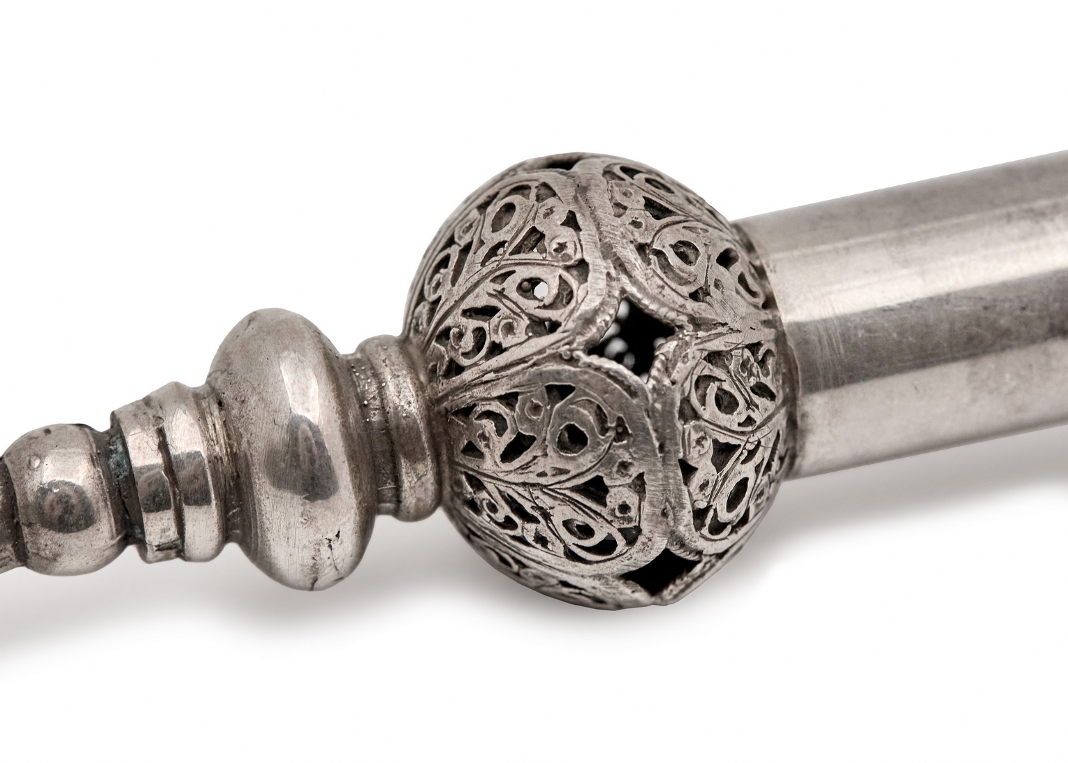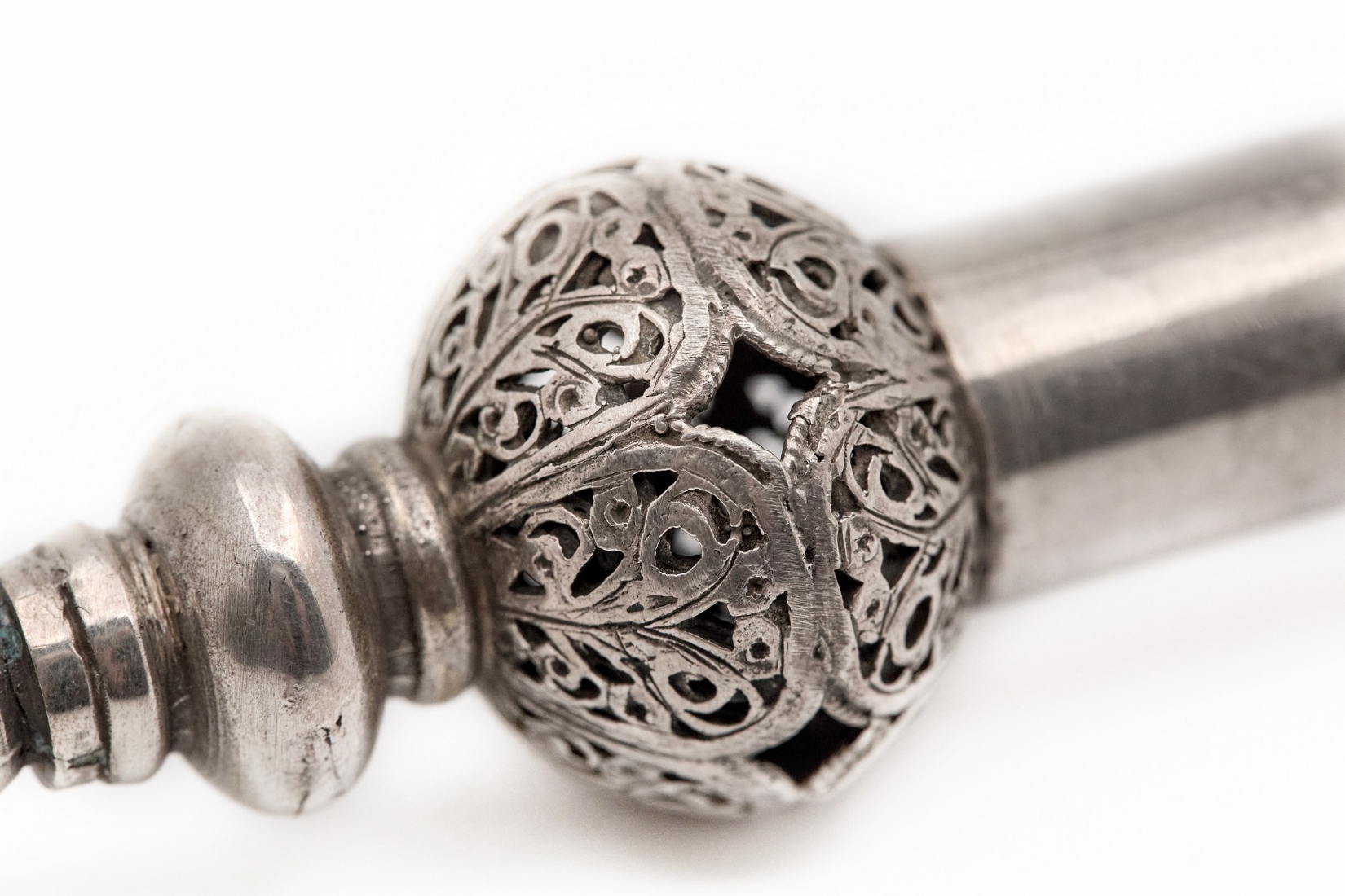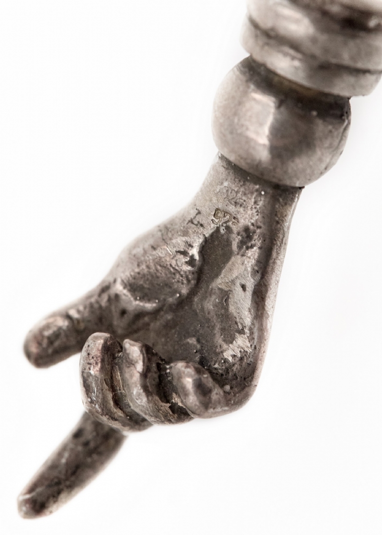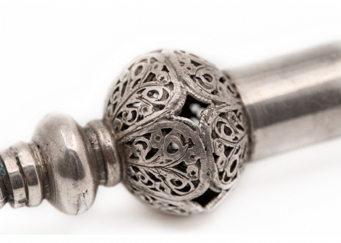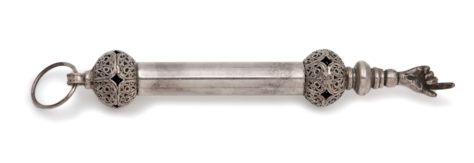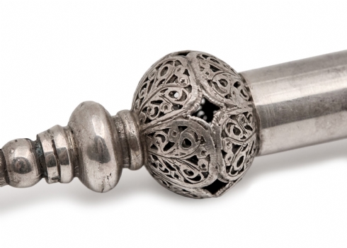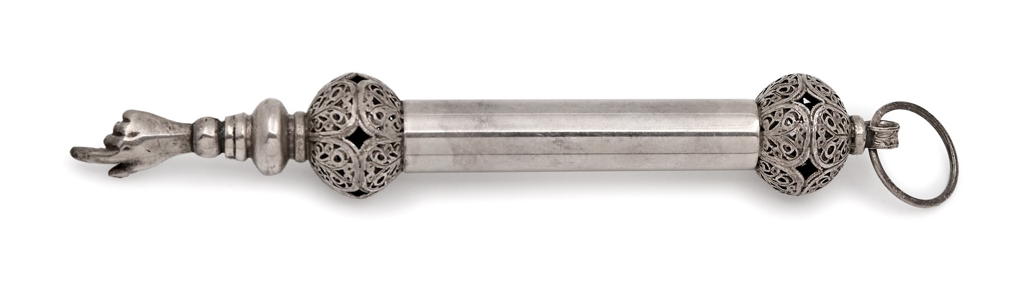 אצבע לספר תורה, עשויה כסף 'סטרלינג' חתום: 925 מעוטרת בכדורי פיליגראן עדינים