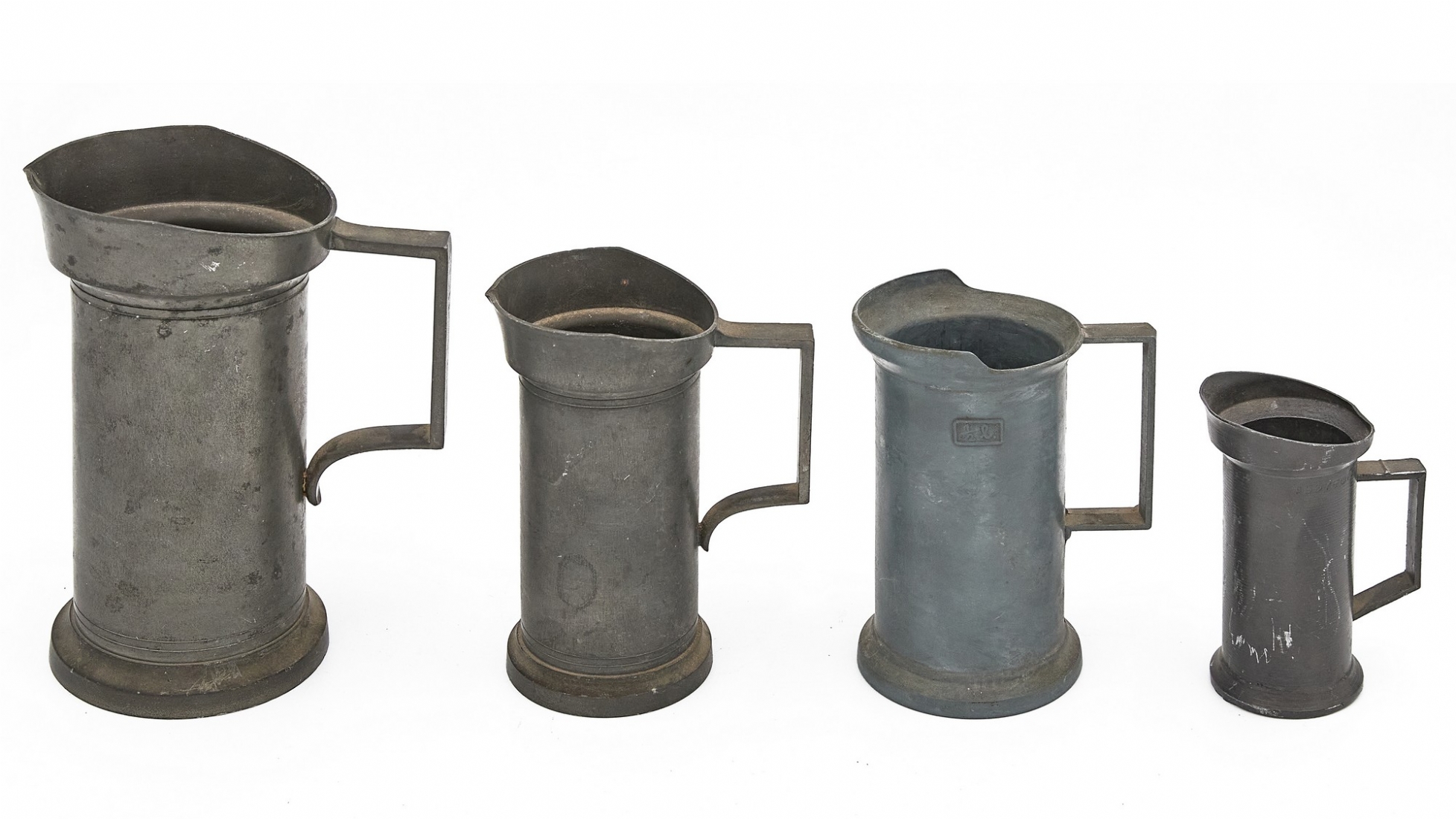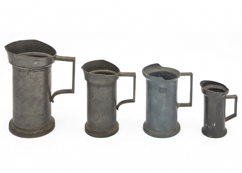 ארבעה קנקני מדידה הולנדים למטבח עשויים פיוטר בגדלים שונים