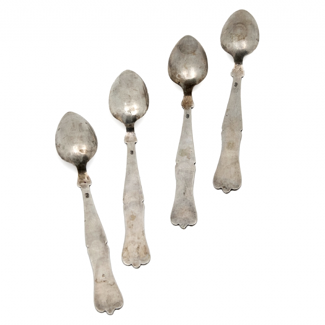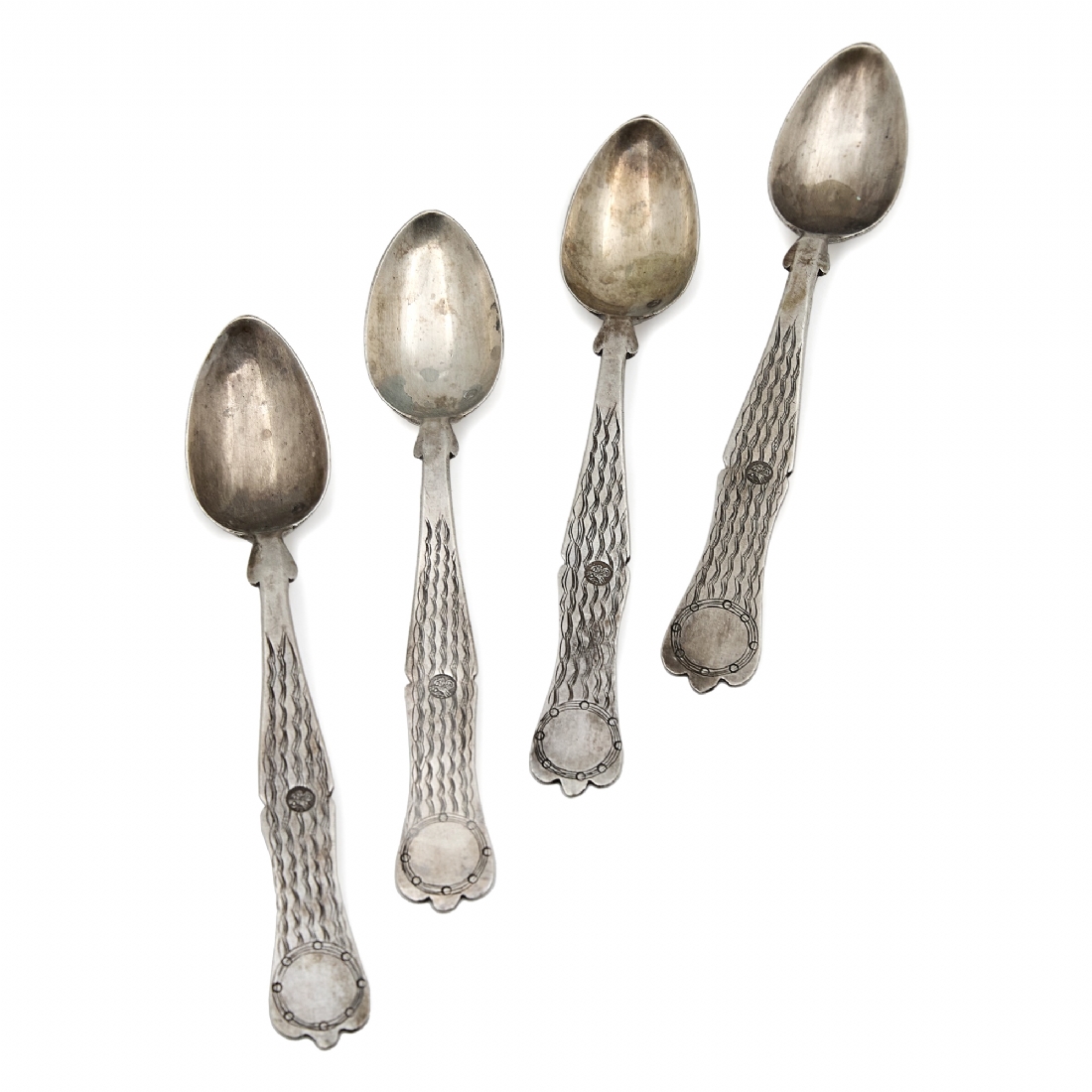 סט של ארבע כפיות טורקיות עות’מניות, עשויות כסף 800 וחתומות