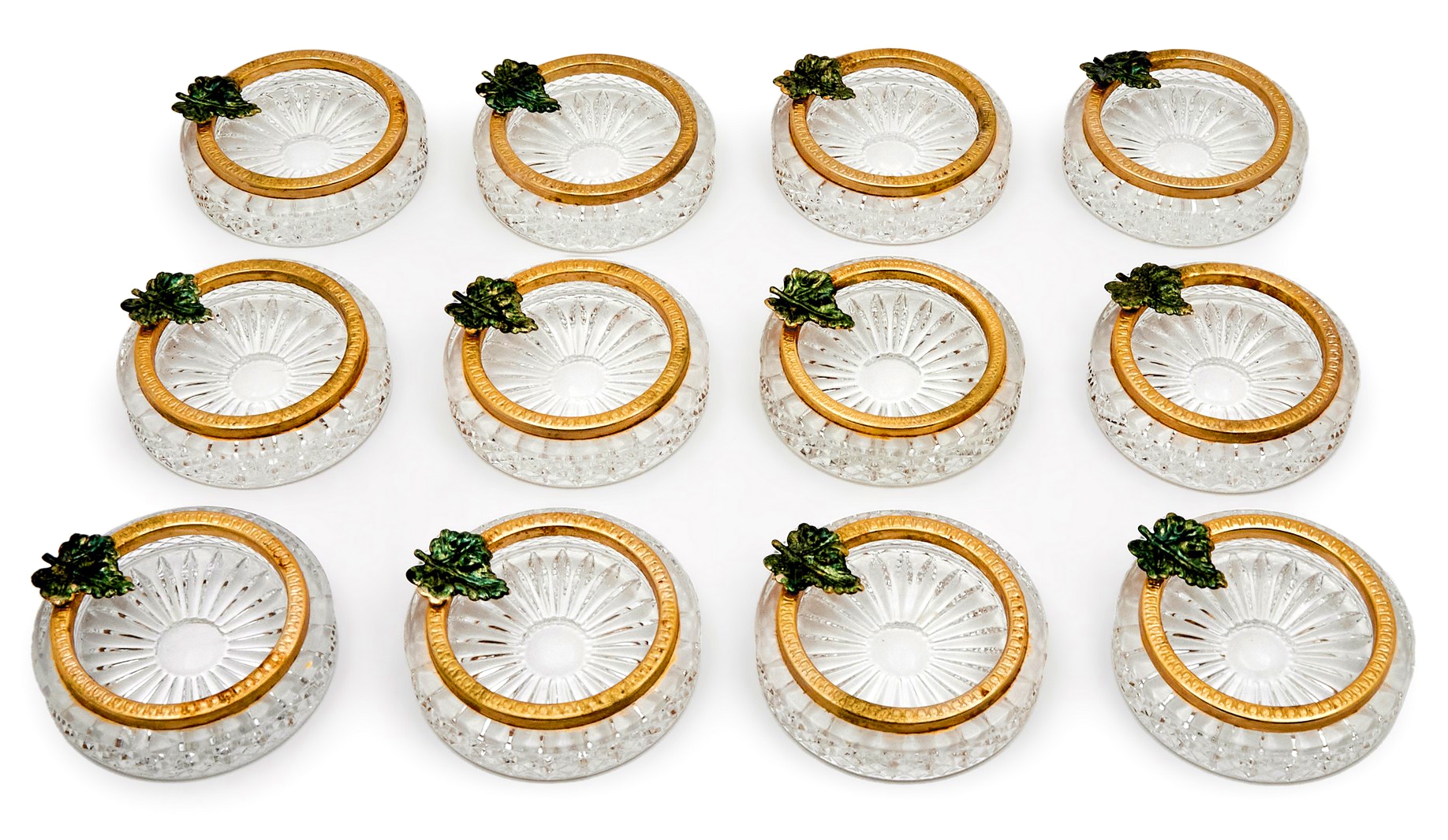 סט של 12 מאפרות אישיות מזכוכית קריסטל צרפתית עם עיטורי זהב