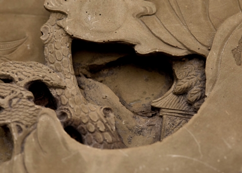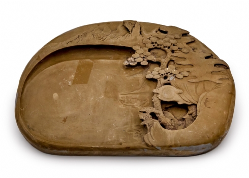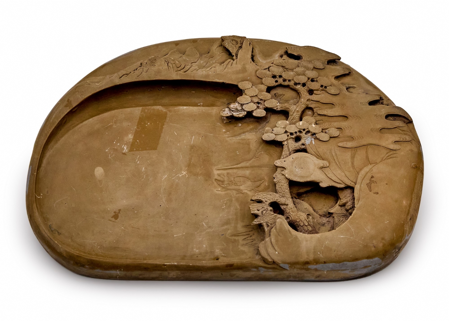 אבן דיו סינית מעוטרת בנוף טבעי חרוט עשויה חומר יצוק - כלי קליגרפיה מסורתי