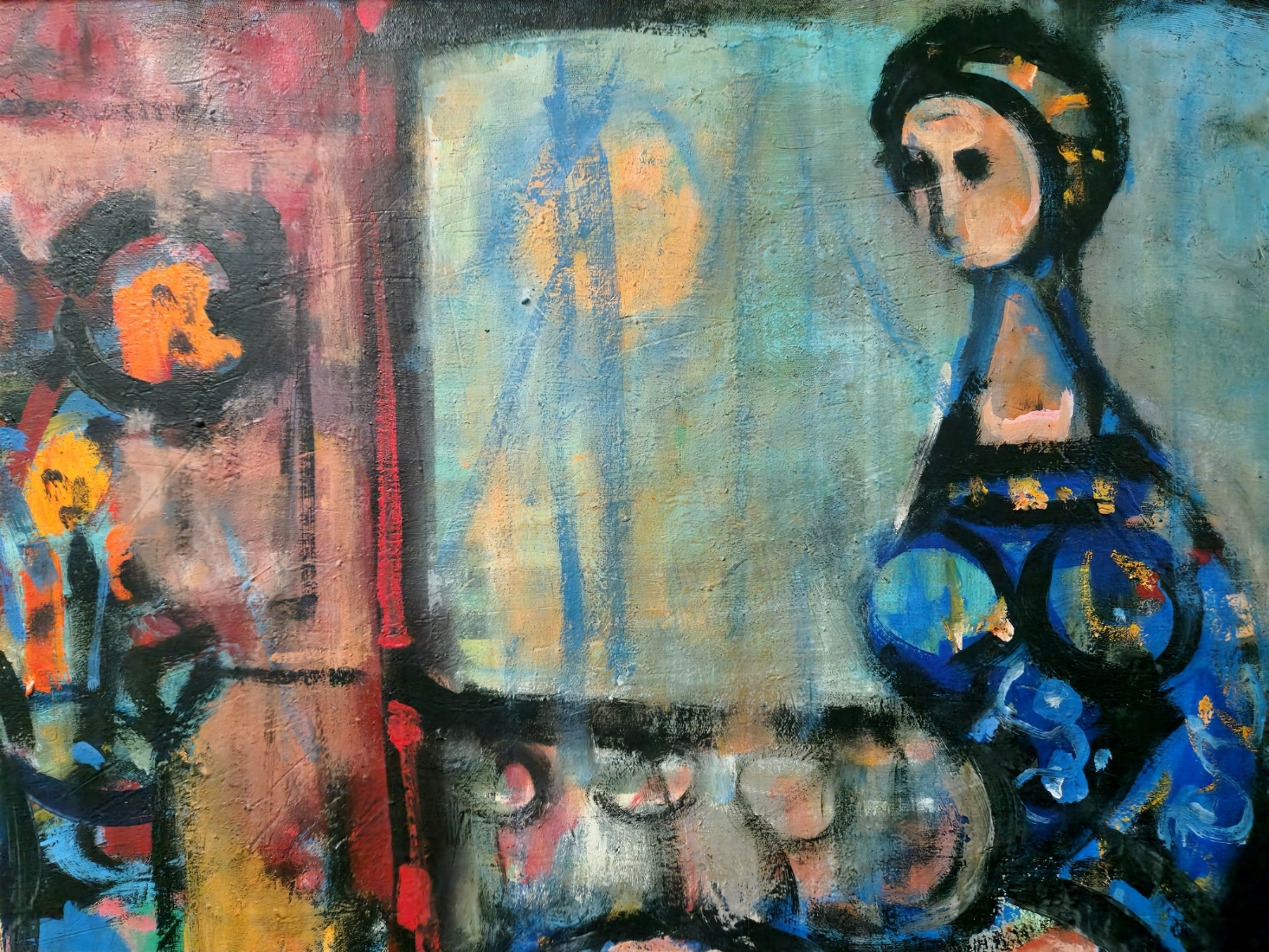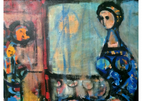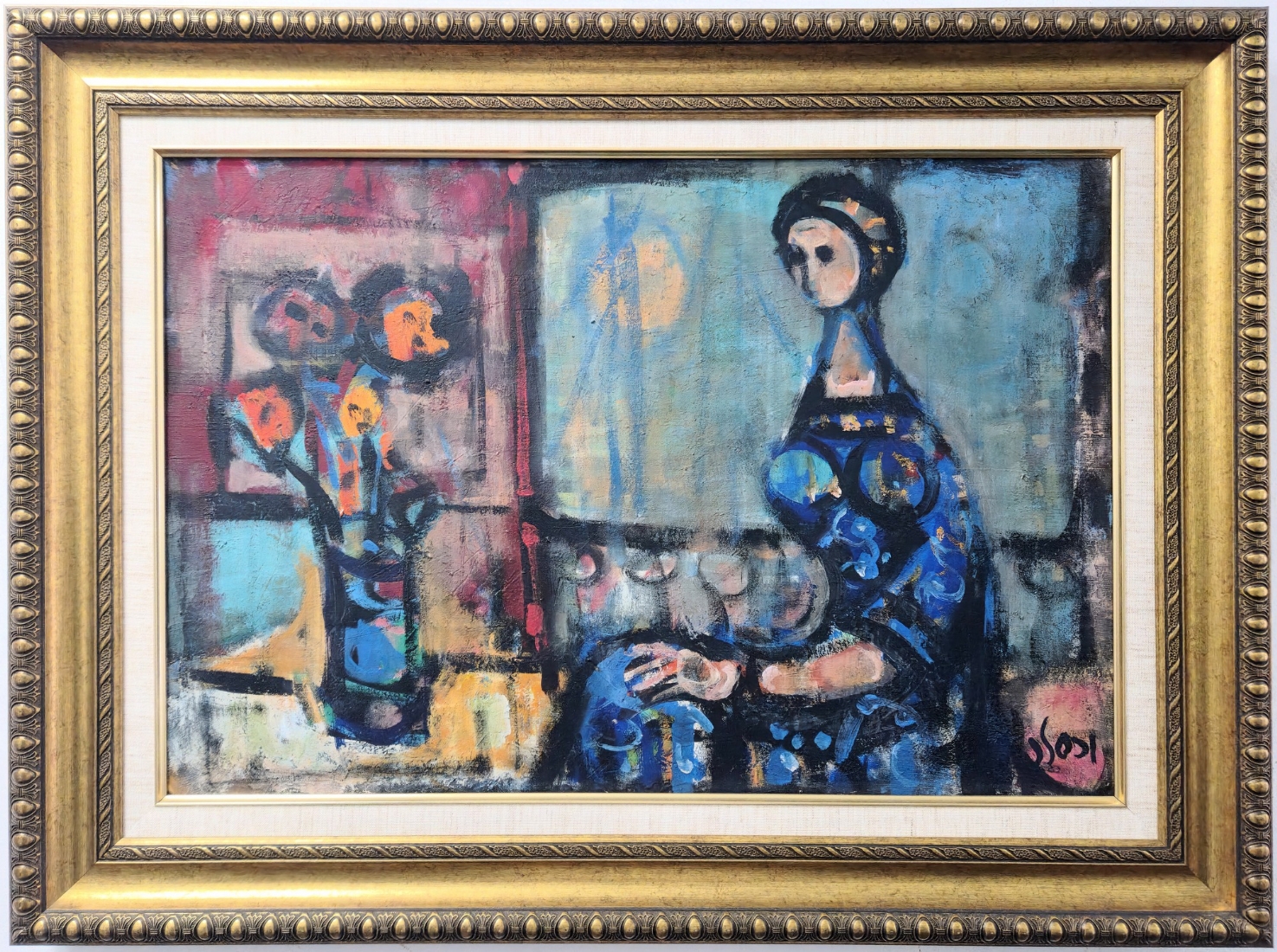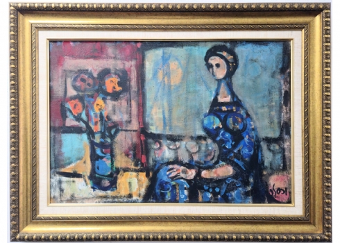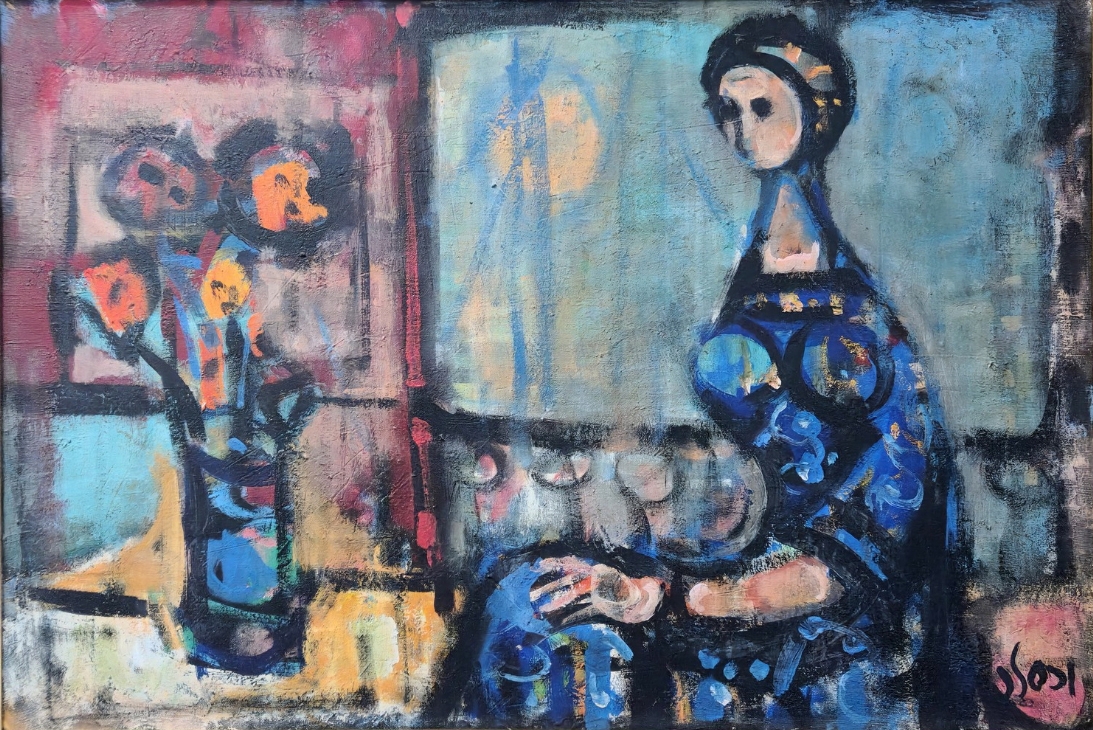 יעקוב וכסלר - אישה כחולה ואגרטל, שמן על בד, חתום