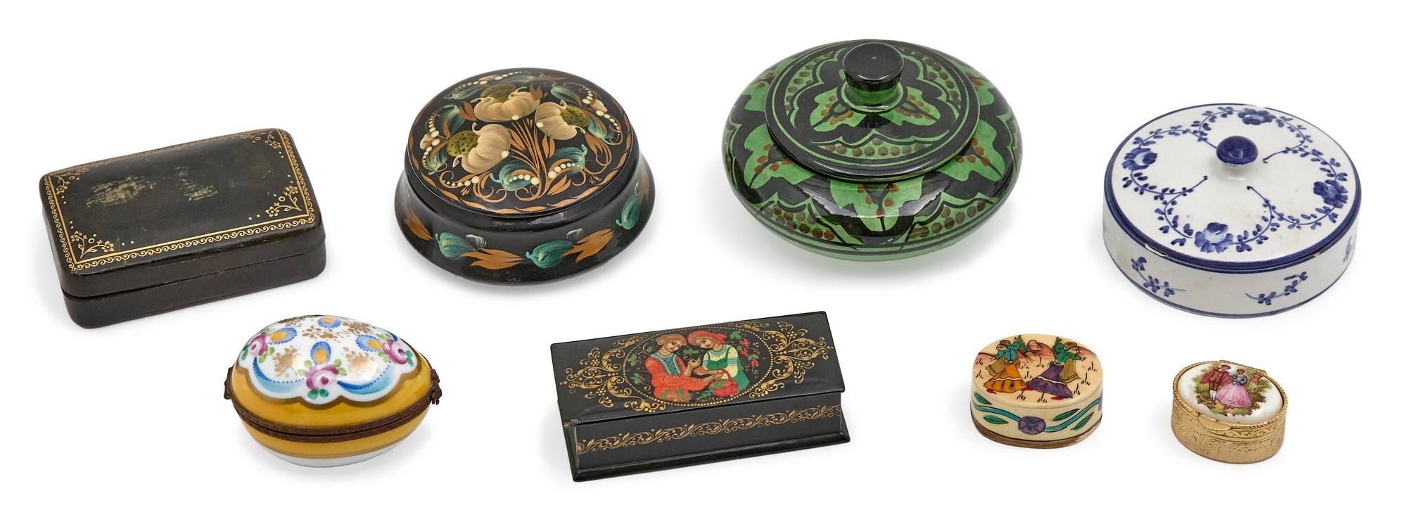 8 קופסאות קטנות, דגמים ויצרנים שונים, חלקם חתומים
