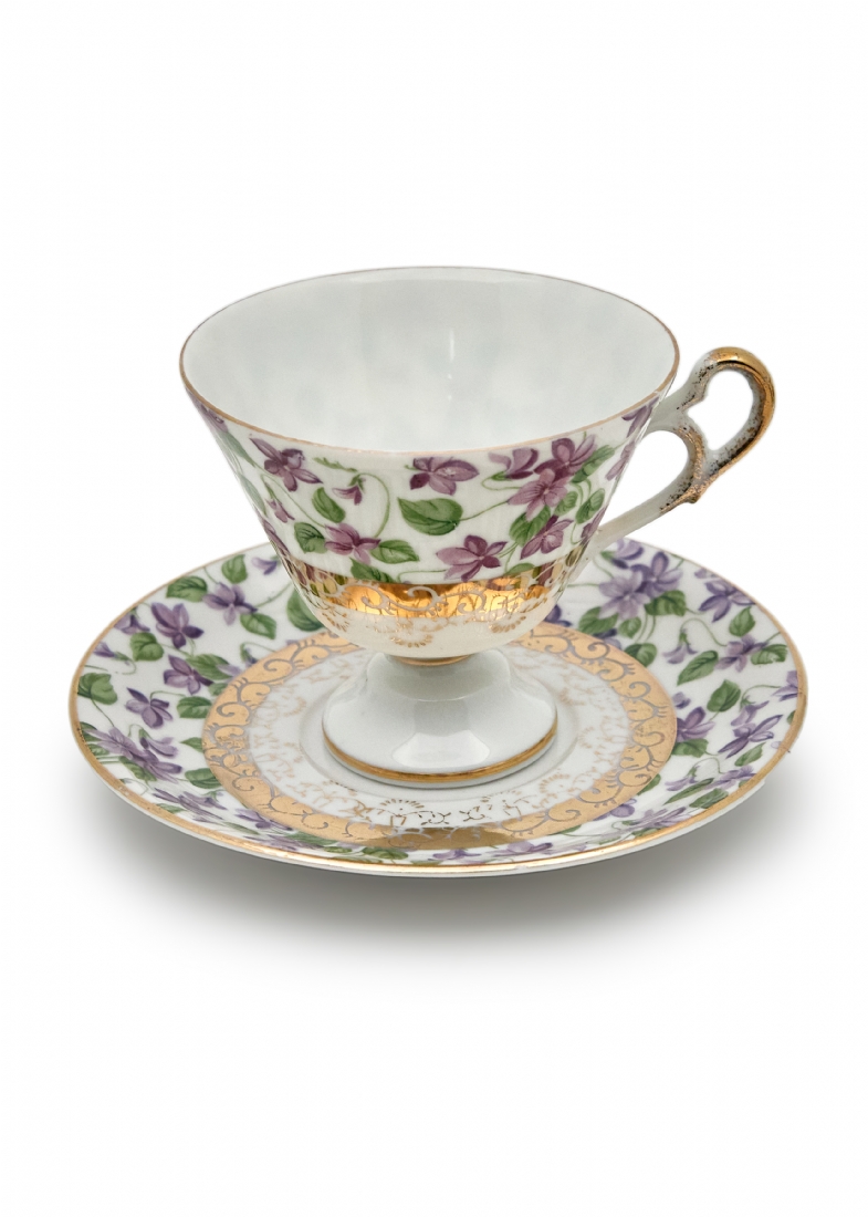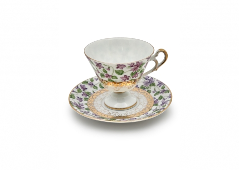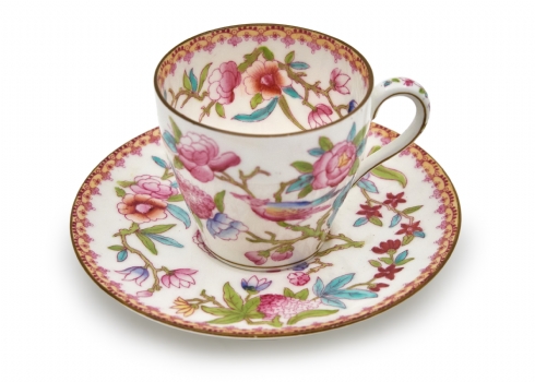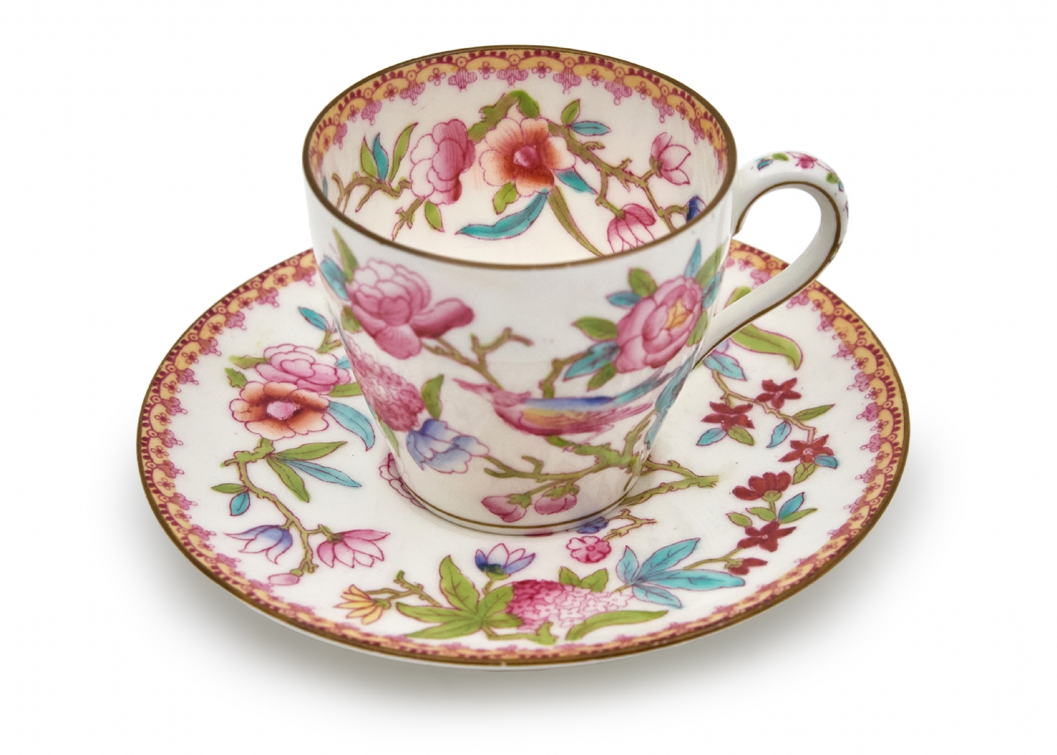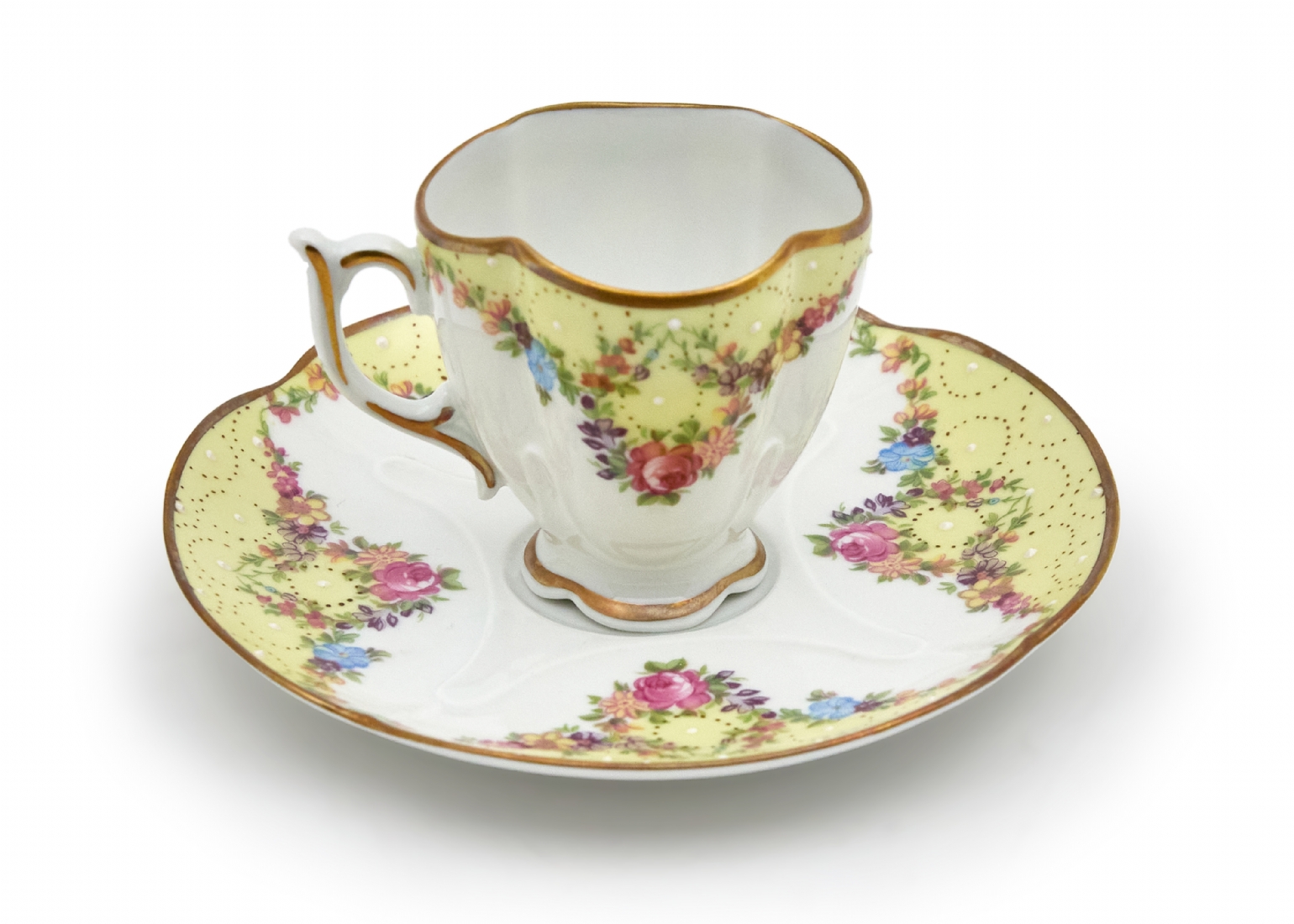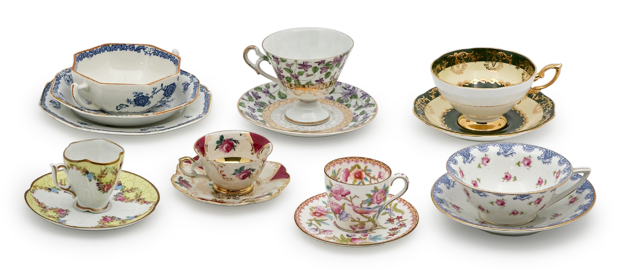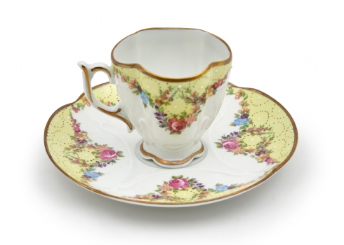7 ספלי פורצלן מעוטרים שונים של יצרנים ודגמים שונים, חתומים