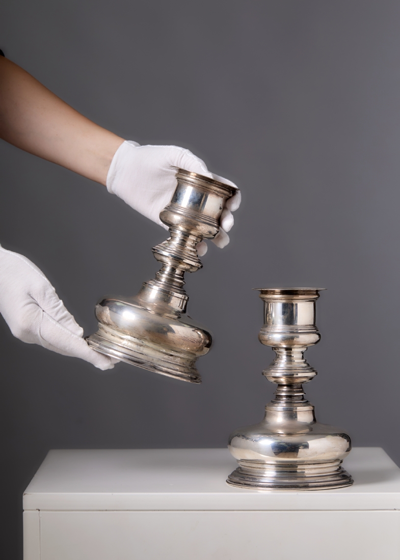 זוג פמוטים איטלקים עשויים כסף בסגנון הבארוק מתוצרת Brandimarte מפירנצה