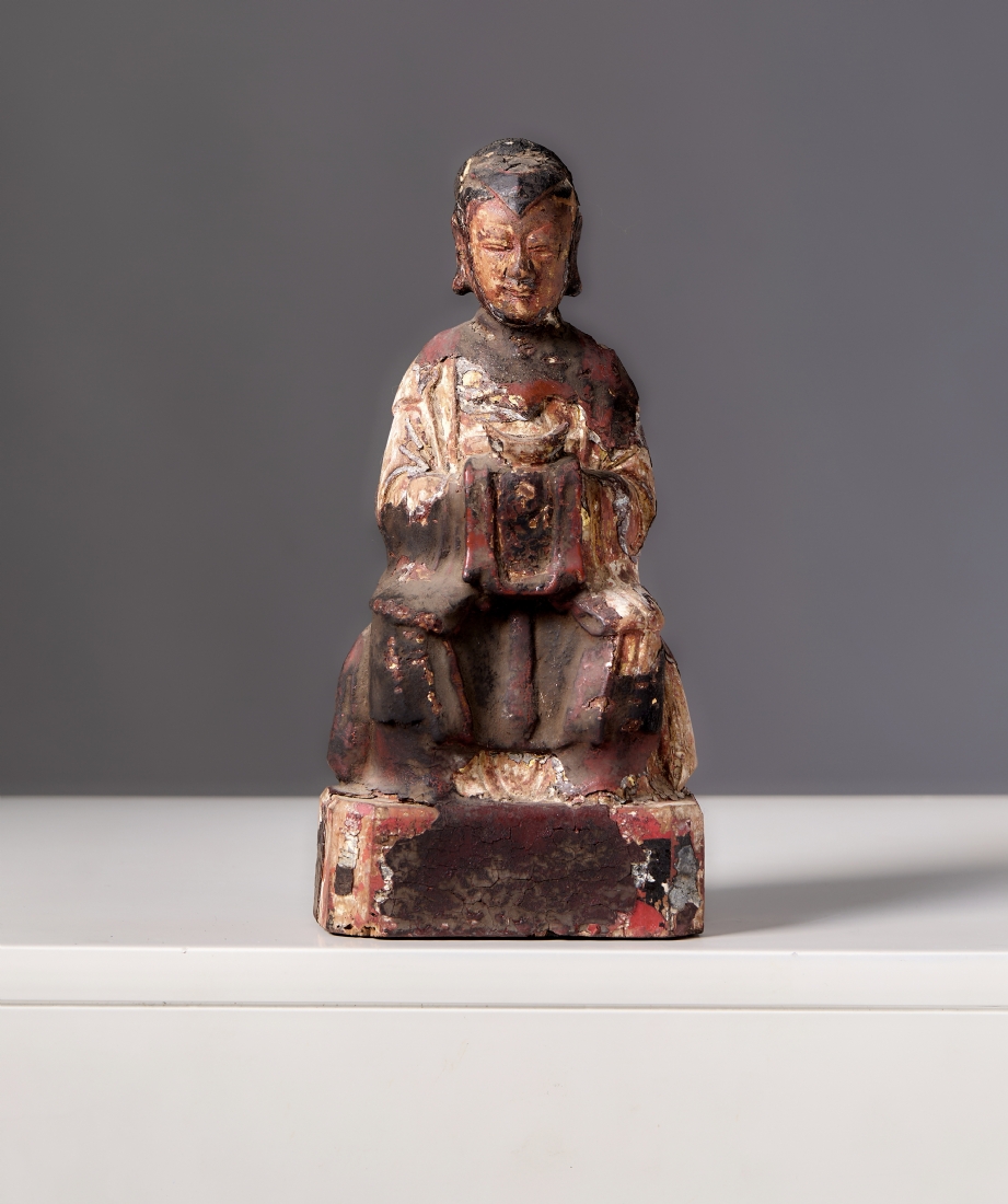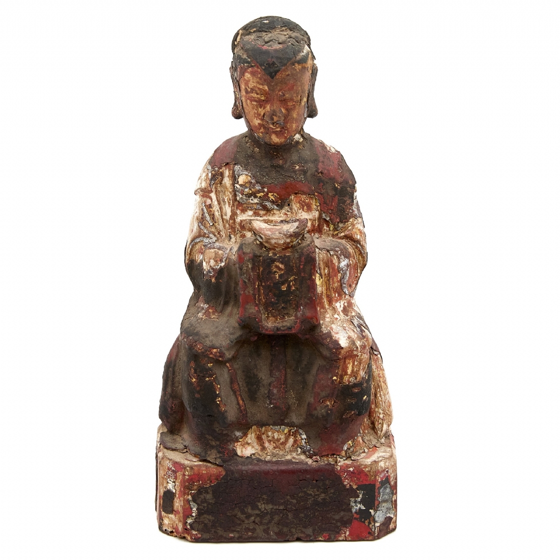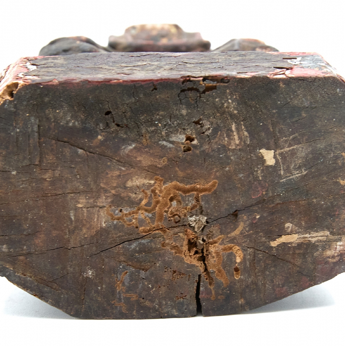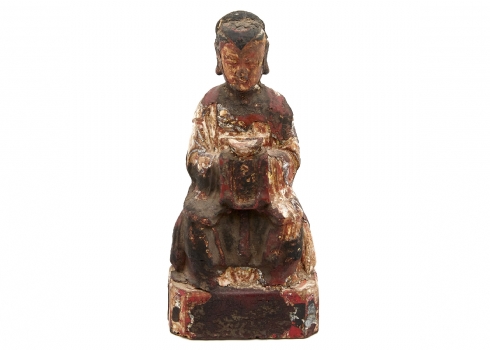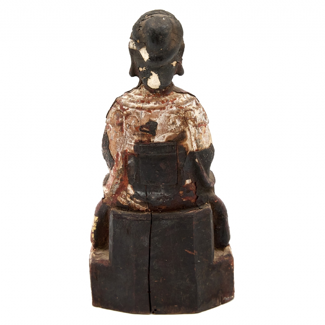 פסל סיני עתיק מהמאה ה-18, עשוי עץ מגולף וצבוע, מצב בהתאם לגיל (מצולם)