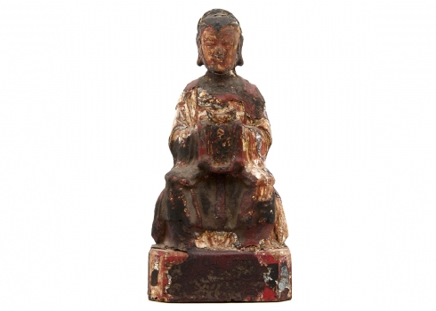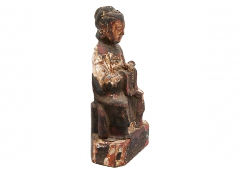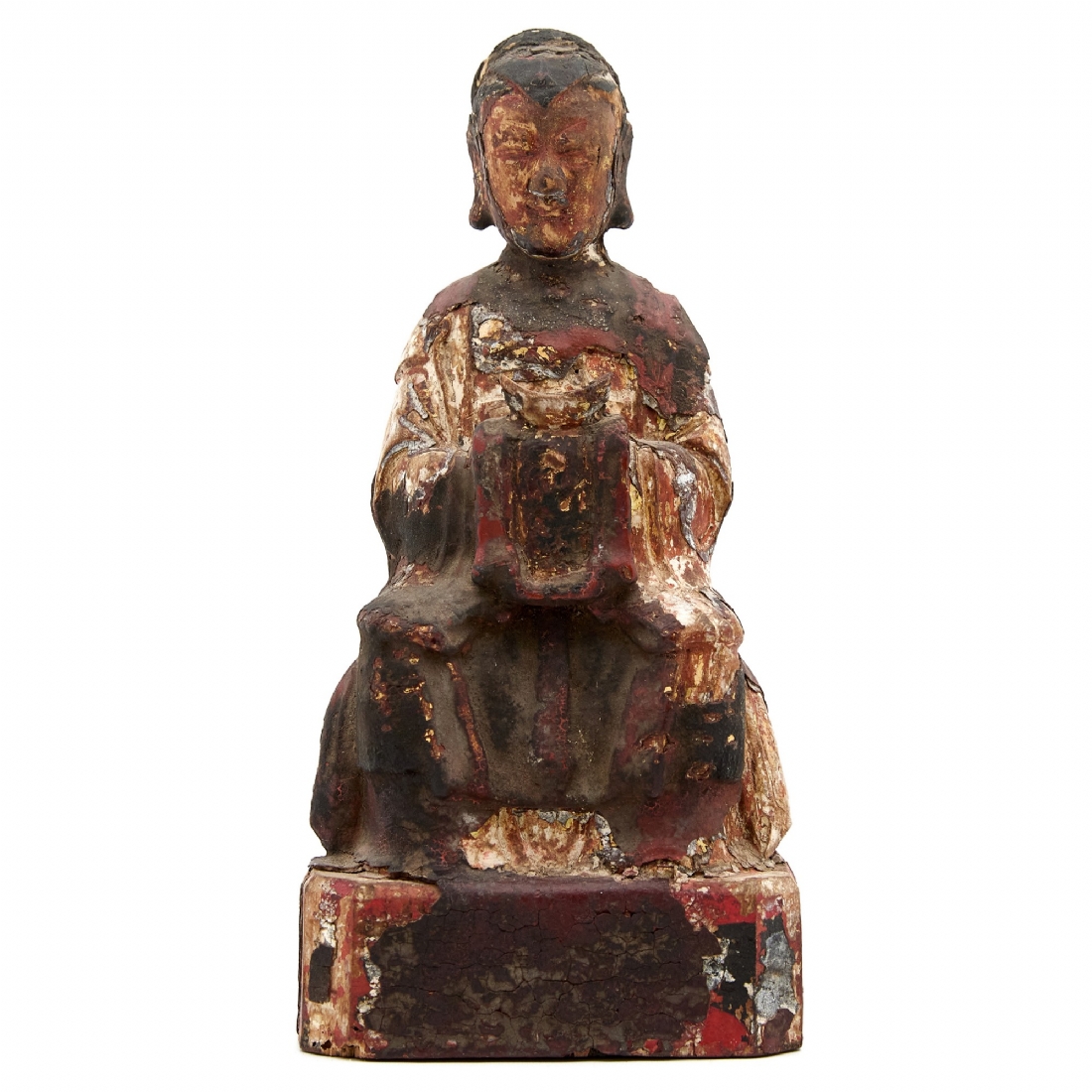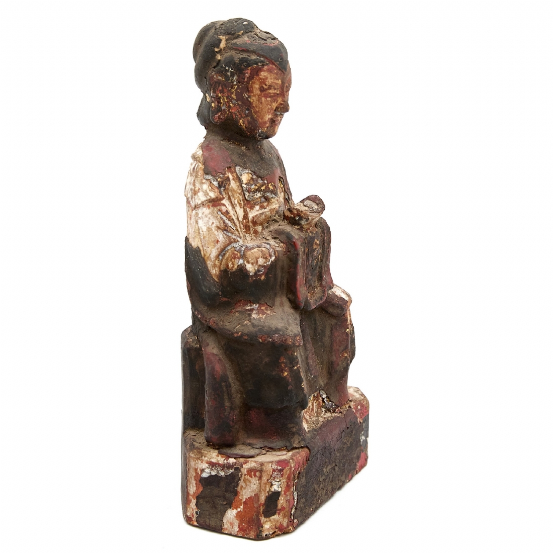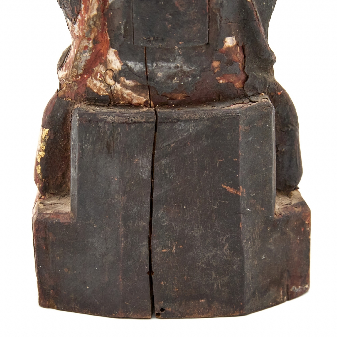פסל סיני עתיק מהמאה ה-18, עשוי עץ מגולף וצבוע, מצב בהתאם לגיל (מצולם)