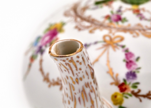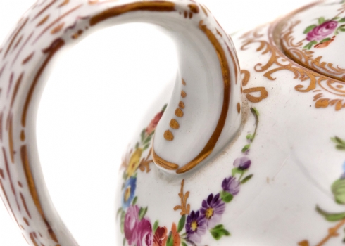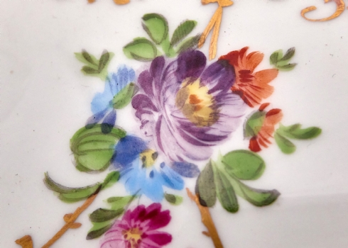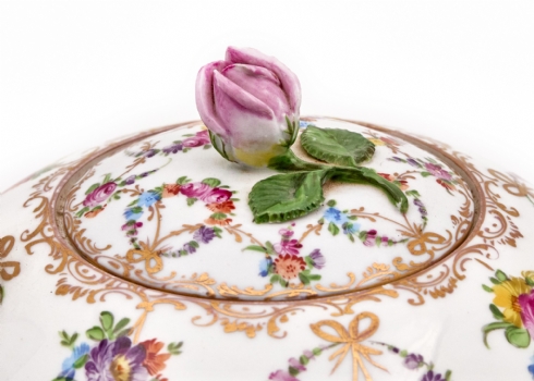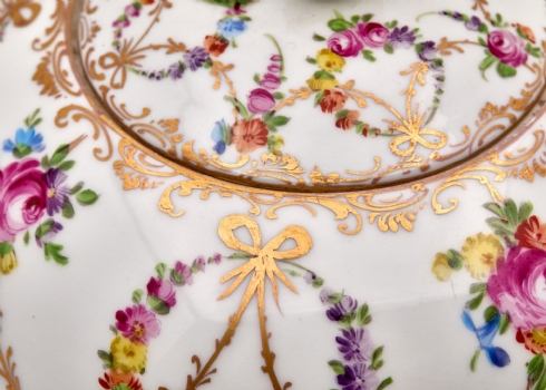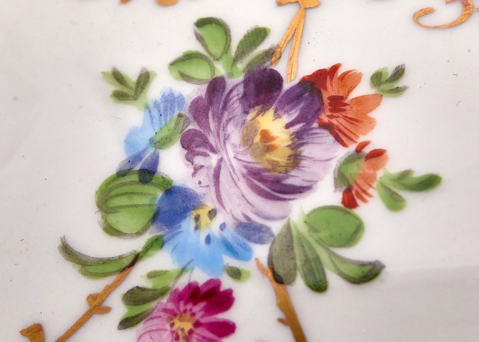 עשוי פורצלן מעוטר ציורי יד של פרחי גינה גרמנים באמייל ובזהב, חתום