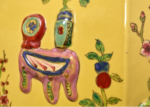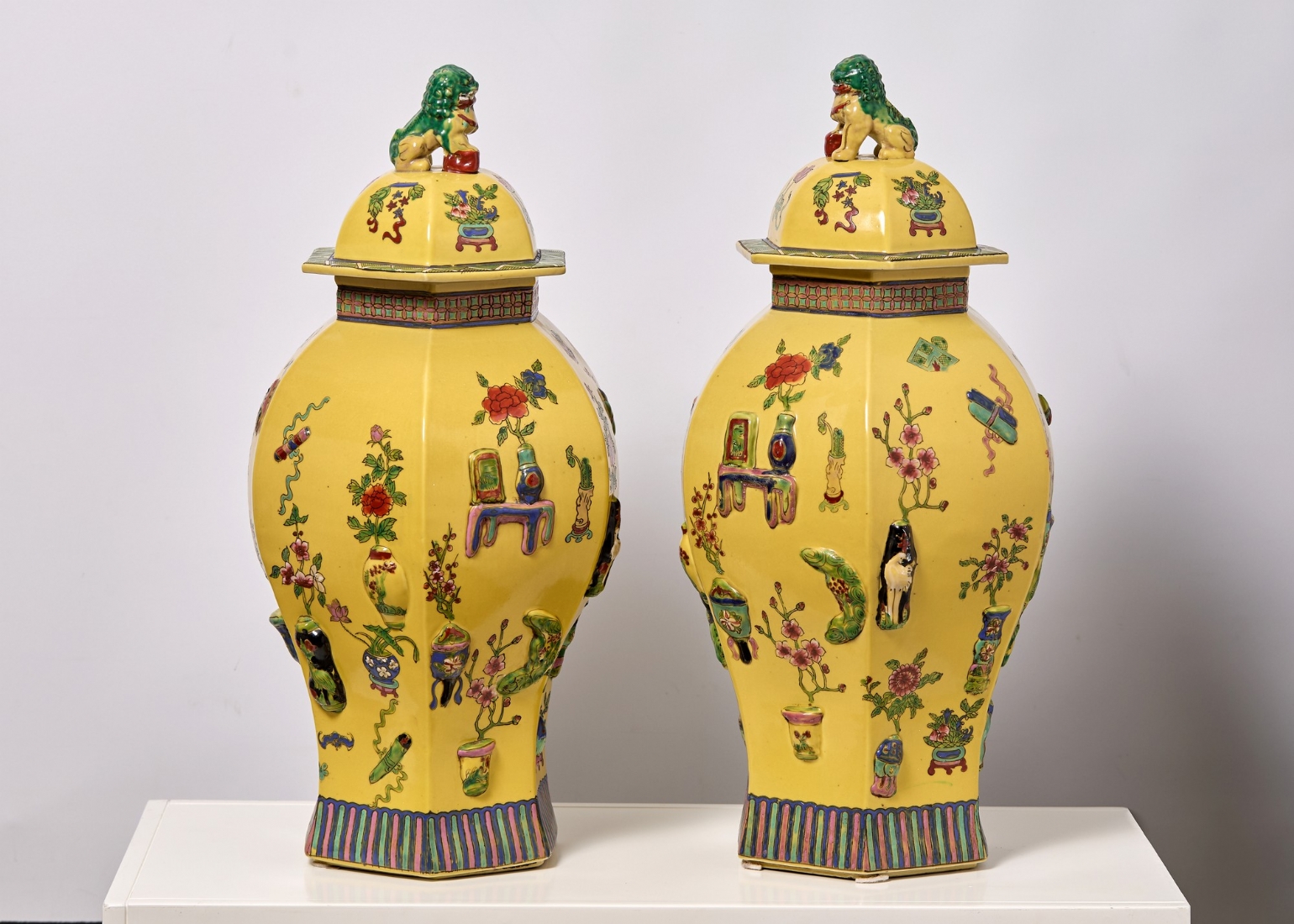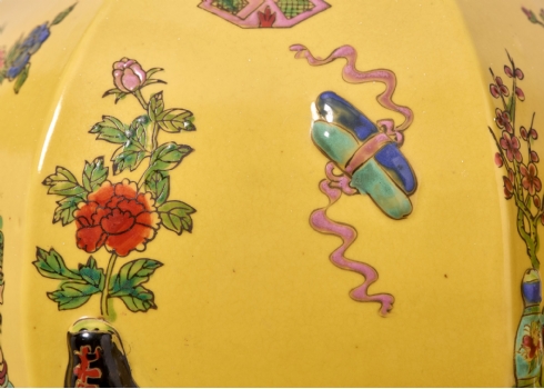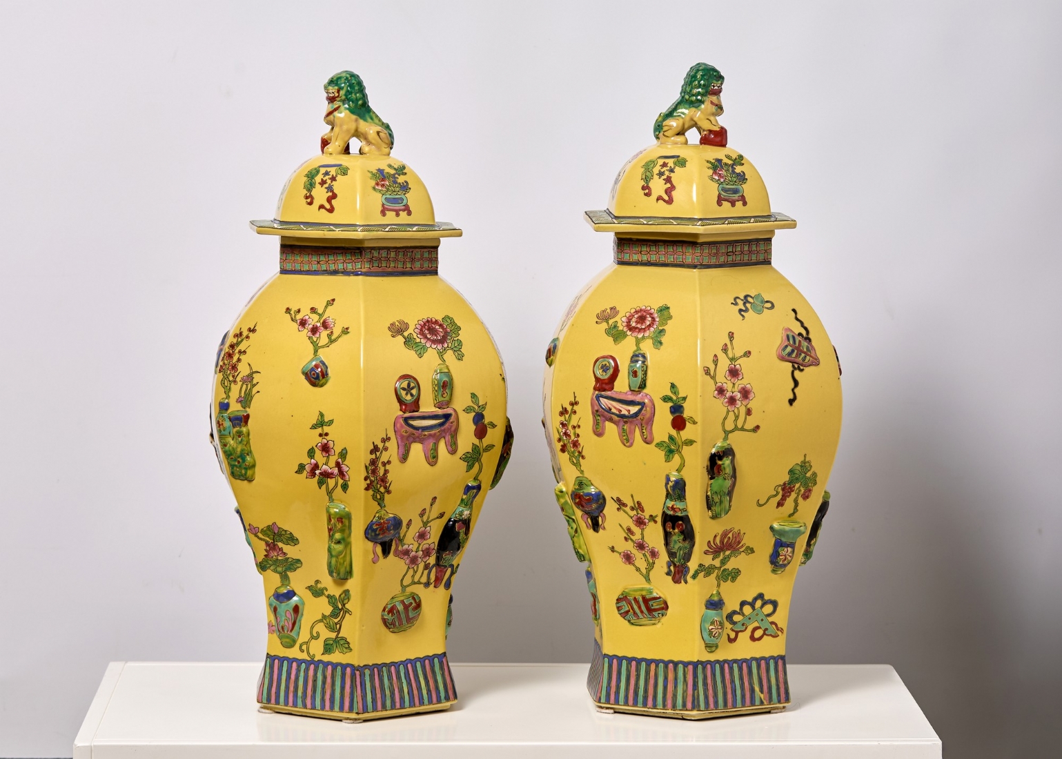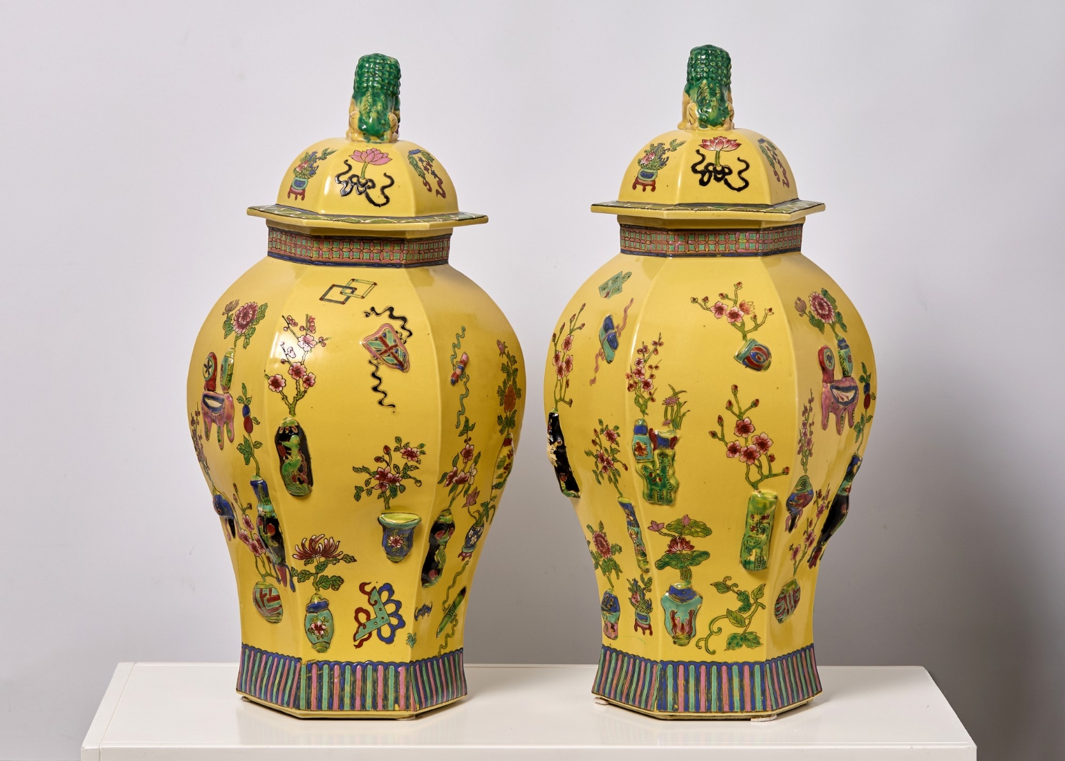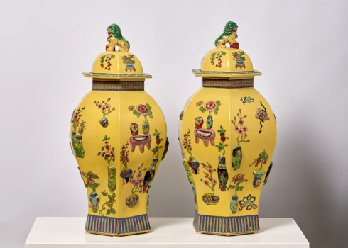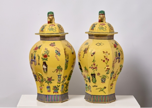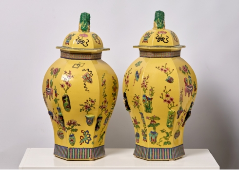 זוג אגרטלים סינים גדולים ומכסים תואמים, משפחה צהובה (Famille jaune)