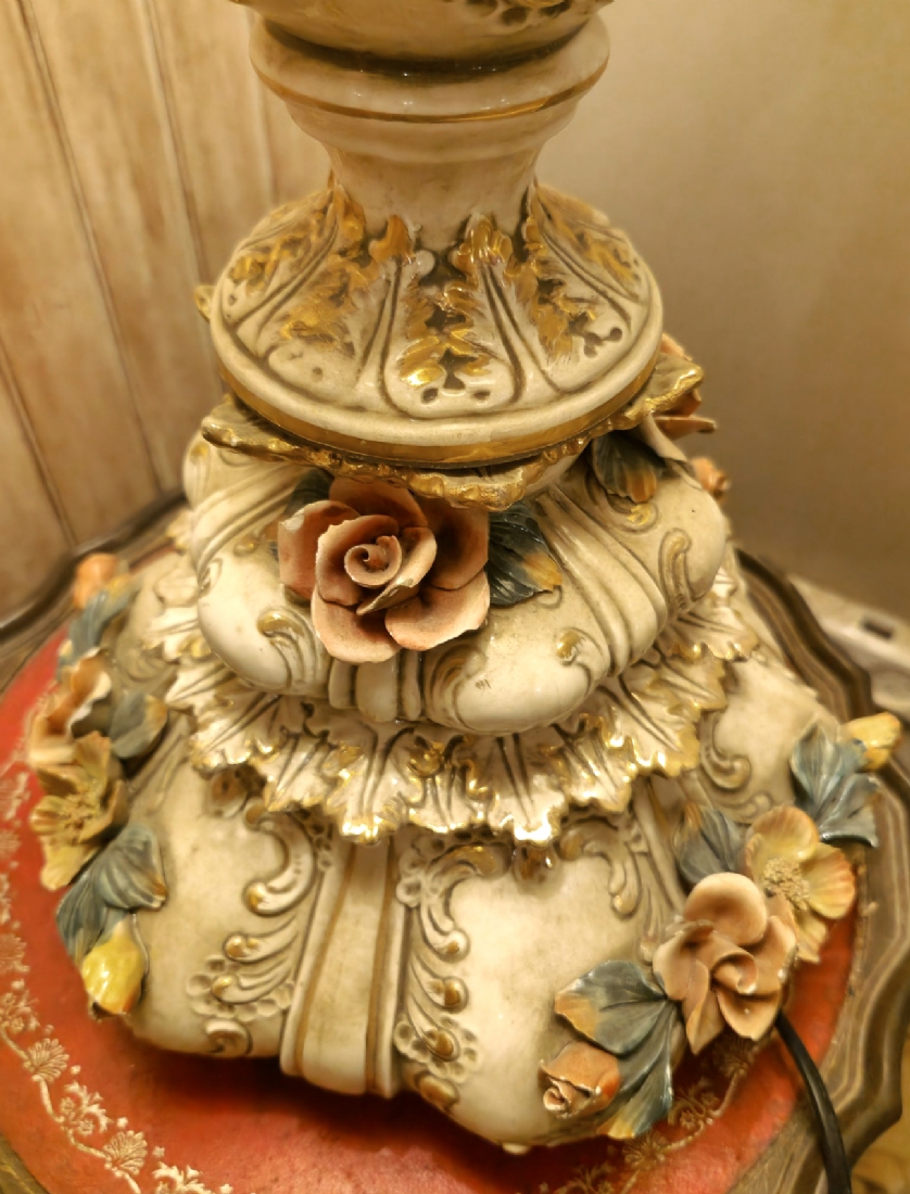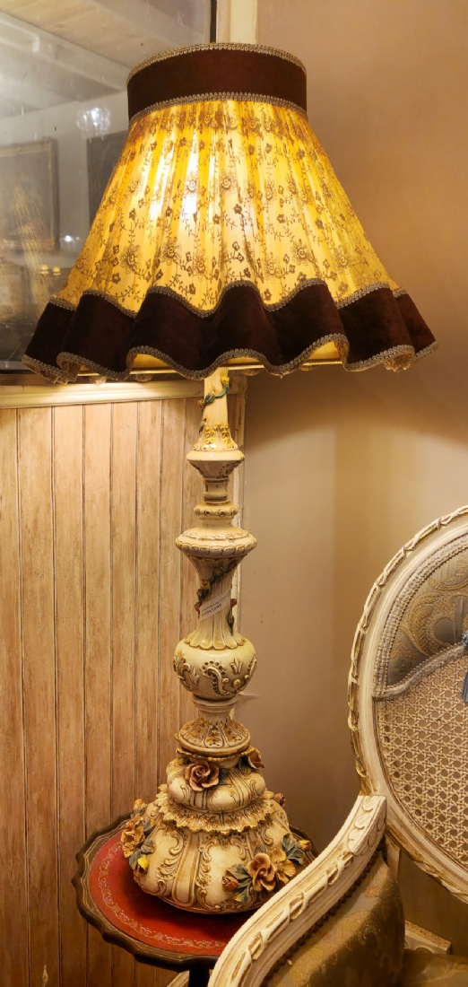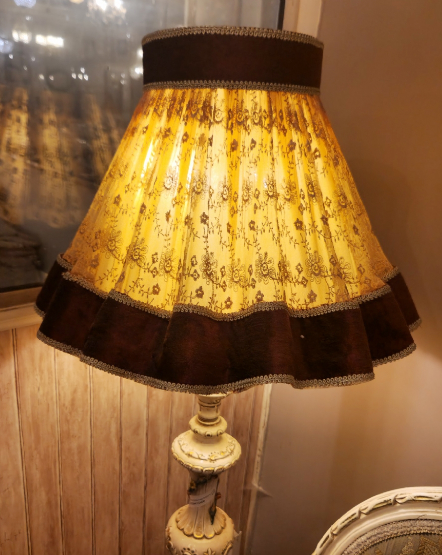 מנורה איטלקית עשויה פורצלן ואהיל בד