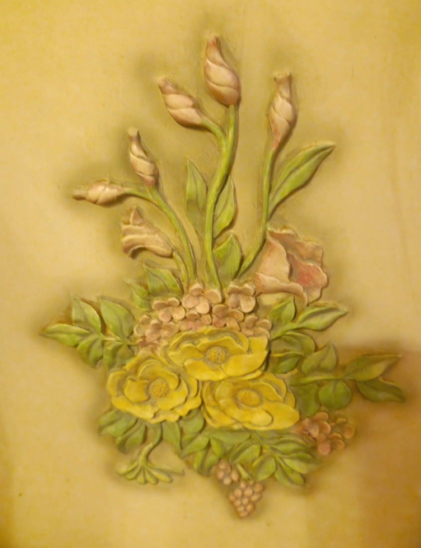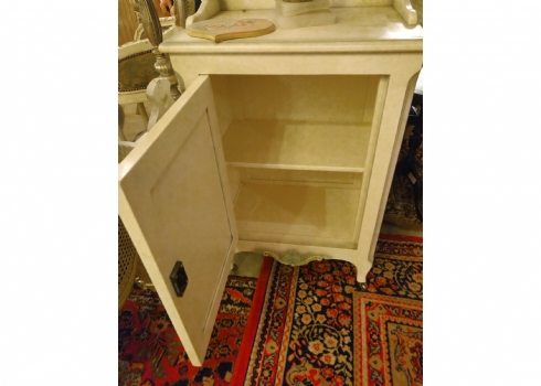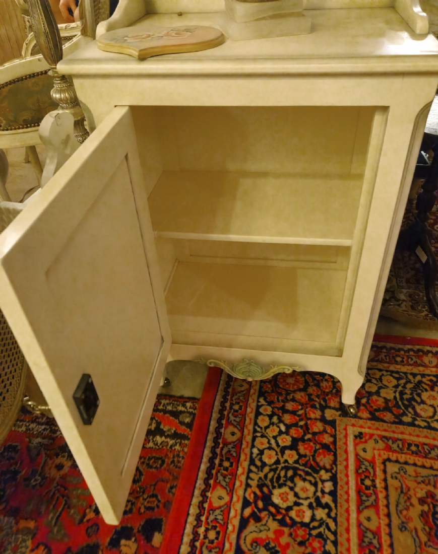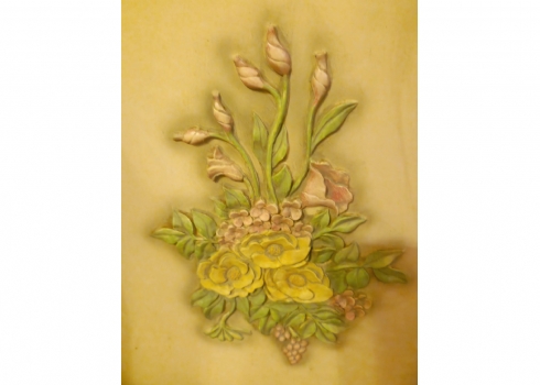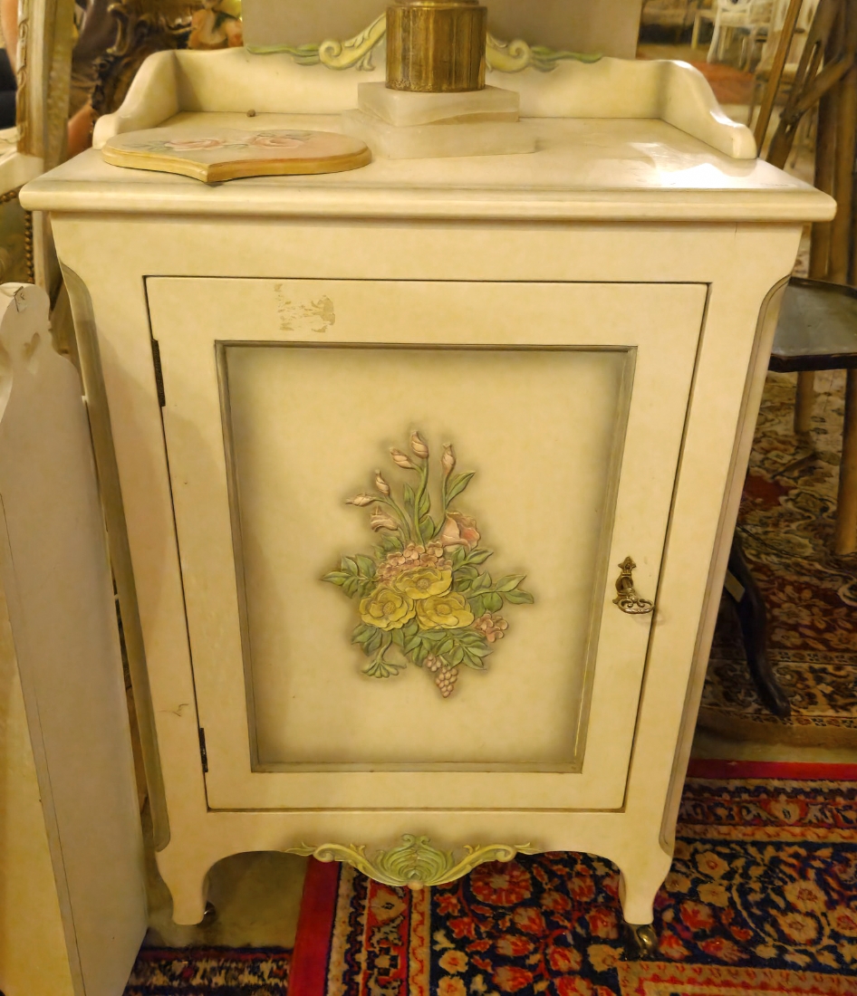 ארונית עץ בסגנון עתיק עם עיטורי פרחים על רקע בגוון שמנת