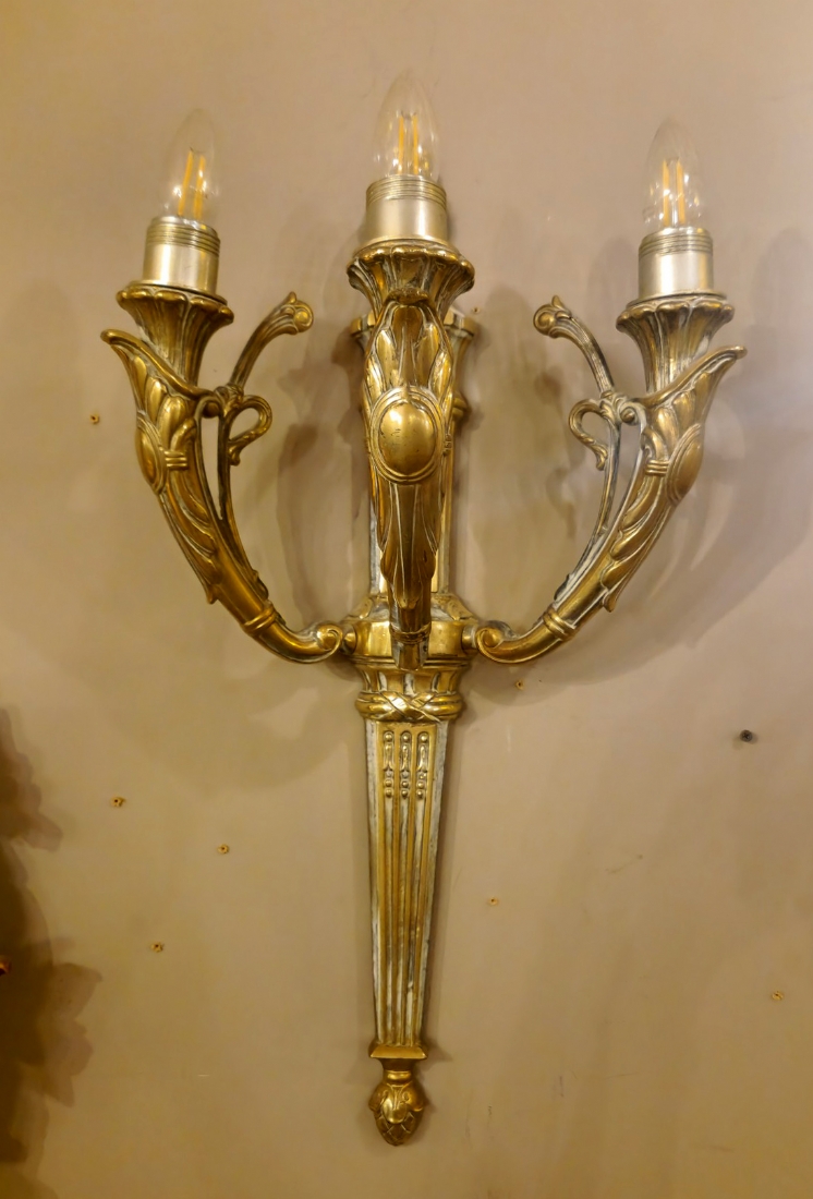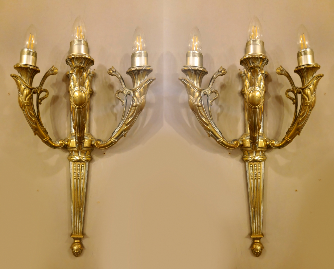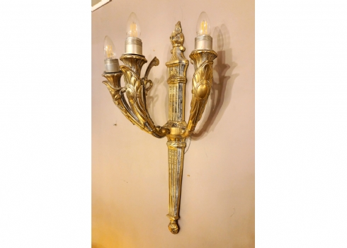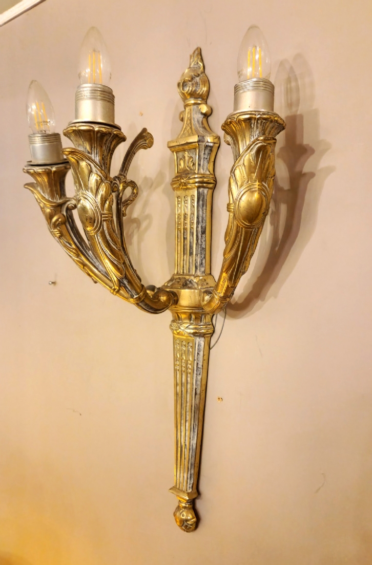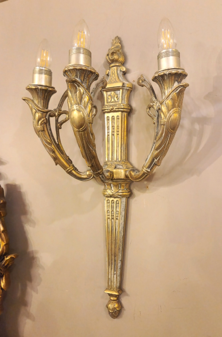 זוג מנורות קיר בסגנון צרפתי עתיק, עשויות מתכת