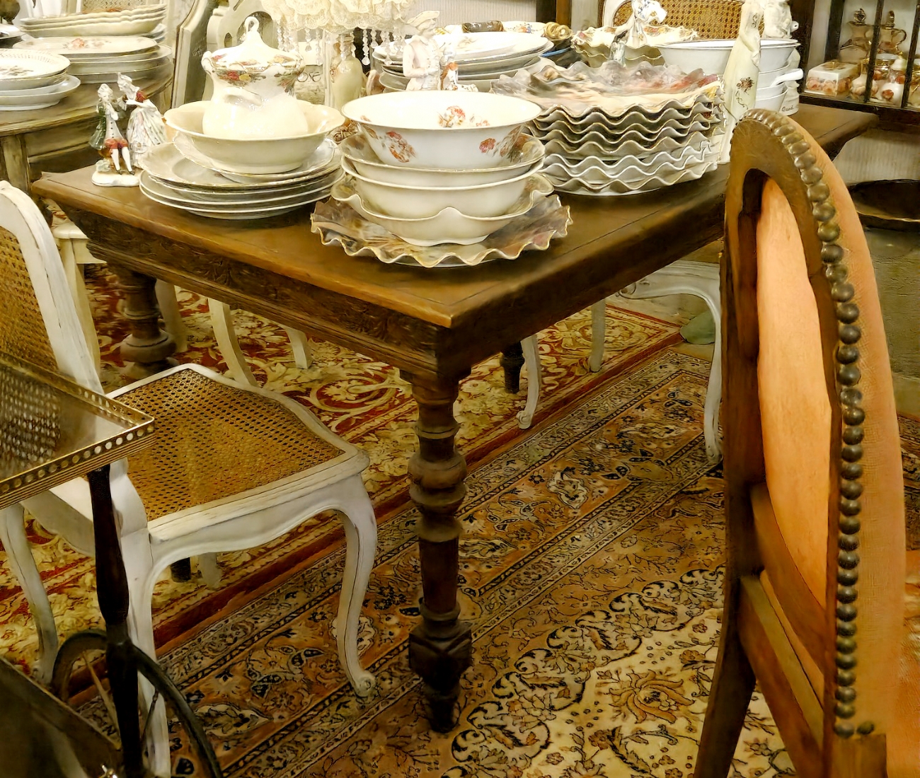 שולחן אוכל עתיק עשוי עץ מגולף