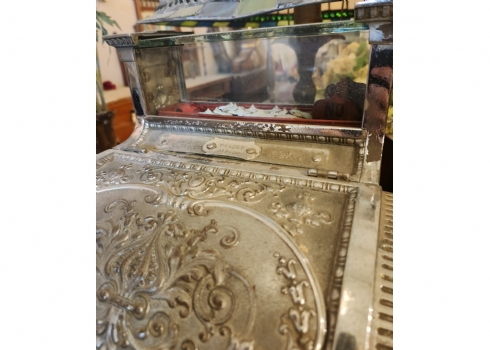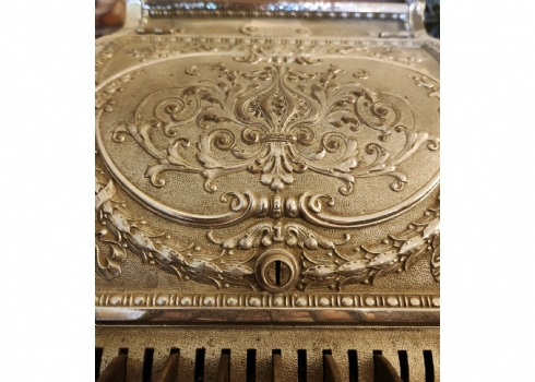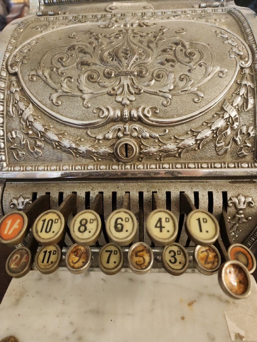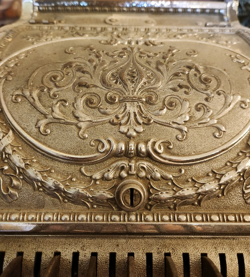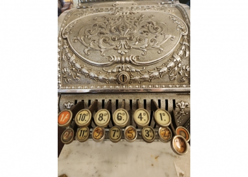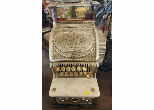 קופה רושמת אמריקאית עתיקה מהמאה ה19 עשויה ברונזה, זכוכית ומשטח שיש