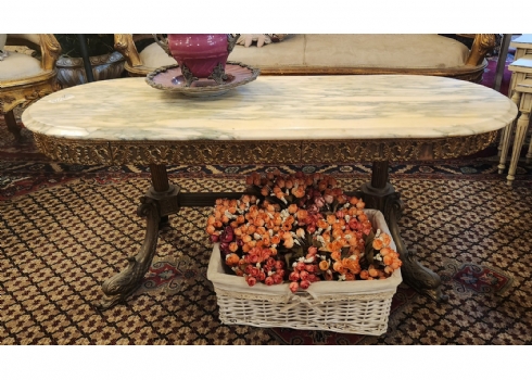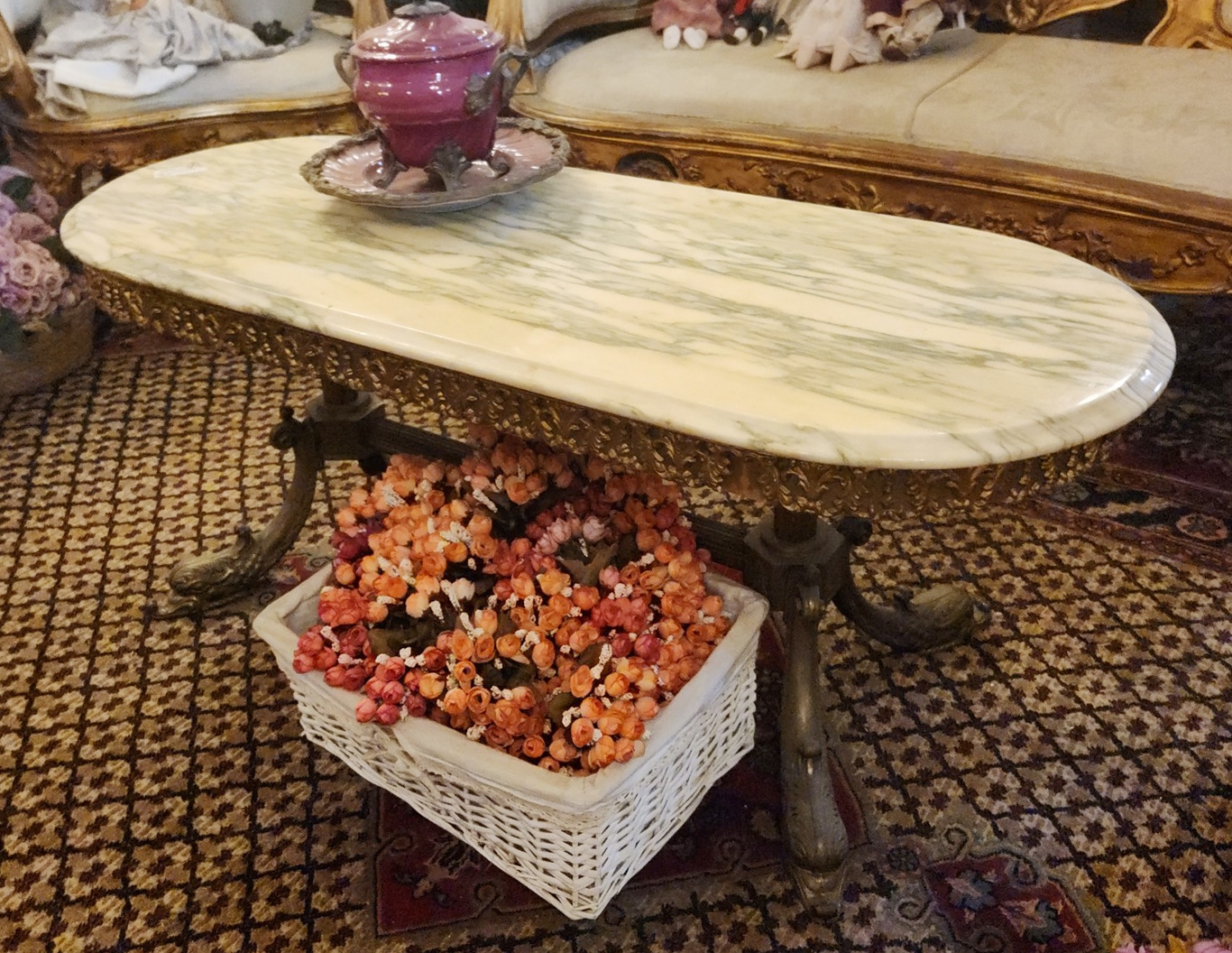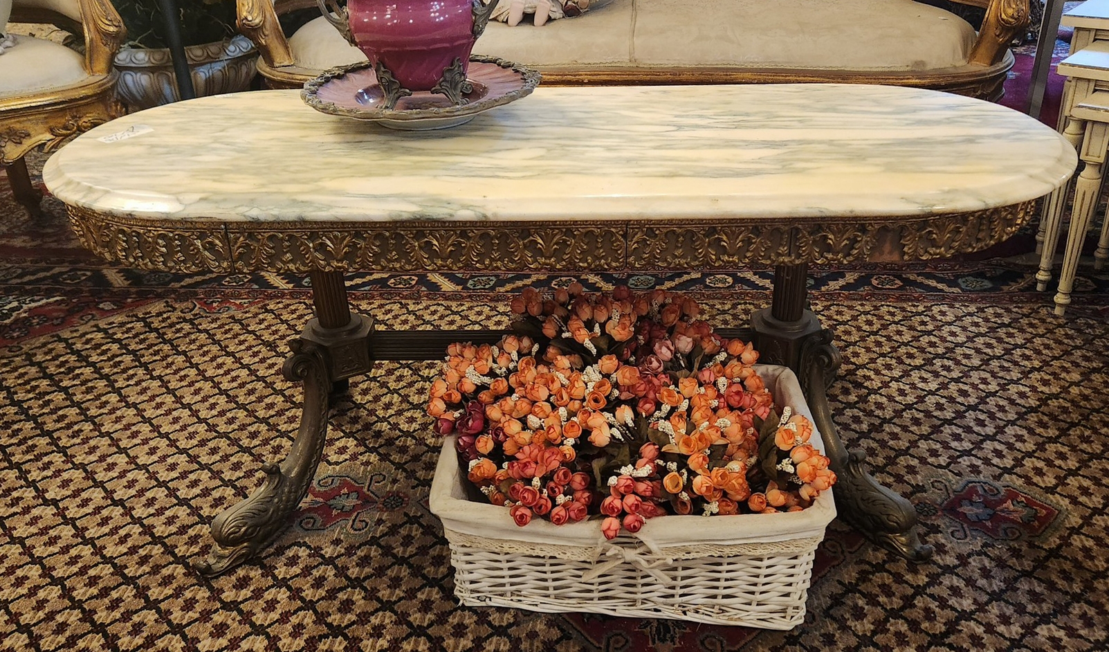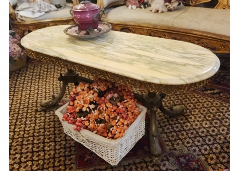 שולחן סלוני עשוי מתכת הרגליים בצורת דולפינים משטח עליון דמוי שיש