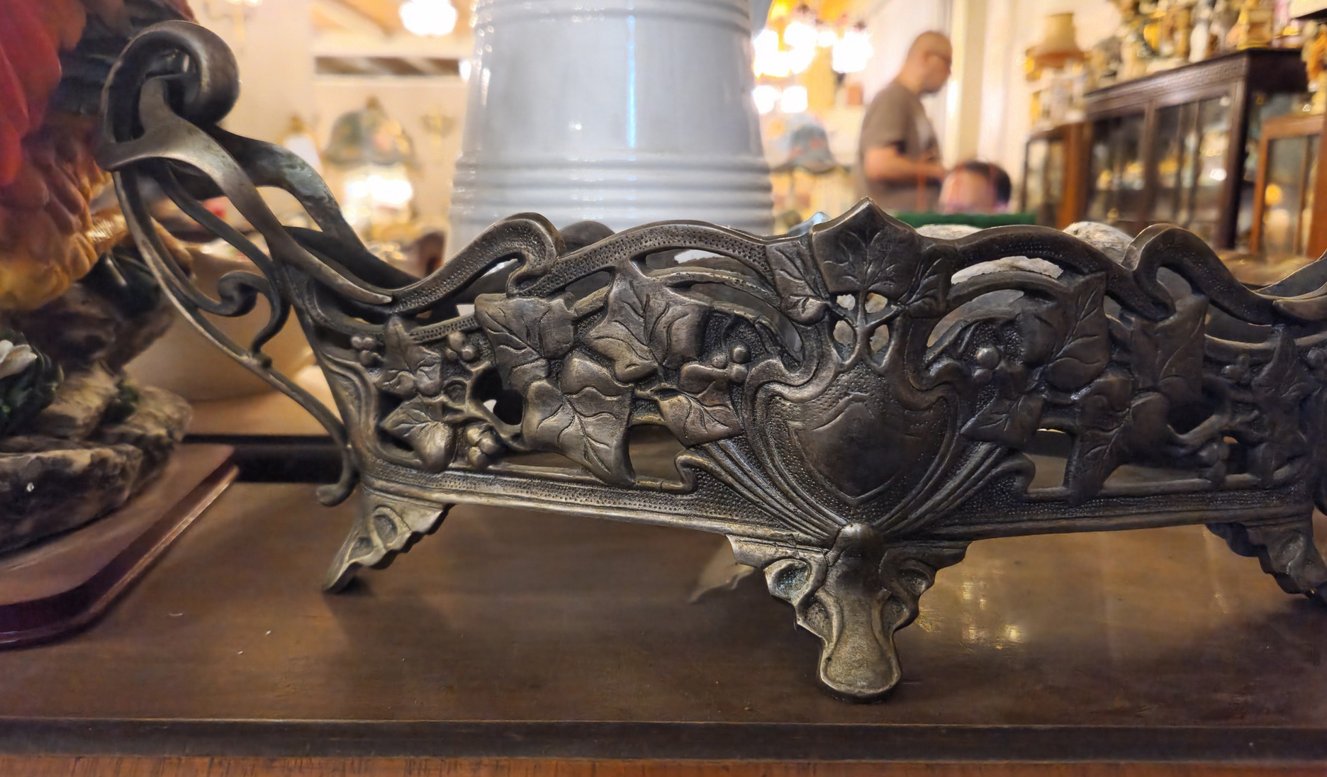 סנטרפיס בסגנון אר נובו עשוי פיוטר מעוטר בדגם עלי קיסוס