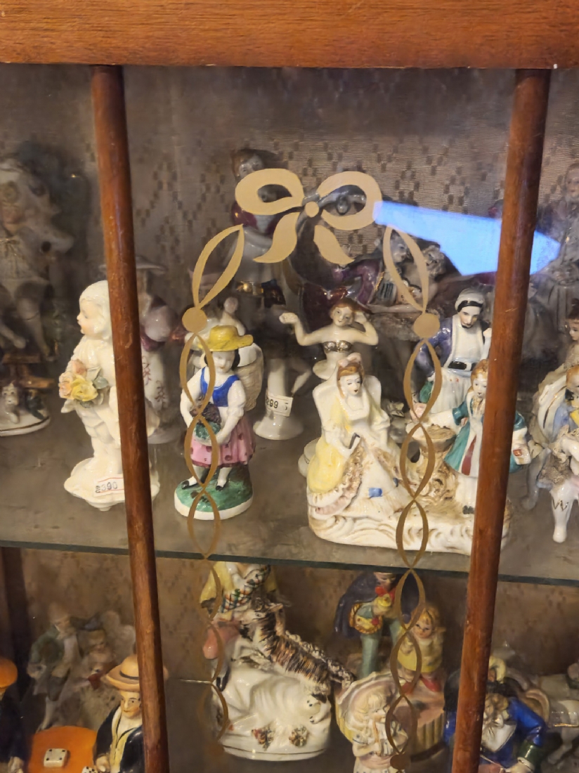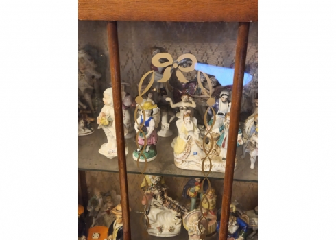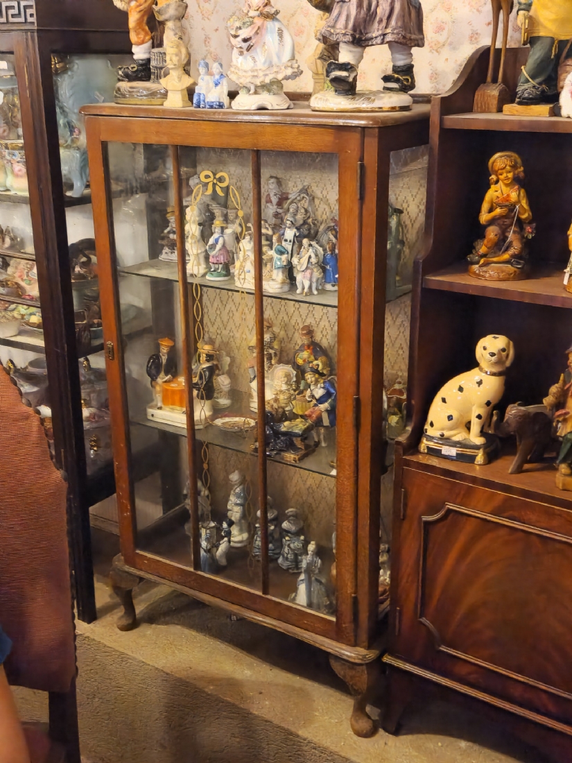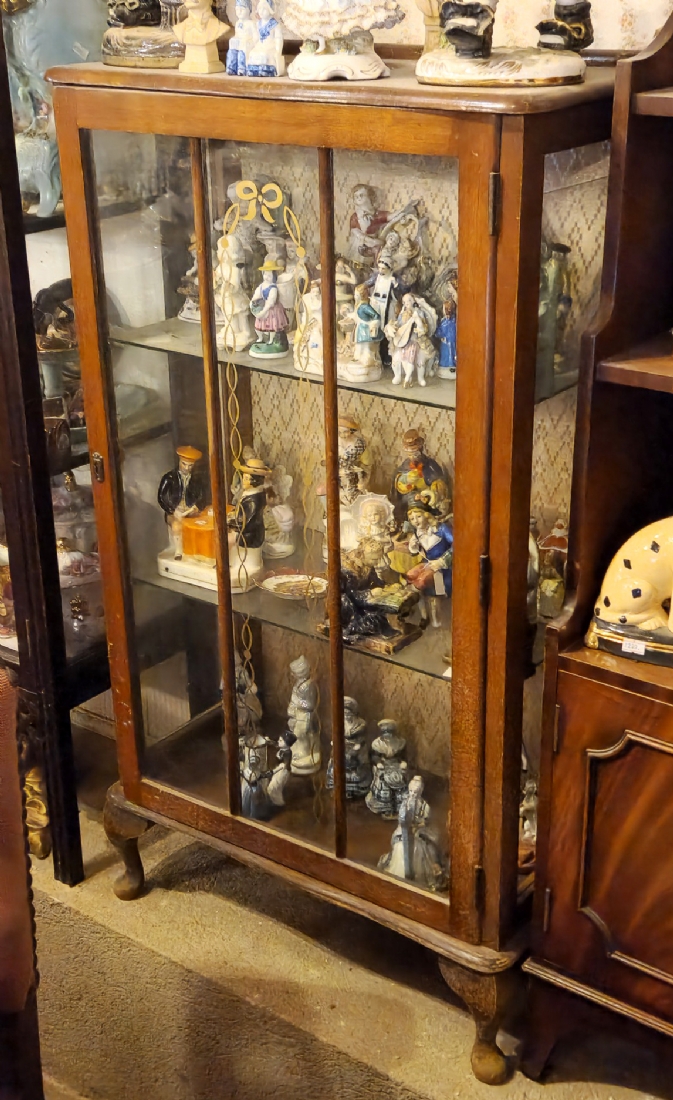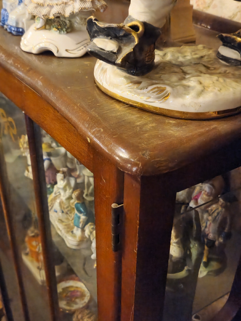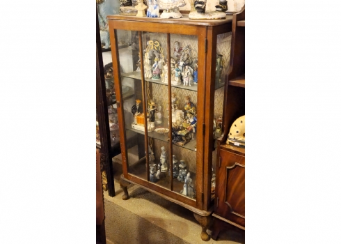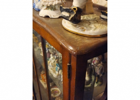 וטרינה עתיקה קטנה עשויה עץ ומדפי זכוכית
