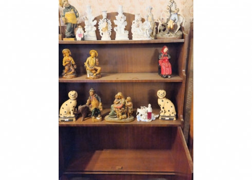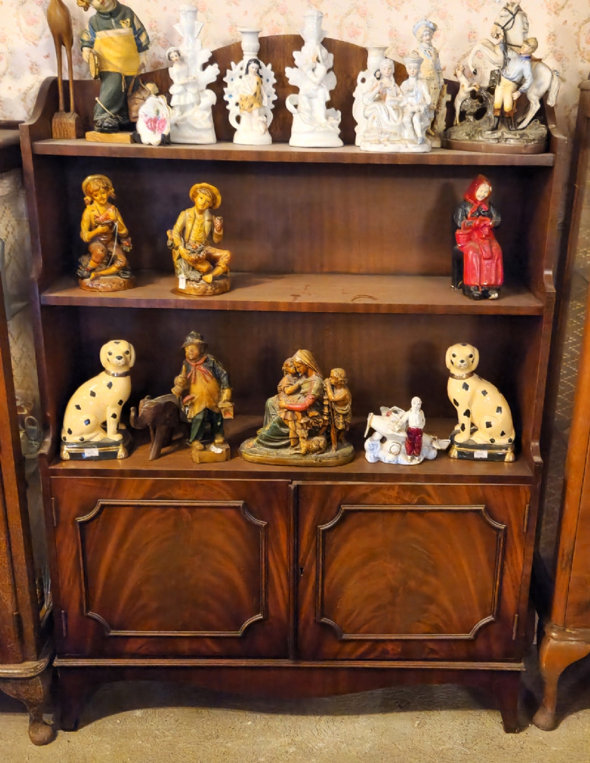 רהיט עתיק עשוי עץ, בחלקו התחתון זוג דלתות ושלושה מדפי תצוגה