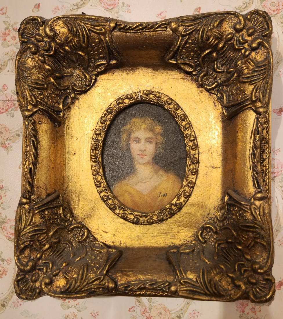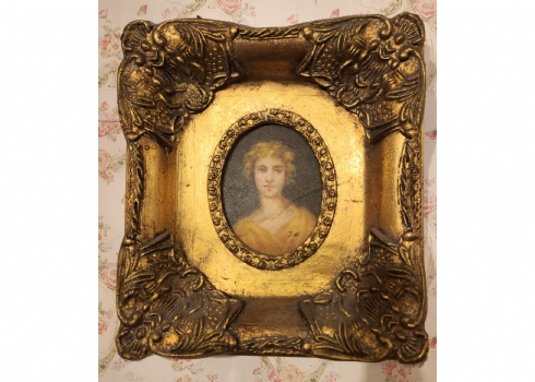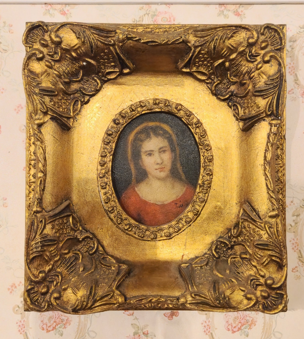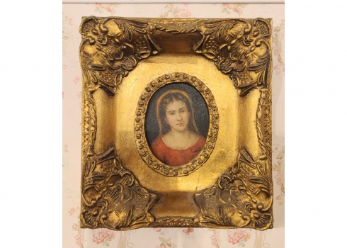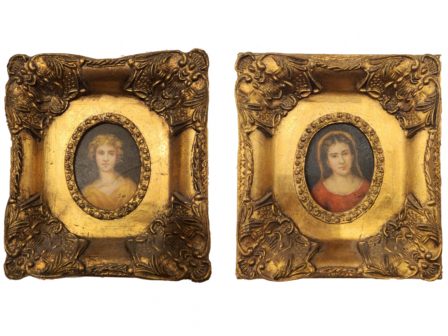 זוג תמונות בסגנון עתיק שמן על לוח נתונות במסגרות מוזהבות