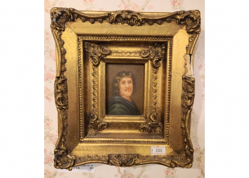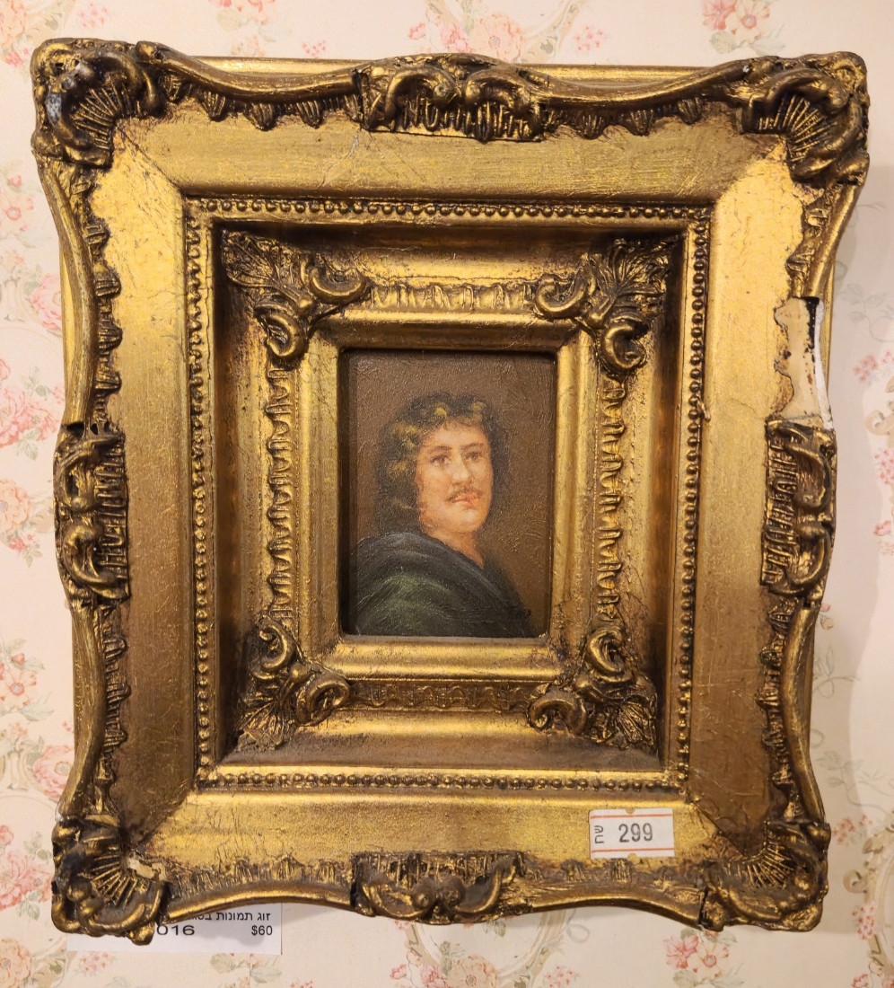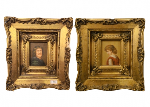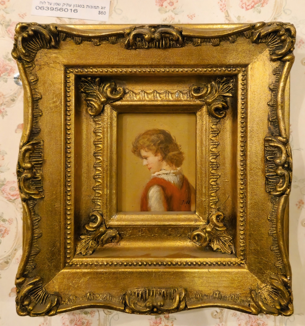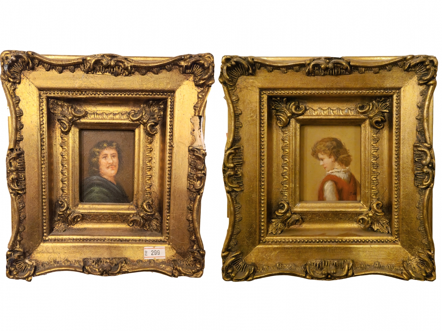 זוג תמונות בסגנון עתיק שמן על לוח נתונות במסגרות מוזהבות