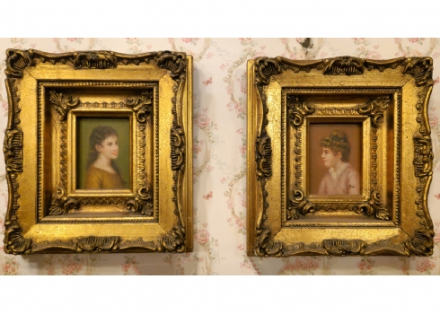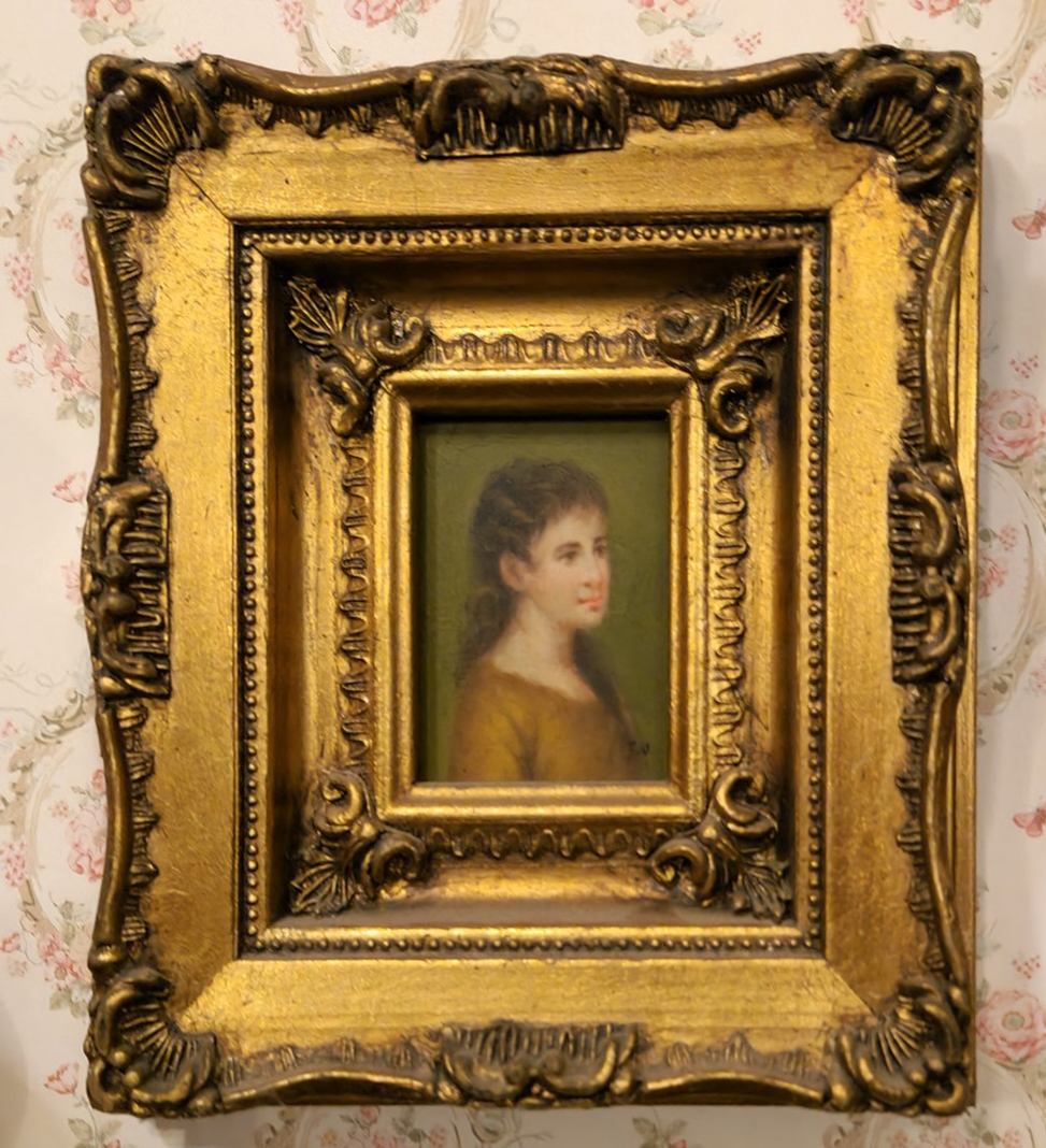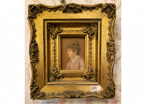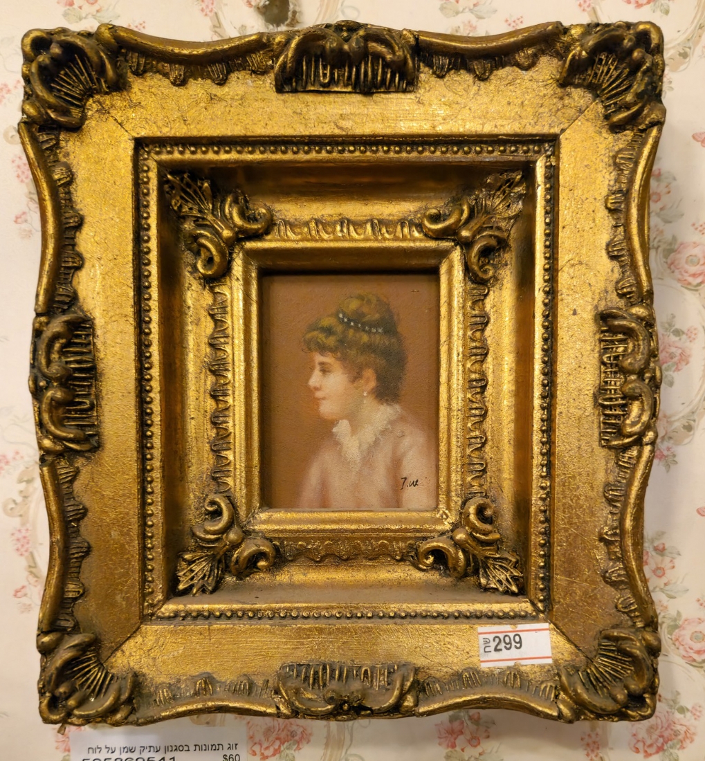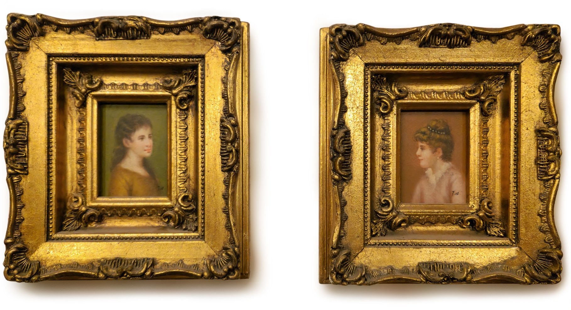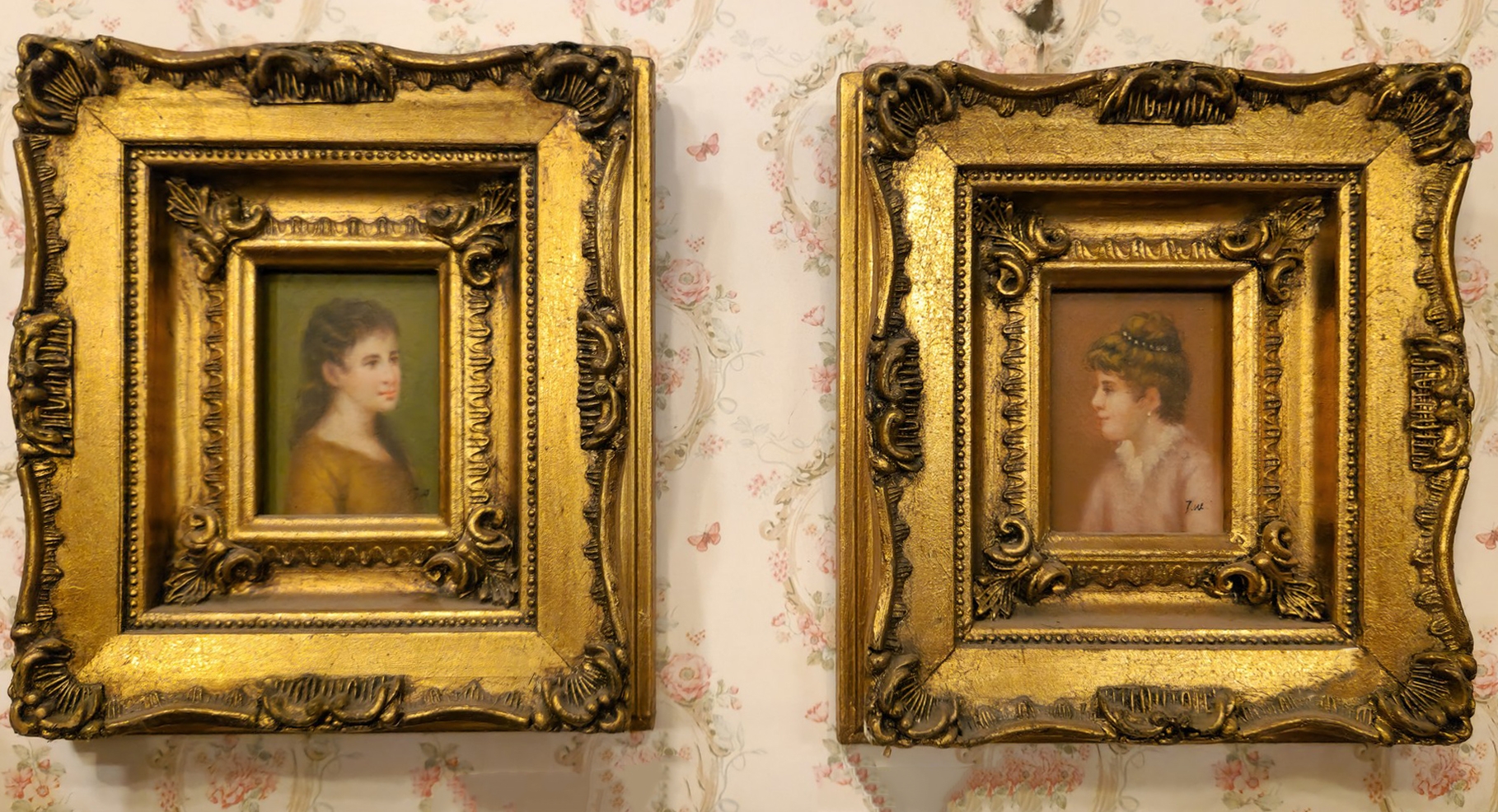 זוג תמונות בסגנון עתיק שמן על לוח נתונות במסגרות מוזהבות