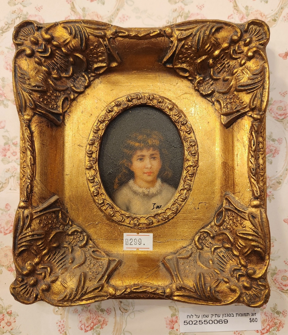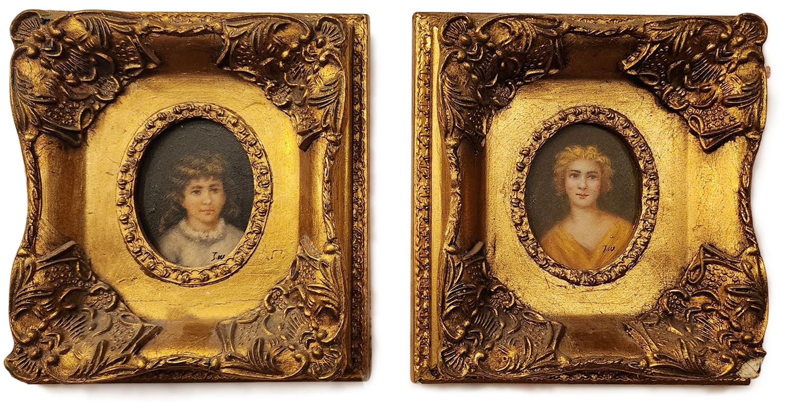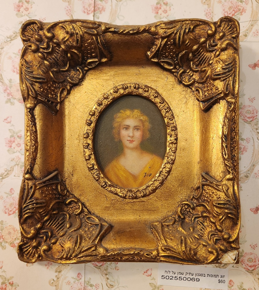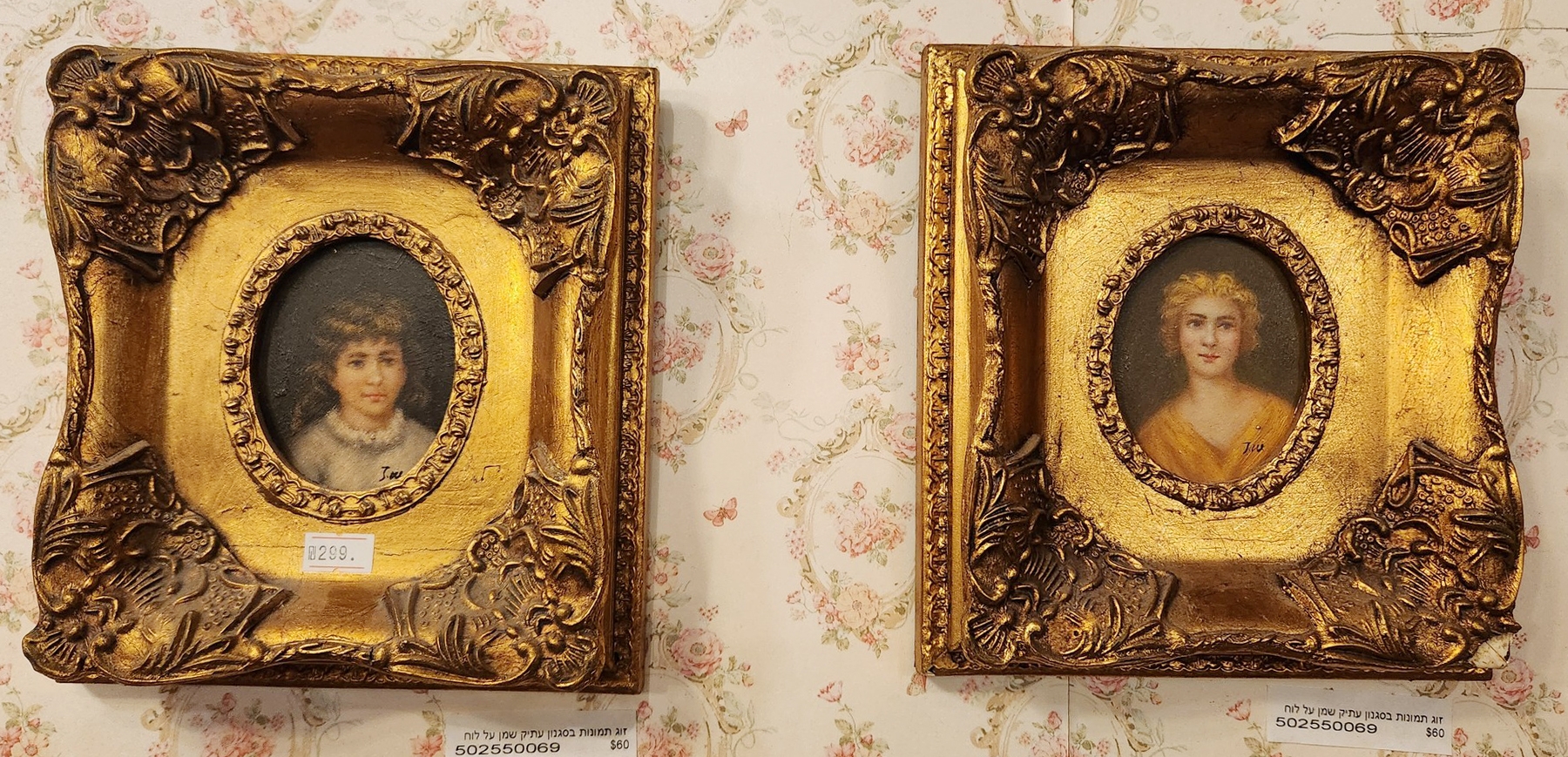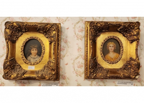 זוג תמונות בסגנון עתיק שמן על לוח נתונות במסגרות מוזהבות