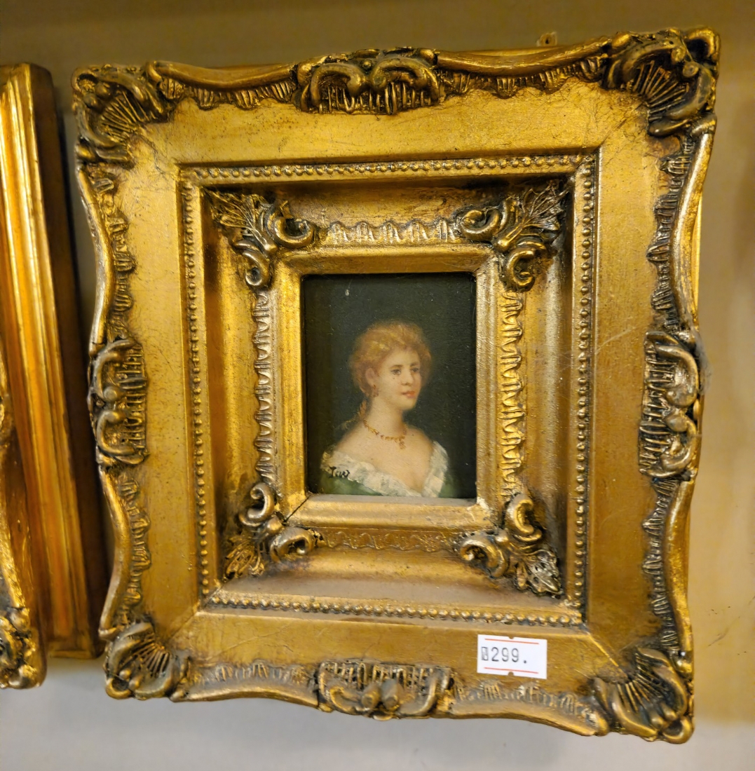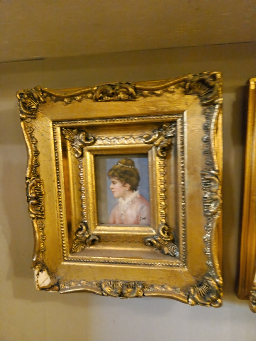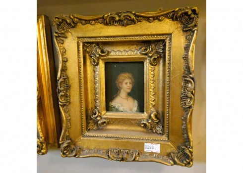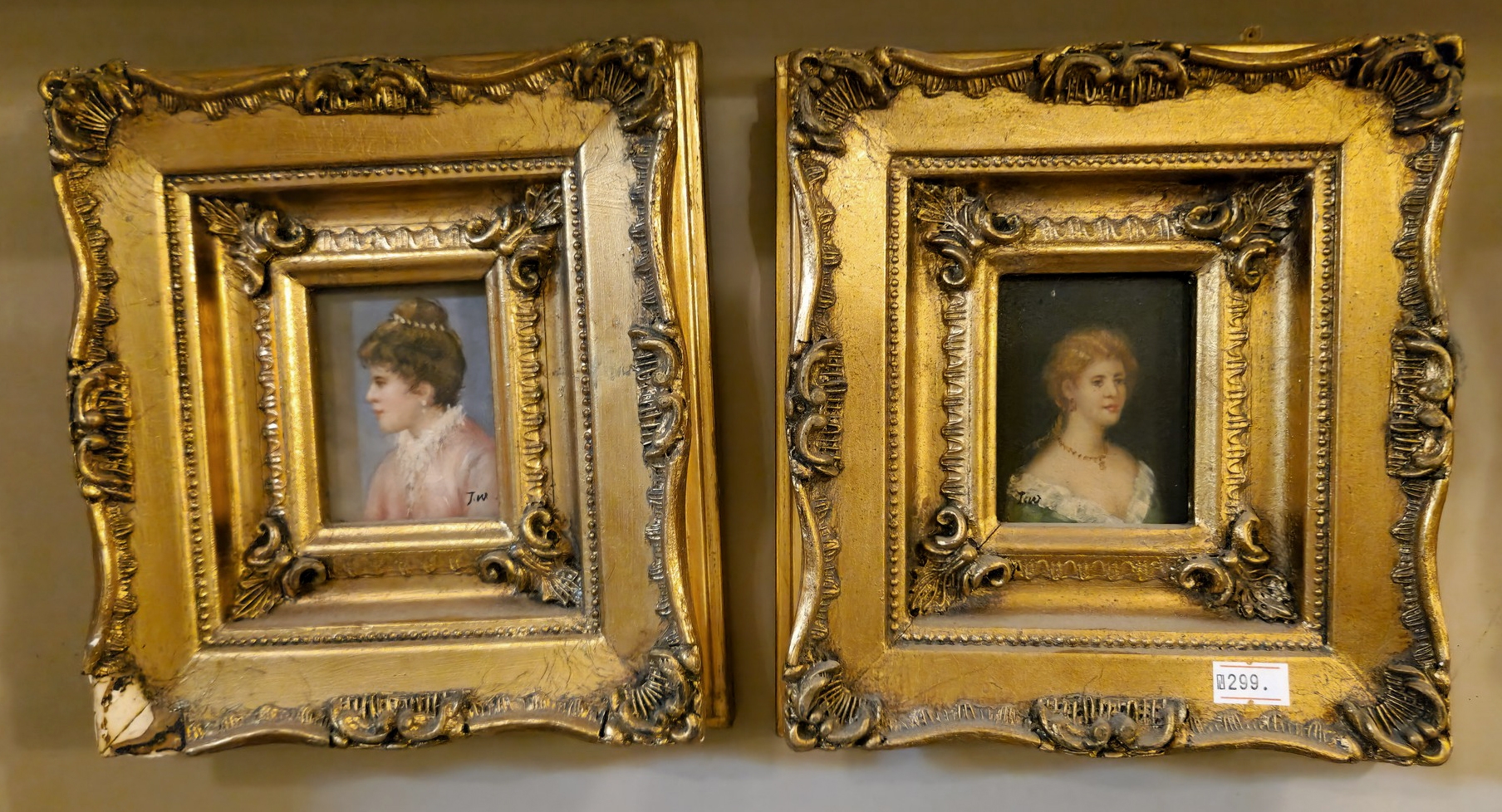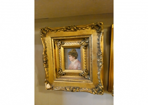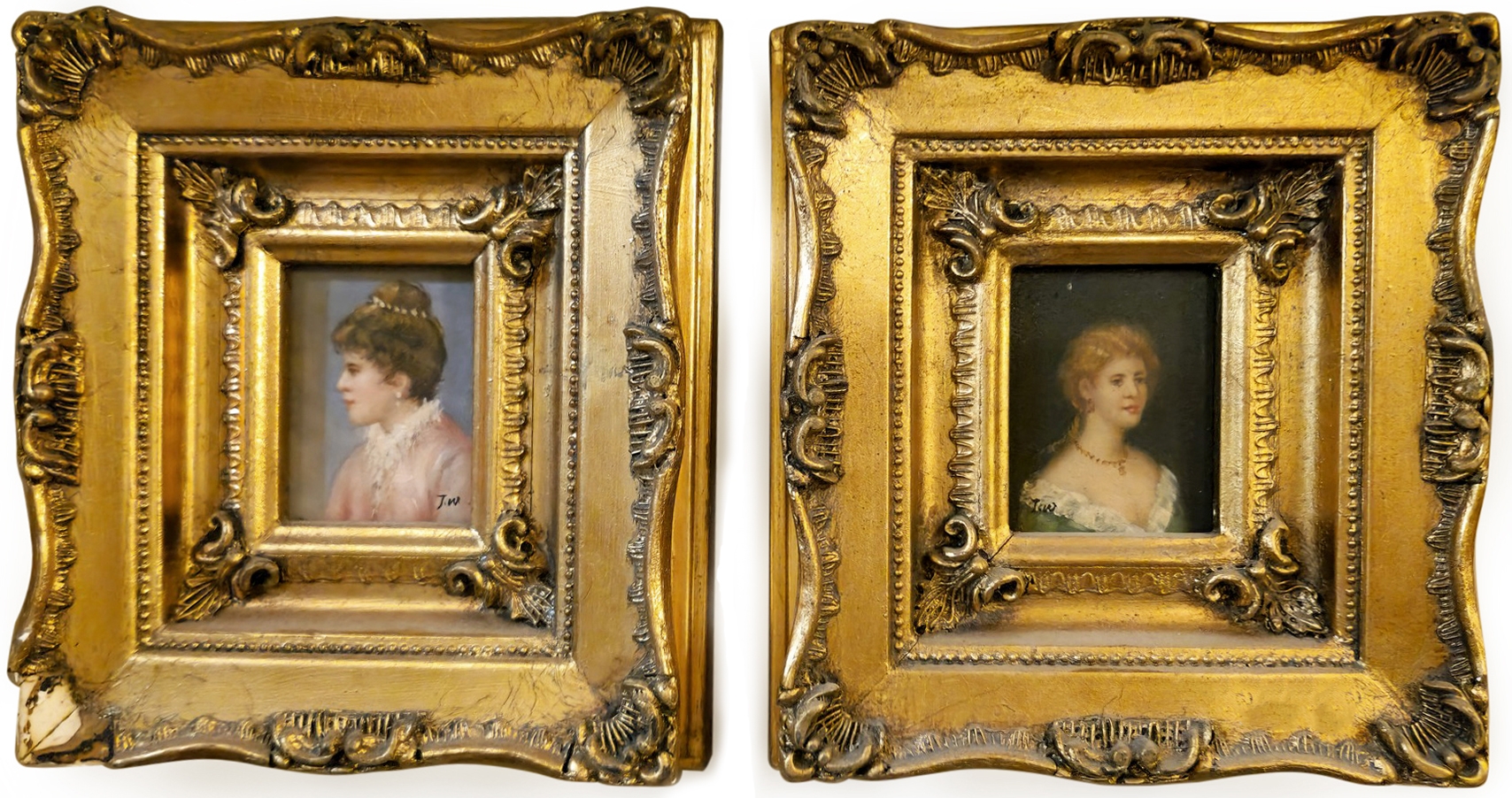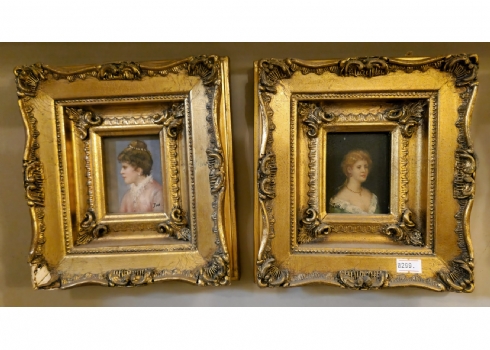 זוג תמונות בסגנון עתיק שמן על לוח נתונות במסגרות מוזהבות