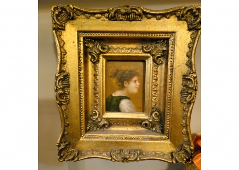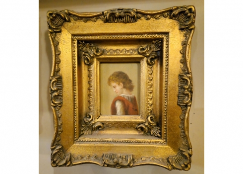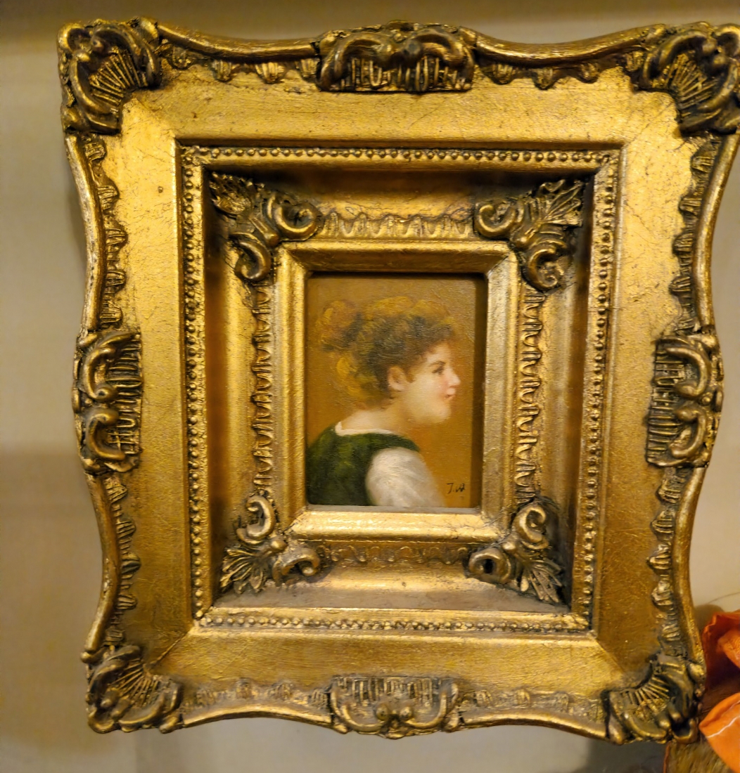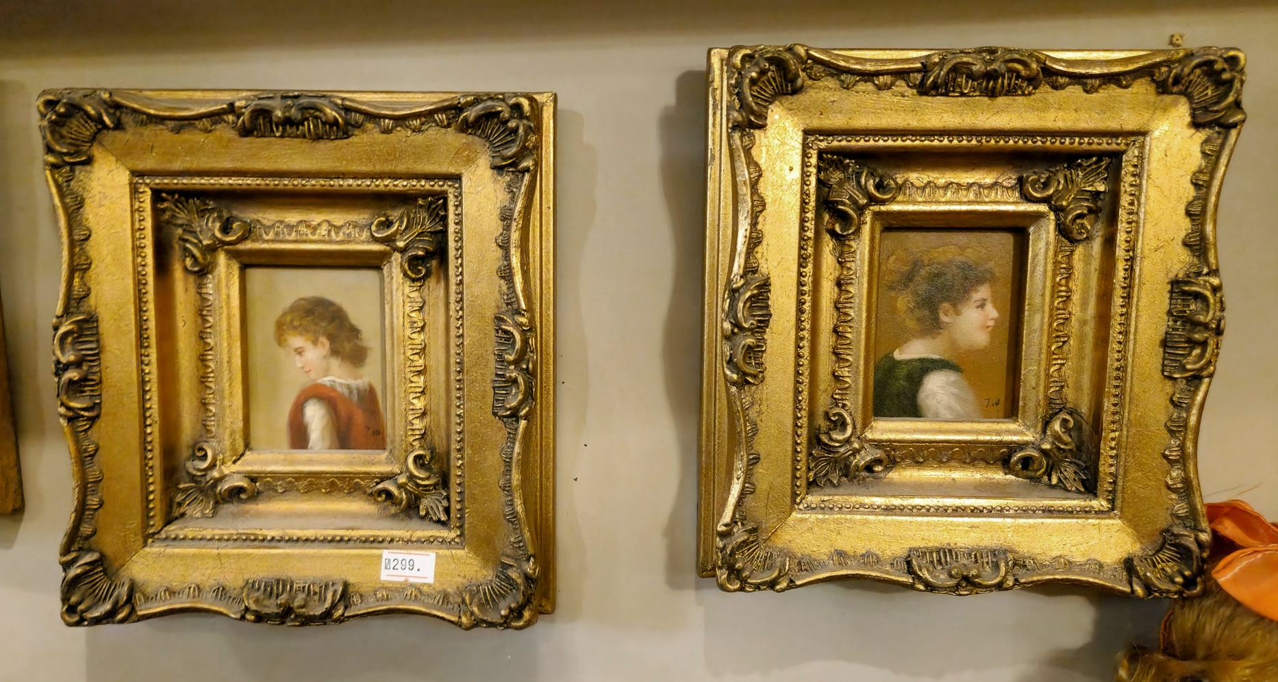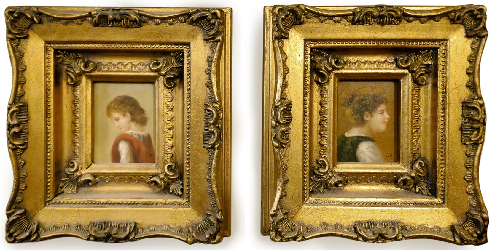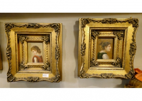 זוג תמונות בסגנון עתיק שמן על לוח נתונות במסגרות מוזהבות
