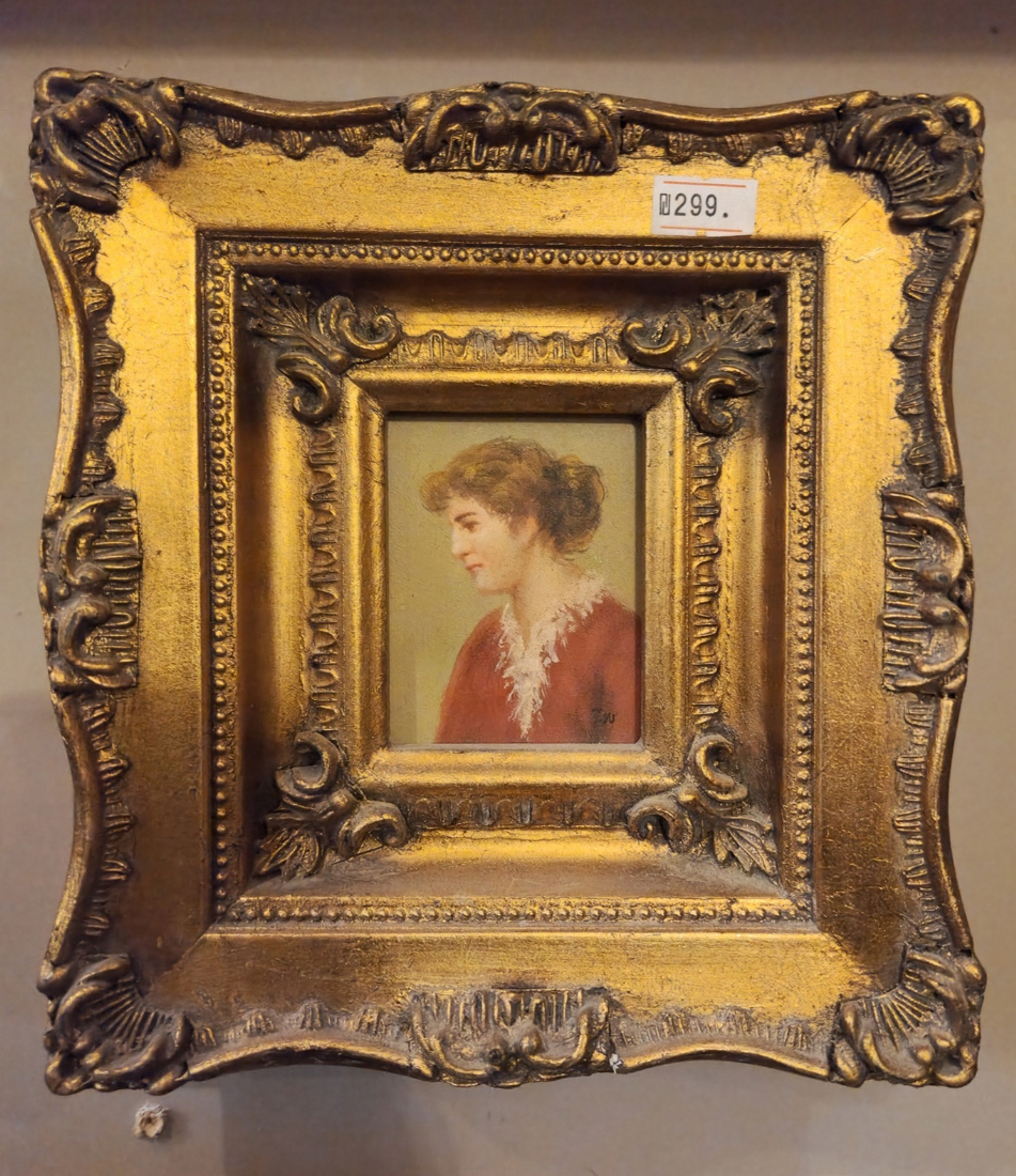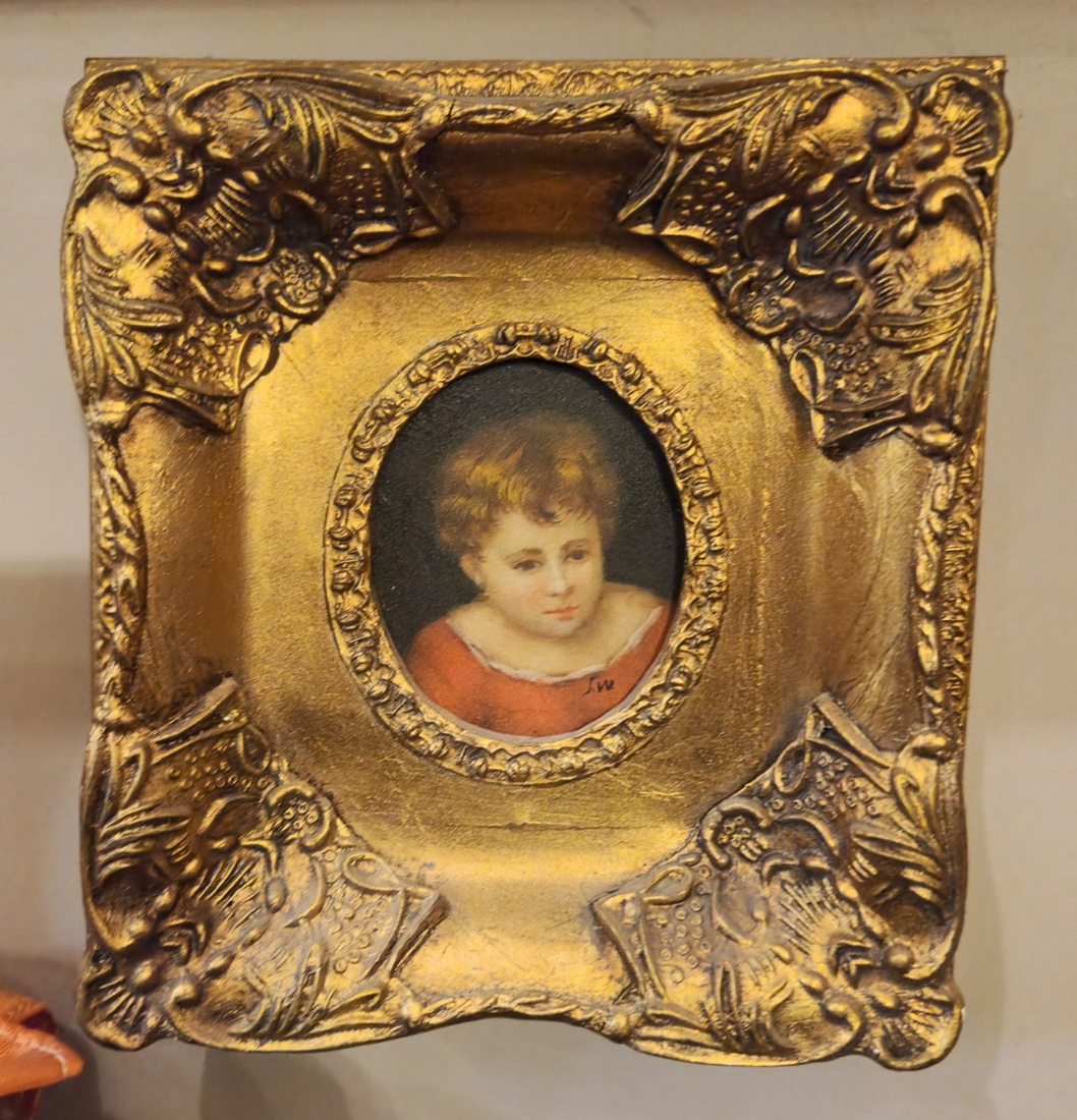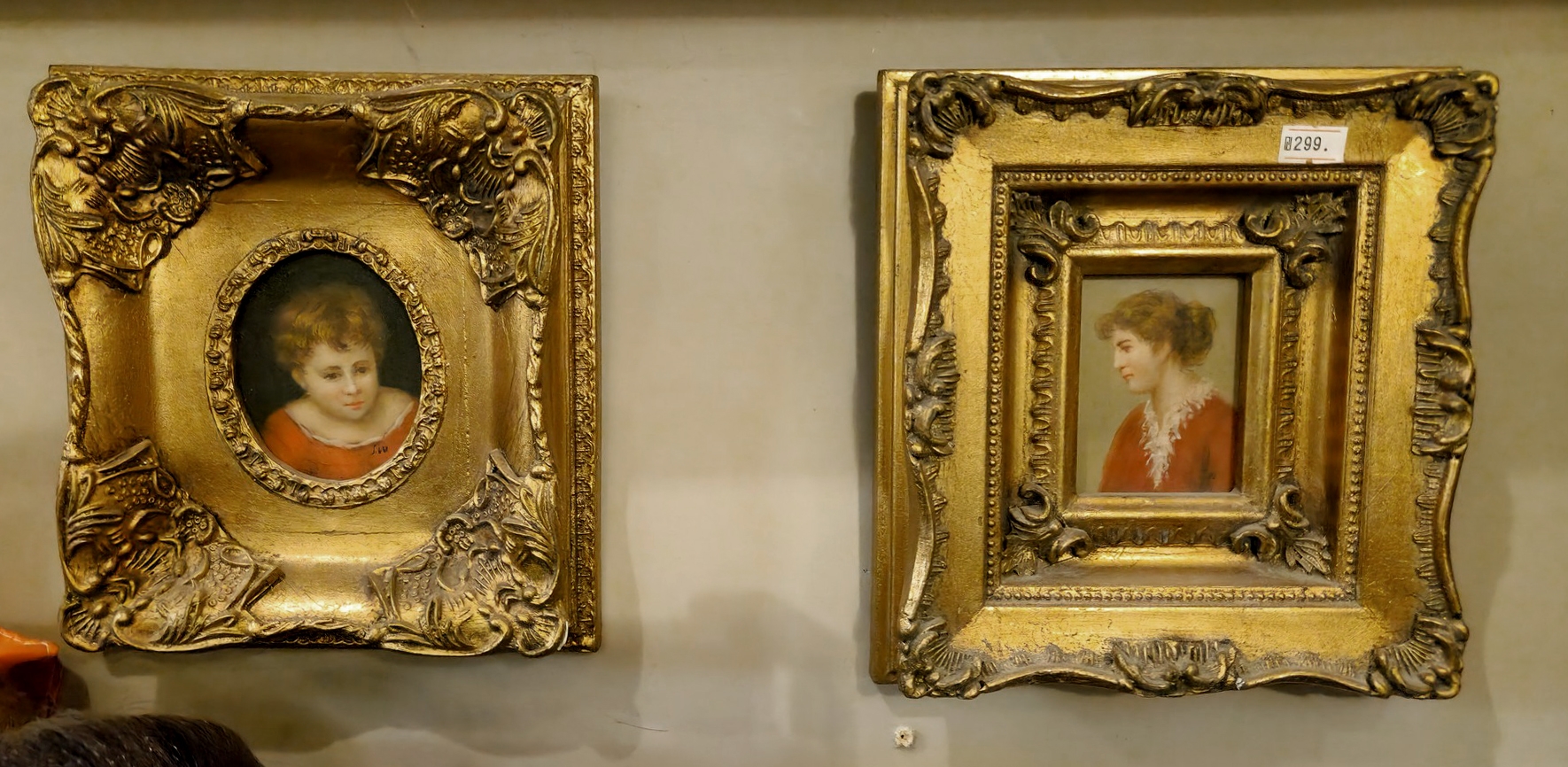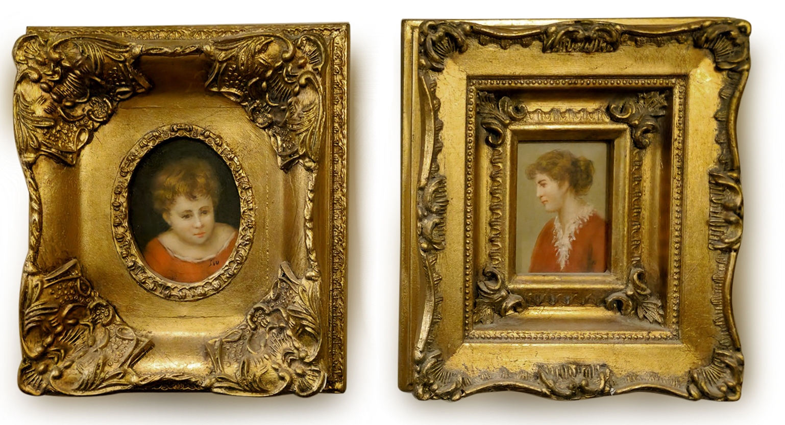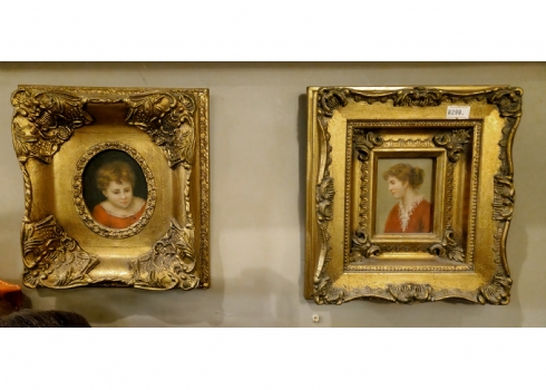 זוג תמונות בסגנון עתיק שמן על לוח נתונות במסגרות מוזהבות