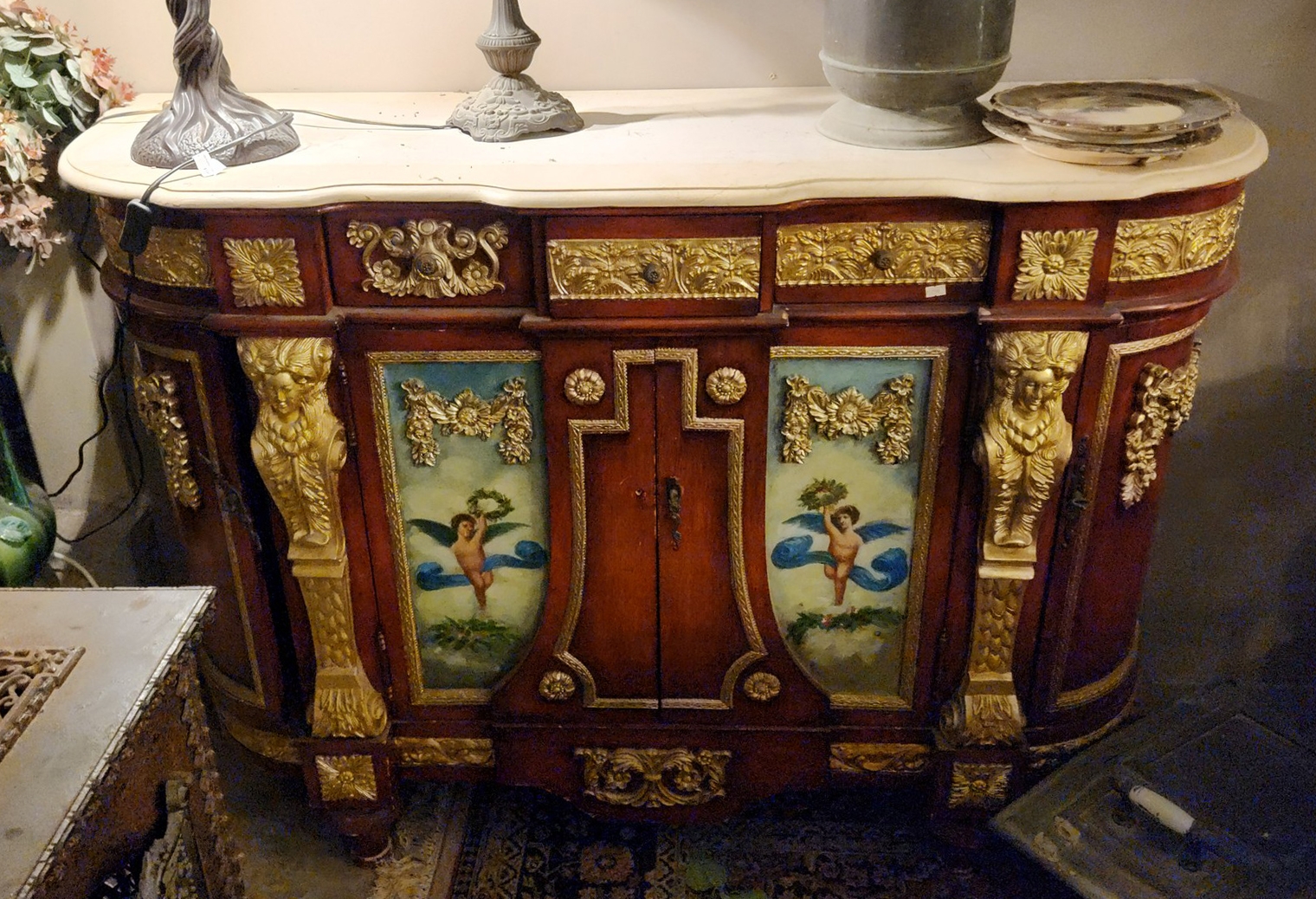 מזנון בסגנון עתיק מרשים ומפואר מעוטר ציורי יד