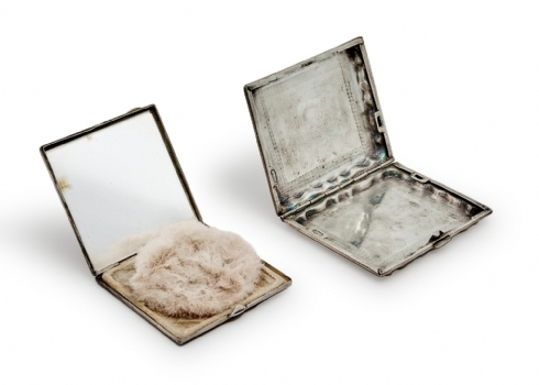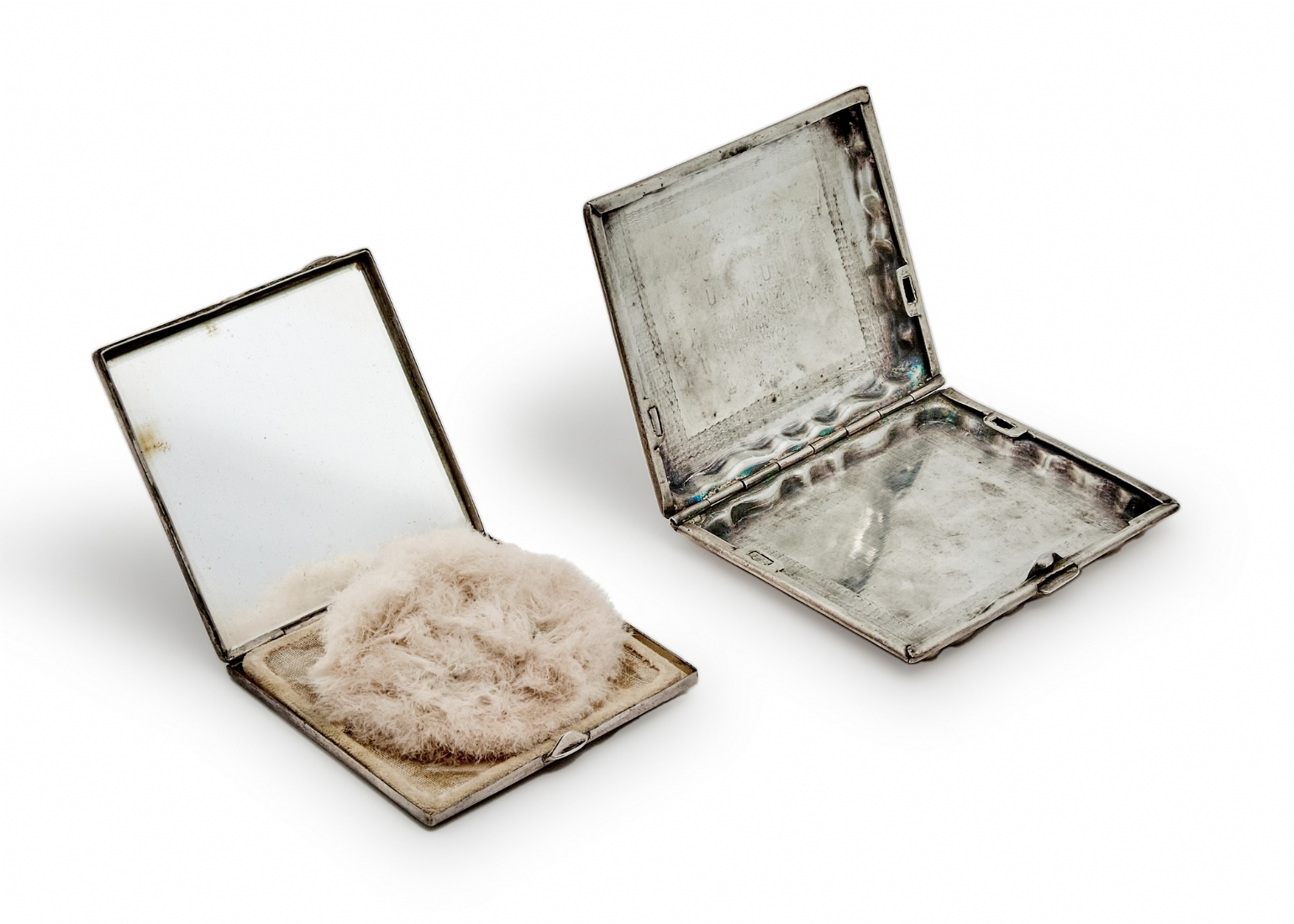 שתי קופסאות כסף עתיקות לסיגריות ופודרייה