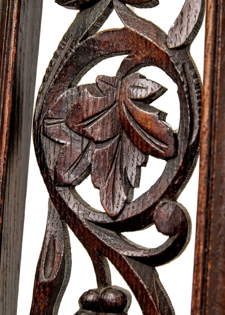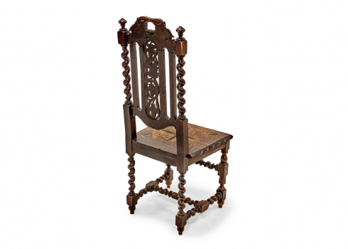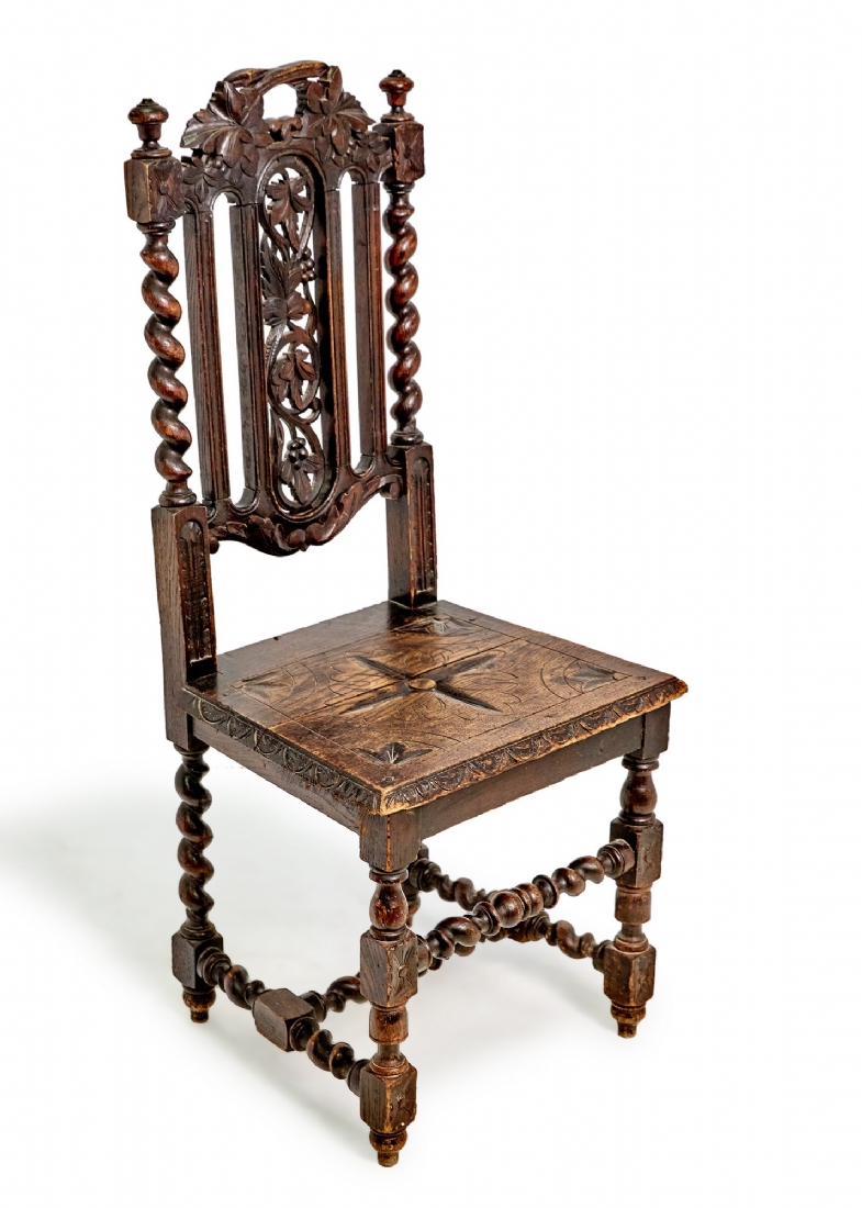 כסא ויקטוריאני עתיק מעץ אלון עם גב גבוה ומעוצב בגילוף כבד בסגנון "ברלי טוויסט" (Barley Twist)