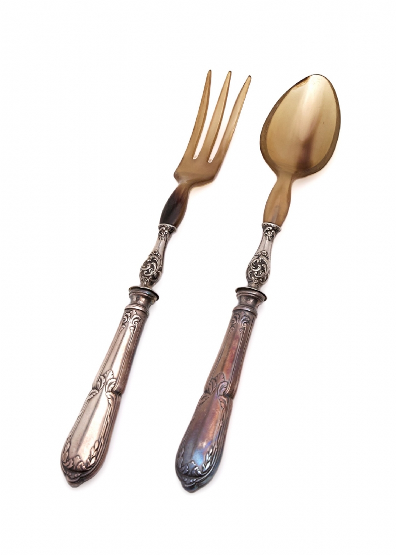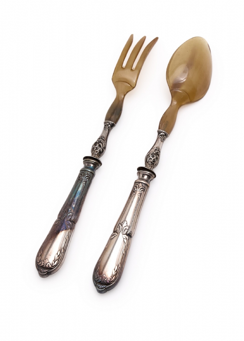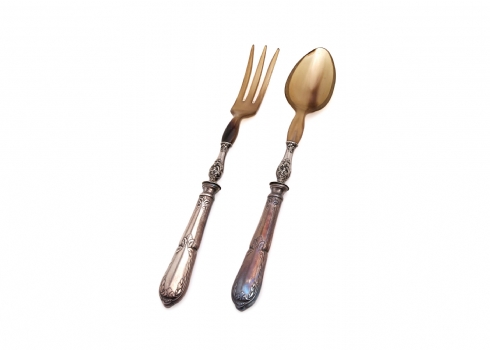 סט הגשה צרפתי עתיק ואיכותי לסלט הכולל מזלג וכף